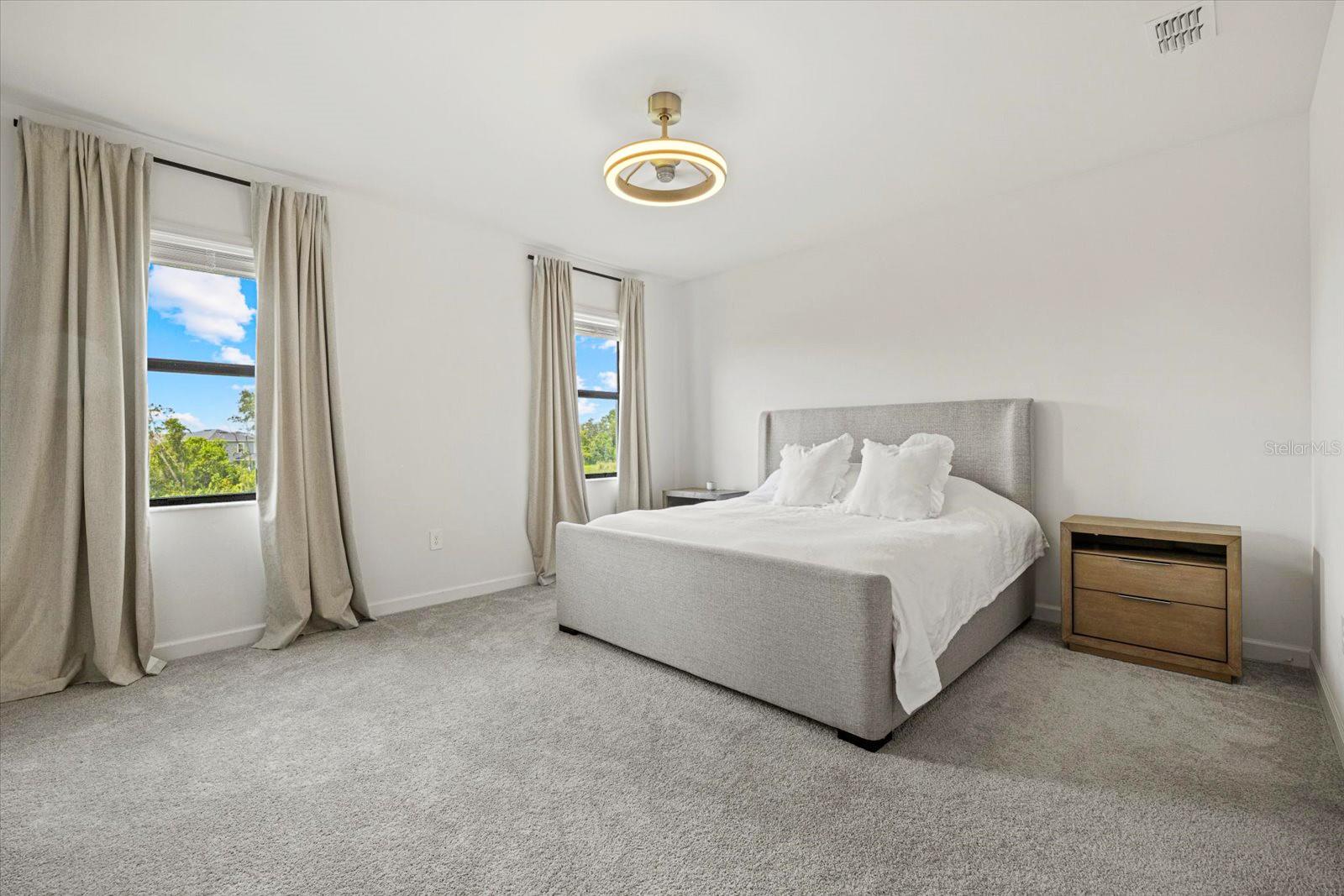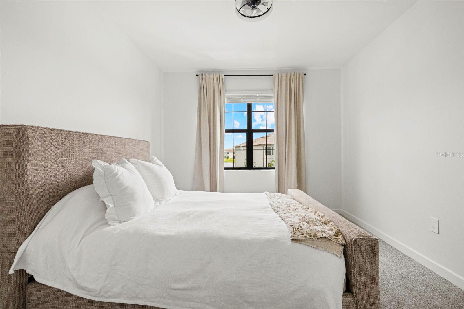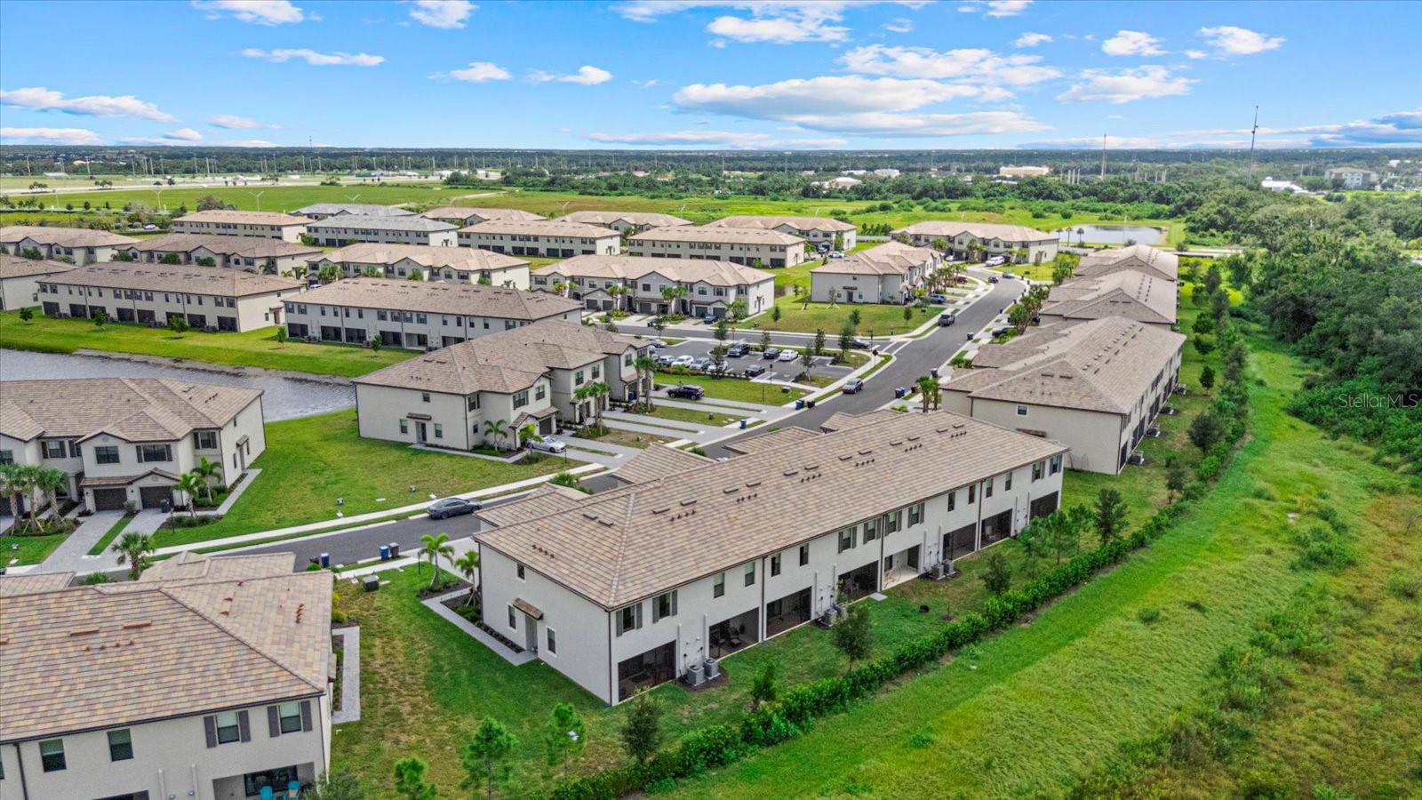 Built in 2024, resort style community living. Townhome boasts 1925 sq. ft. plus 9.4 ft high ceilings on the second floor! Large living area with an open floor plan in the main living area with a half bath on the 1st floor for your convenience. Screened in Lanai facing the private preserve trees and a large, grassed backyard for your privacy and view at the beautiful sunsets at your relaxed evenings!Second floor offers you the large primary bedroom with two walk-in closets, and a double sink vanity. The additional two front guest bedrooms look at the lake across the street and share a large second bathroom. The laundry room is upstairs in the hallway, equipped with washer and dryer. Lots of storage closets both downstairs and upstairs. Attached one car garage and along driveway for your parking. Living in Lorraine Lakes community in Lakewood Ranch is all about the lifestyle. The resort style clubhouse and rich amenities iswhat brings your life relaxation and joy! Seller is motivated.