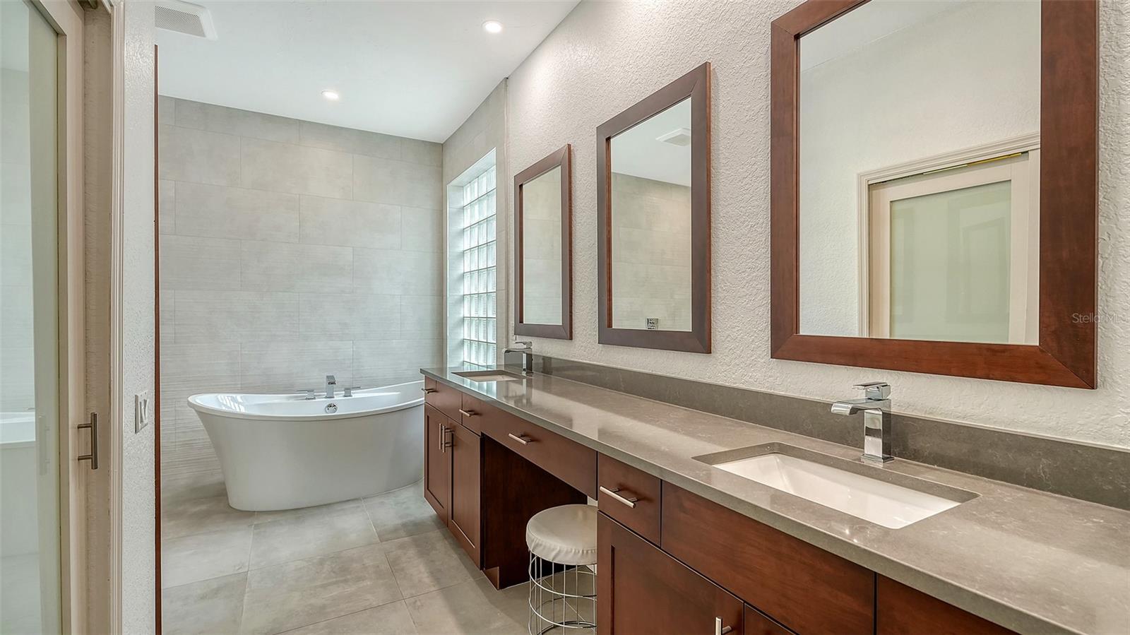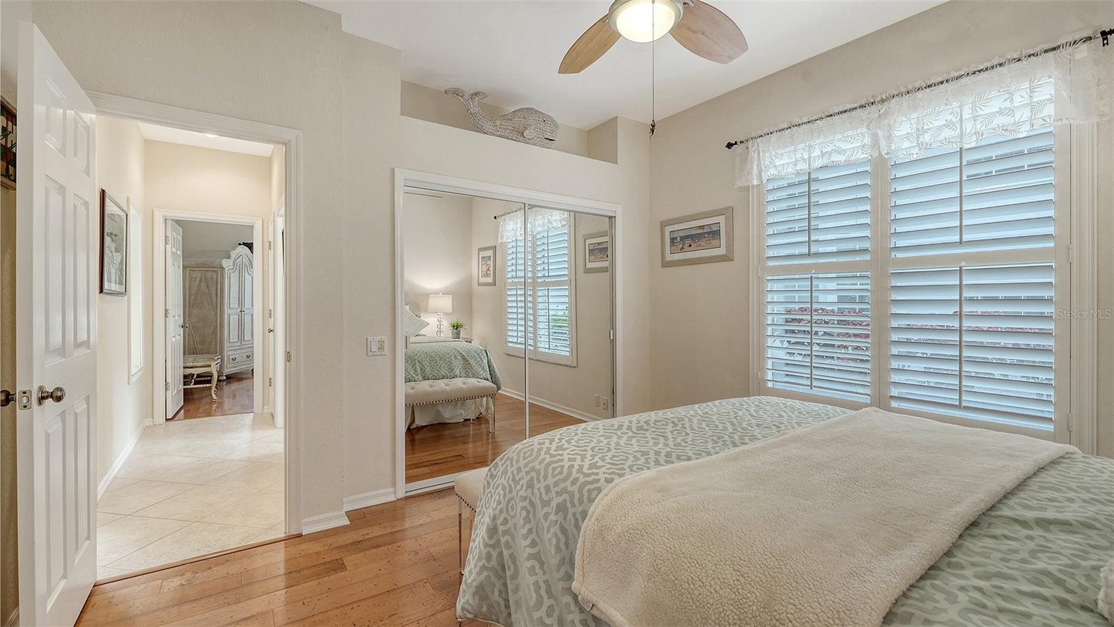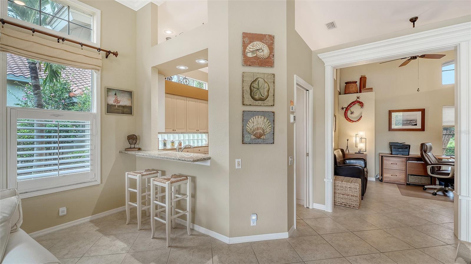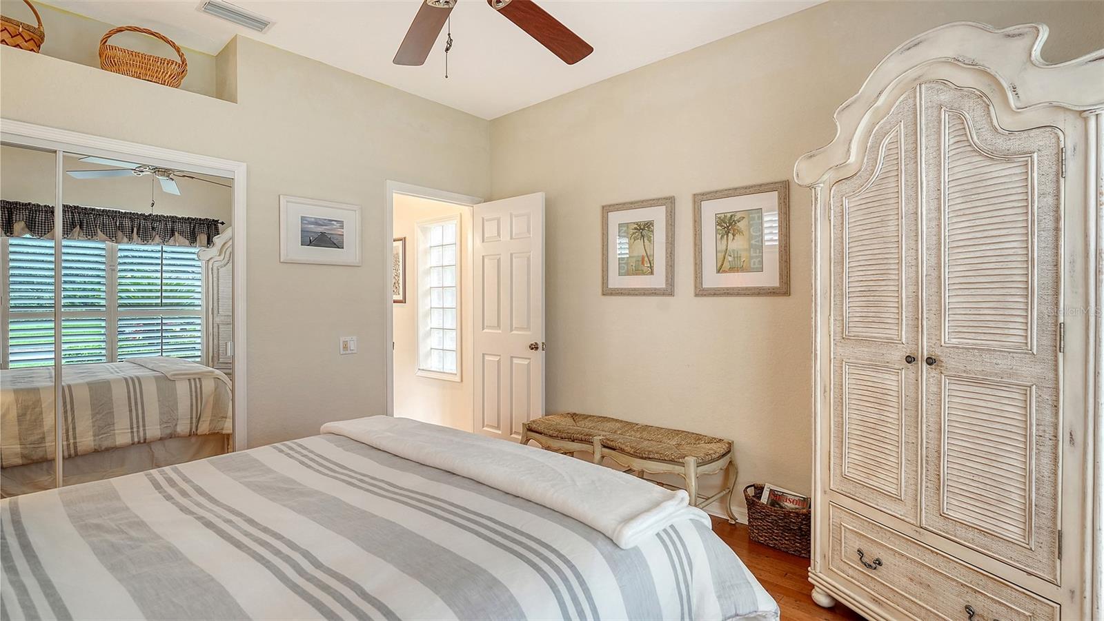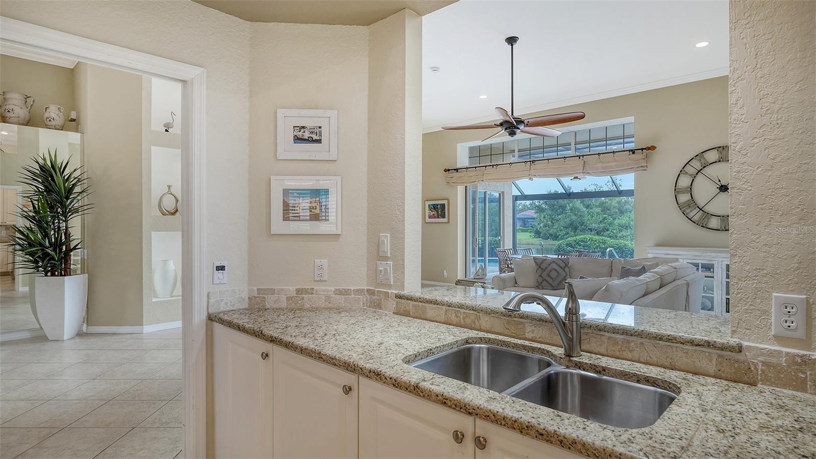 Welcome to this beautifully maintained and tastefully updated 3-bedroom, 2.5-bath home with an office, located in the award-winning University Park Country Club. From the moment you arrive, the tropical landscaping, pavered walkway, and sleek glass-paneled double doors with transom window set the stage for the inviting atmosphere inside.The open-concept living and dining room is filled with natural light and features soaring ceilings, modern lighting, designer ceiling fans, and diagonal tile flooring that flows seamlessly throughout much of the home. The spacious eat-in kitchen is a chef's delight, offering a center island with gas cooktop, granite countertops, tiled backsplash, built-in oven and microwave, pantry closet, recessed lighting, and abundant cabinetry. A breakfast bar, charming window seat, and desk area add function and character. The adjacent laundry room includes a washer and dryer, sink, storage closet and access to the two-car garage.The living area is anchored by an electric fireplace framed with built-in nooks and elegant crown molding. Just off the living space, a private office/study offers flexibility as a den or formal dining room. Expansive fully-retractable sliding doors extend the living space outdoors to the lanai.The primary suite is a retreat with hardwood floors, tray ceiling, Bermuda shutters, retractable sliders to the lanai, and a stunningly renovated ensuite bath. Here you'll find quartz countertops with dual sinks and a makeup vanity, a free-standing soaking tub, zero-entry walk-in shower, double frosted glass doors to a large closet, and sleek designer finishes. Two guest bedrooms with hardwood floors, shutters, and ceiling fans share an updated bath with granite countertops and a tub/shower combination with glass enclosure.Step outside to the expansive lanai, designed for both relaxation and entertaining. Featuring leather marble pavers, a grill area, sparkling pool, and infinity screened enclosure with serene lake views, it also includes a convenient pool half-bath.Peace of mind comes with a NEW ROOF (2023), HVAC (2018), and NEW POOL EQUIPMENT, pump, and heater. As part of the maintenance-free Virginia Water neighborhood, residents also enjoy a community pool and a carefree lifestyle.This home combines elegance, functionality, and resort-style living--all within the renowned University Park Country Club community.University Park Country Club is consistently ranked one of the top courses in Florida featuring 27 holes of championship golf; tennis and pickleball; fitness center, croquet - as well as an array of social and group activities. Just a short drive outside this peaceful enclave is downtown Sarasota, with shopping, arts & theatres, museums, dining and entertainment, top-ranked healthcare, beaches and SRQ International Airport.