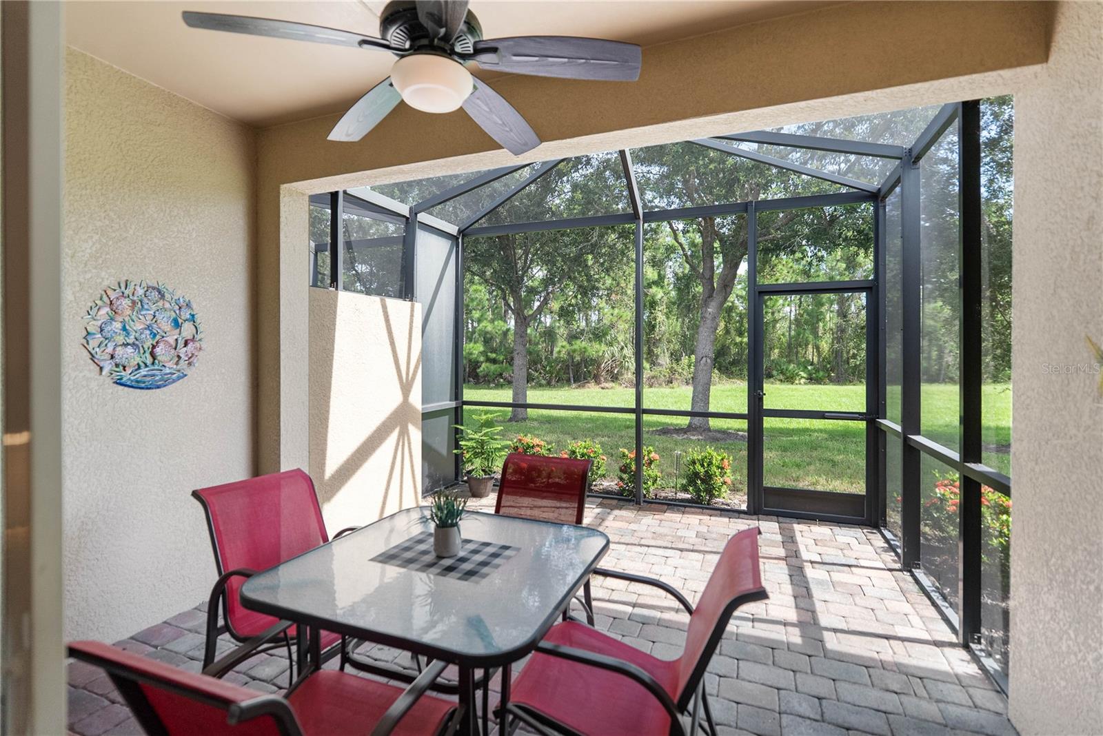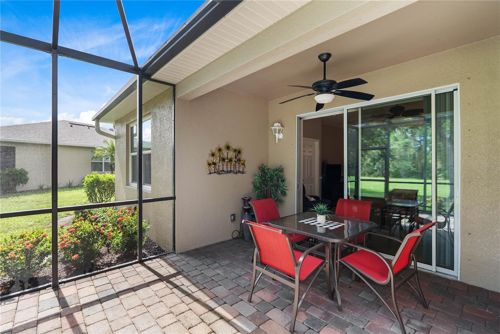 **This property qualifies for a 1% lender credit to be used towards closing costs or rate buydown.** Welcome to Stillwater, a vibrant and friendly community designed for a maintenance-free lifestyle! This turnkey, furnished villa is a rare find, offering a seamless move-in experience with numerous recent updates. You can relax knowing you have peace of mind with impact windows and garage door and a 2023 A/C system. The home has been freshly painted, offering a bright and inviting atmosphere. The low HOA fees are an incredible value, covering grounds maintenance, community roads, and amenities like the clubhouse and community pool.As you step inside, you're greeted by a warm and open floor plan with high ceilings and beautiful, oversized tile flooring in the main living areas, making for easy upkeep. The spacious great room flows naturally to your private, screened lanai, where you can enjoy serene, wooded views and the tranquil sounds of nature. The large kitchen is a chef's delight, featuring granite counters, recessed lighting, a substantial breakfast bar, and a separate dining area--all perfect for entertaining.This villa includes an expansive ensuite master bedroom with two closets and a master bath complete with an oversized vanity and a walk-in shower. A comfortable guest bedroom with a closet and a separate den/TV room with elegant French doors provides flexible space for guests or a dedicated home office.Just a short stroll away, the clubhouse and community pool are the heart of Stillwater, providing a perfect setting for social gatherings, a friendly card game, or simply socializing with neighbors. The community's prime location puts you less than five miles from the stunning beaches of the Gulf of Mexico, boat ramps, golf courses, and the vibrant shops and restaurants of Historic Dearborn Street. Here you can explore art festivals, the popular Farmer's Market, and various other community events. This home is located in FLOOD ZONE X and has NO CDD fees. Schedule your showing today to experience this fantastic Florida lifestyle!