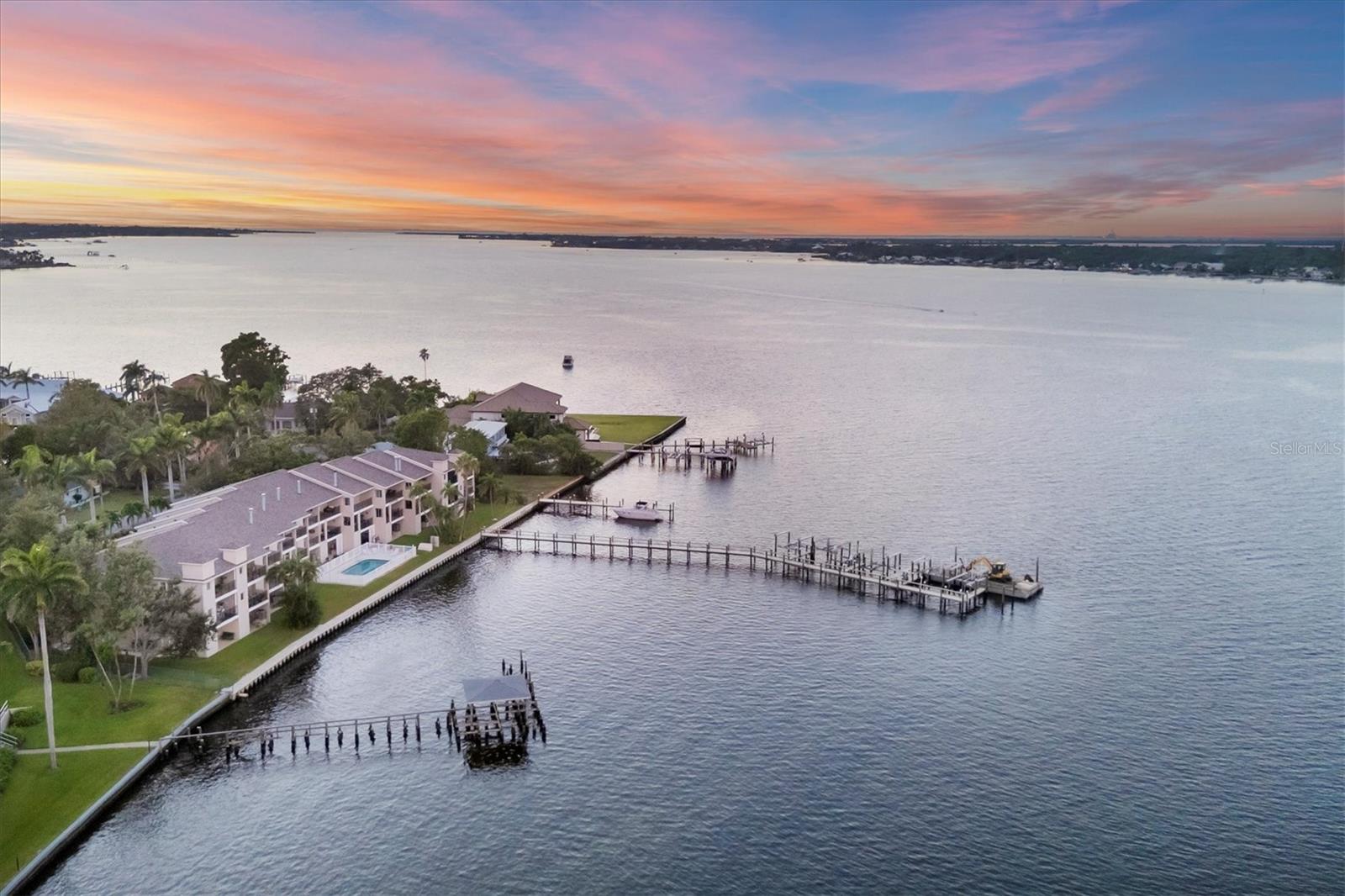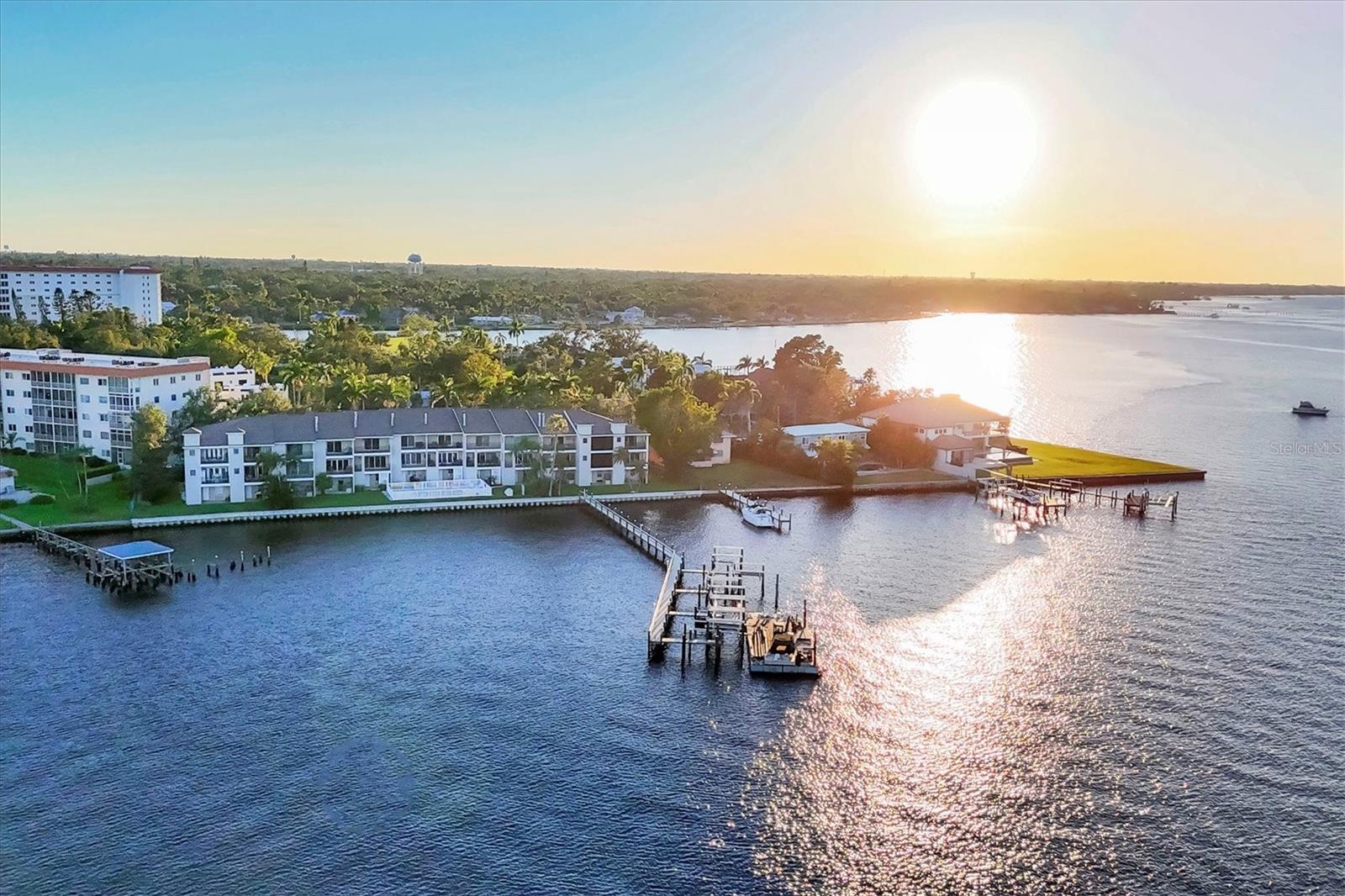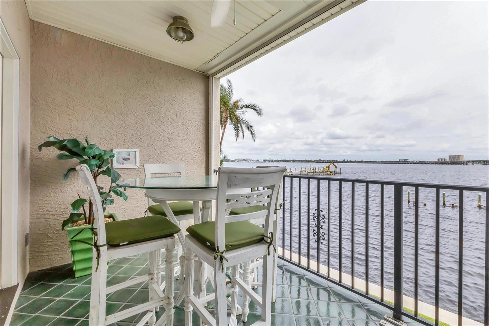 Breathtaking views from this stunning 3 bedroom, 3 bath end unit townhome that comes with your own deeded boat slip with lift that can accommodate up to 12,500 lbs. An exclusive opportunity to own in this rarely available community of 12 units in the downtown hideaway community of Point Pleasant, convenient to marina, restaurants, and Riverwalk. This home has been beautifully decorated with a unique sense of style, perfect for entertaining family and friends, and you are sure to enjoy the sunset from either of the two porches overlooking the spectacular Manatee River. The private elevator was replaced in June 2025 making it so easy to access the 3 levels, and the A/C was replaced in July 2025. There are plantation shutters throughout along with the majestic crown molding, surround sound system and more. Safety features include a fire sprinkler system throughout and electric hurricane shutters that operate at the touch of a switch. The 2-car tandem garage has pulleys for storing your kayaks. Once you see this beautiful condo, you will fall in love! Call today to see it for yourself.