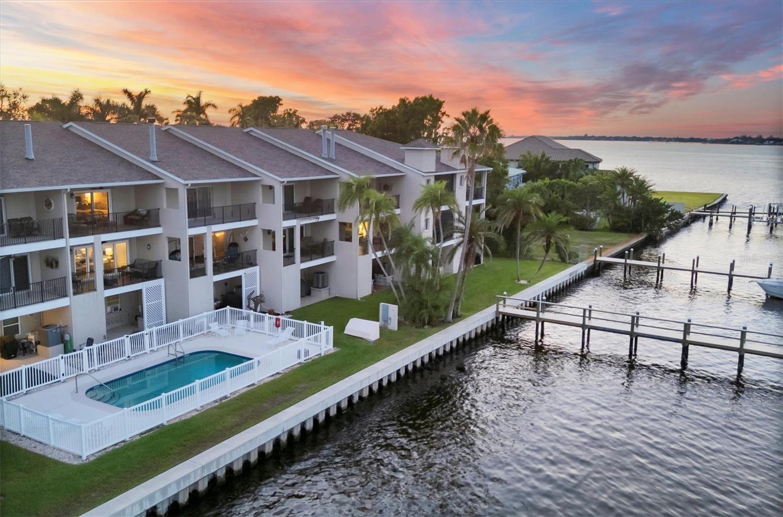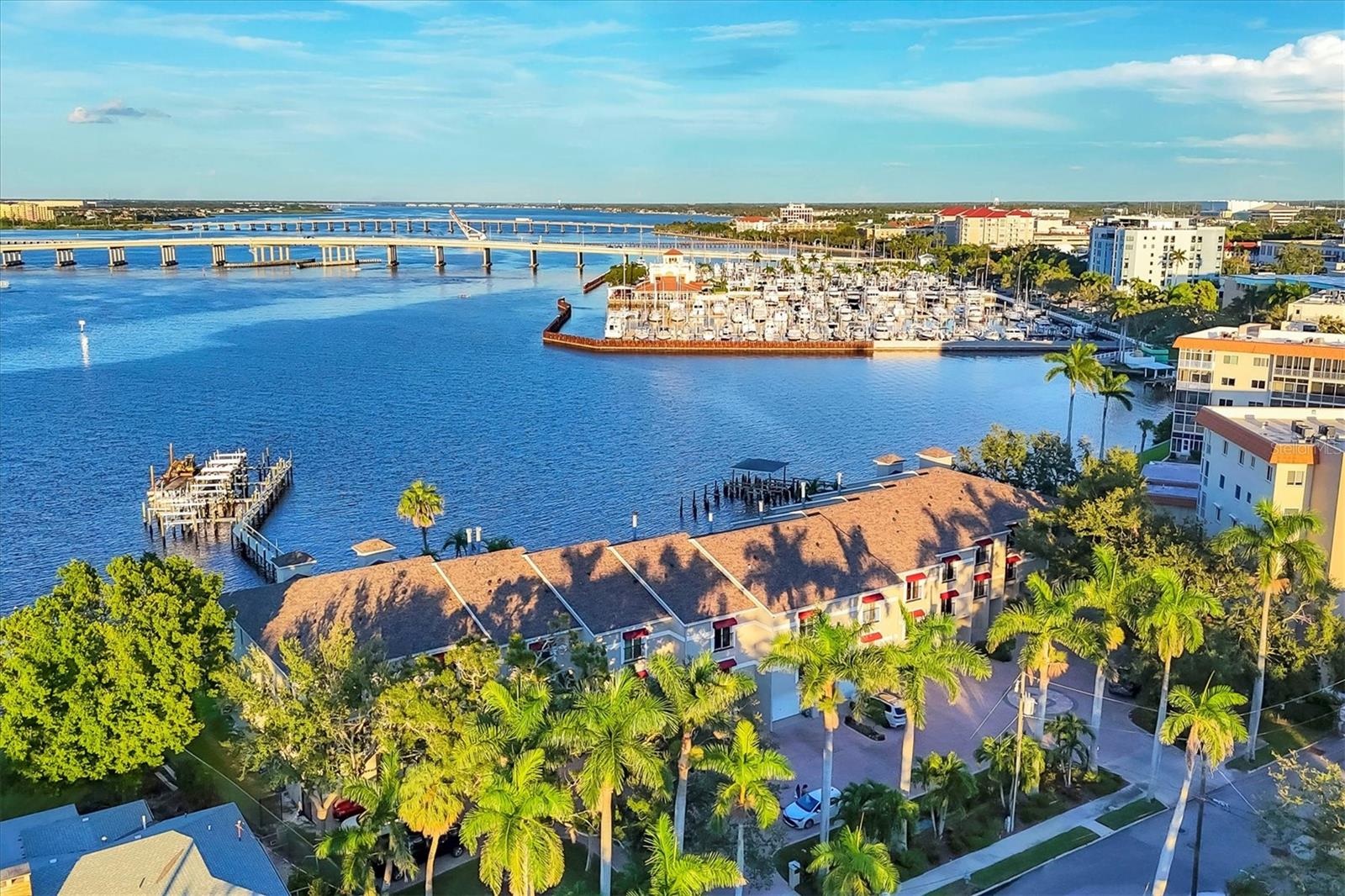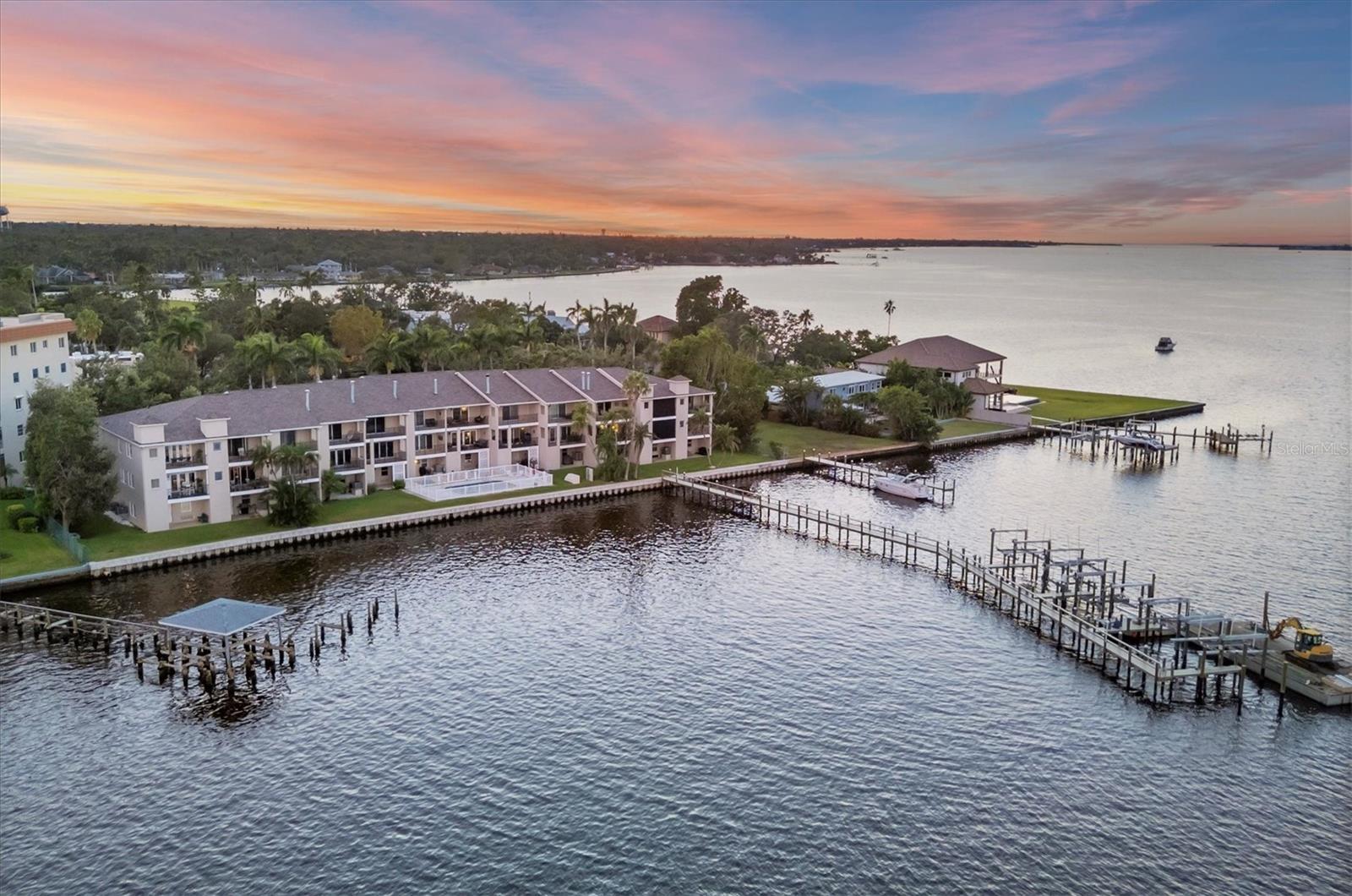 Breathtaking views from this stunning 3 bedroom, 3 bath end unit townhome that comes with your own deeded boat slip with lift that can accommodate up to 12,500 lbs. An exclusive opportunity to own in this rarely available community of 12 units in the downtown hideaway community of Point Pleasant, convenient to marina, restaurants, and Riverwalk. This home has been beautifully decorated with a unique sense of style, perfect for entertaining family and friends, and you are sure to enjoy the sunset from either of the two porches overlooking the spectacular Manatee River. The private elevator was replaced in June 2025 making it so easy to access the 3 levels, and the A/C was replaced in July 2025. There are plantation shutters throughout along with the majestic crown molding, surround sound system and more. Safety features include a fire sprinkler system throughout and electric hurricane shutters that operate at the touch of a switch. The 2-car tandem garage has pulleys for storing your kayaks. Once you see this beautiful condo, you will fall in love! Call today to see it for yourself.