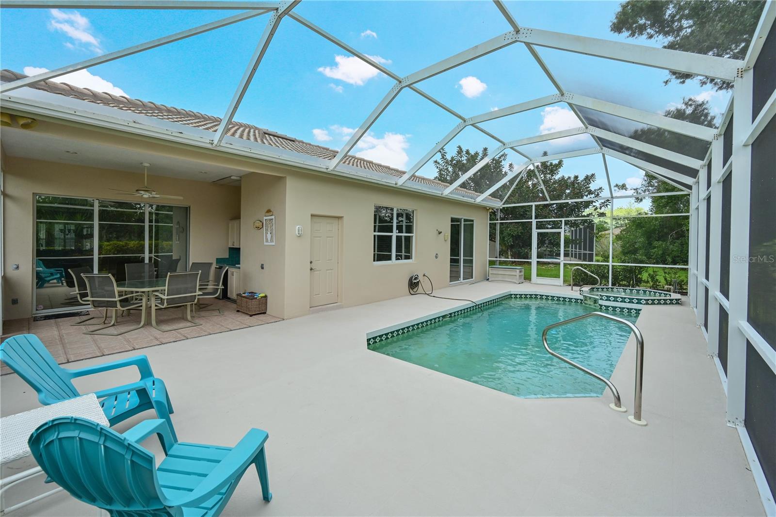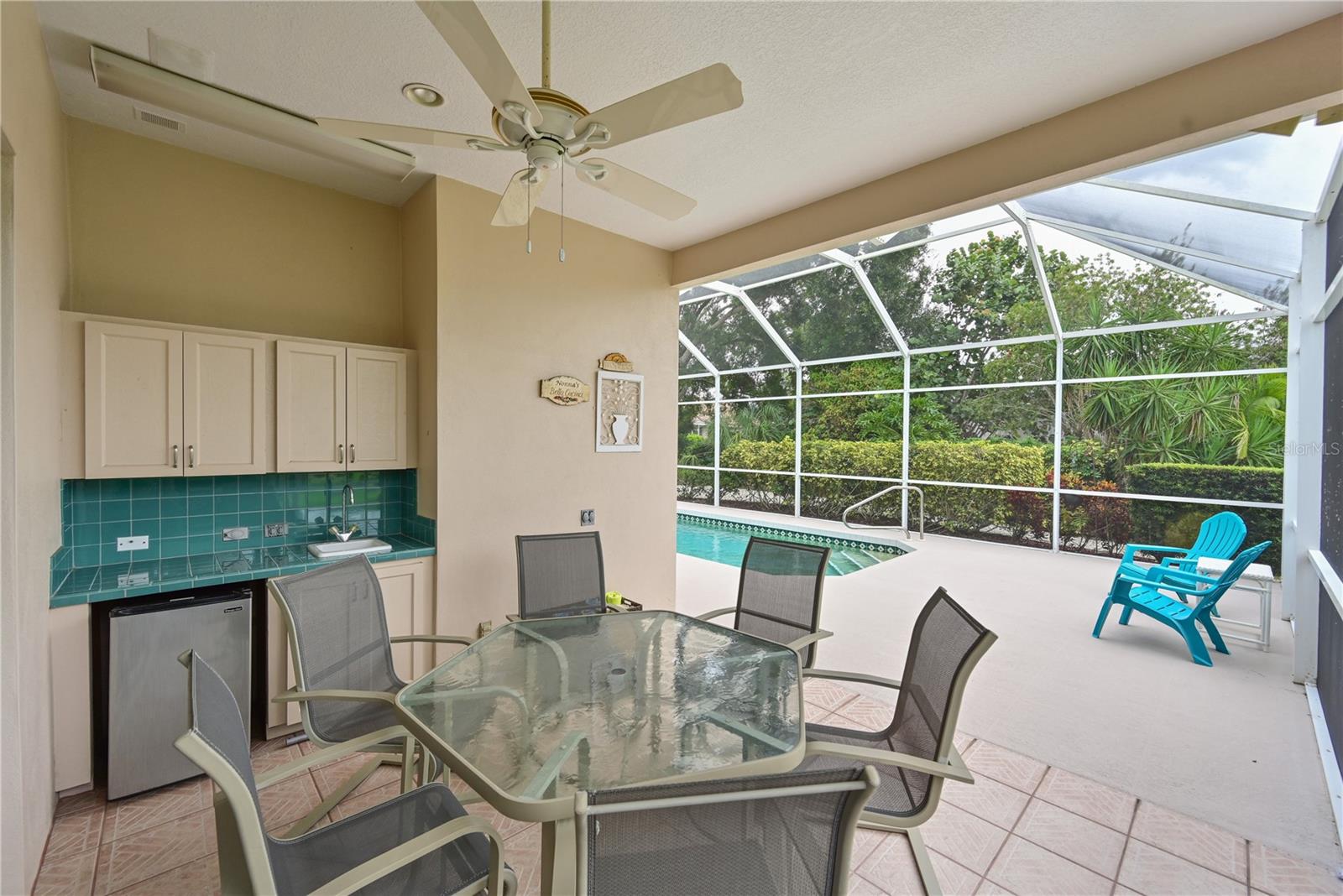 Nestled on a private lot in the Ashley Oaks section of Tara Golf and Country Club this Arthur Rutenburg built home has all the bells and whistles. Located at The end of a cut de sac. Open floor plan with expanded room sizes from the original blueprint. Eat in kitchen with gas cooking, island and stone counters. 2 pantry closets. Living/ dining area the high ceilings. Plantation shutters on most windows. Primary bedroom and living room sliders have Gliding Blinds for your privacy. Tile floors in the living areas. Large windows that lets the natural sunlight in, all day long. 2 bedrooms and an office/den that has a built in Murphy Bed, desk, custom shelving and private half bath, that leads out to the pool area. Built in pool has a spa and an undercover area for that outdoor dining experience. Pool pump 2020. Outdoor built in kitchen area with refrigerator and sink. 250 Gallon Propane gas tank, in ground, for the tankless hot water heater, pool spa, and stove in the kitchen. Primary bedroom has 2 oversized closets with built-ins, built -in safe in the floor, ensuite bath with Jaacuzzi soaking tub and walk in shower. Cabinetry has been upgraded. Tile roof 2023 has reinforced roof trusses built in by the original owner. AC 2023 Alarm system, wired for a sound system with 2 speakers in the primary bedroom and 4 speakers in the living room and lanai. 2 French Drains were installed in the rear of the lot. Class A membership to the private championship 18 hole golf course, clubhouse dining, tennis, full fitness center, bocce, Brand new Pickle ball facility with 5 lit courts, and community pool and spa. Clubhouse is being completely renovated in 2025-26. No CDDs. no assessments to the homeowners. Close to great dining and shopping. Minutes to the highways and airports. ONE YEAR HOME WARRANTY! Welcome to Taradise!