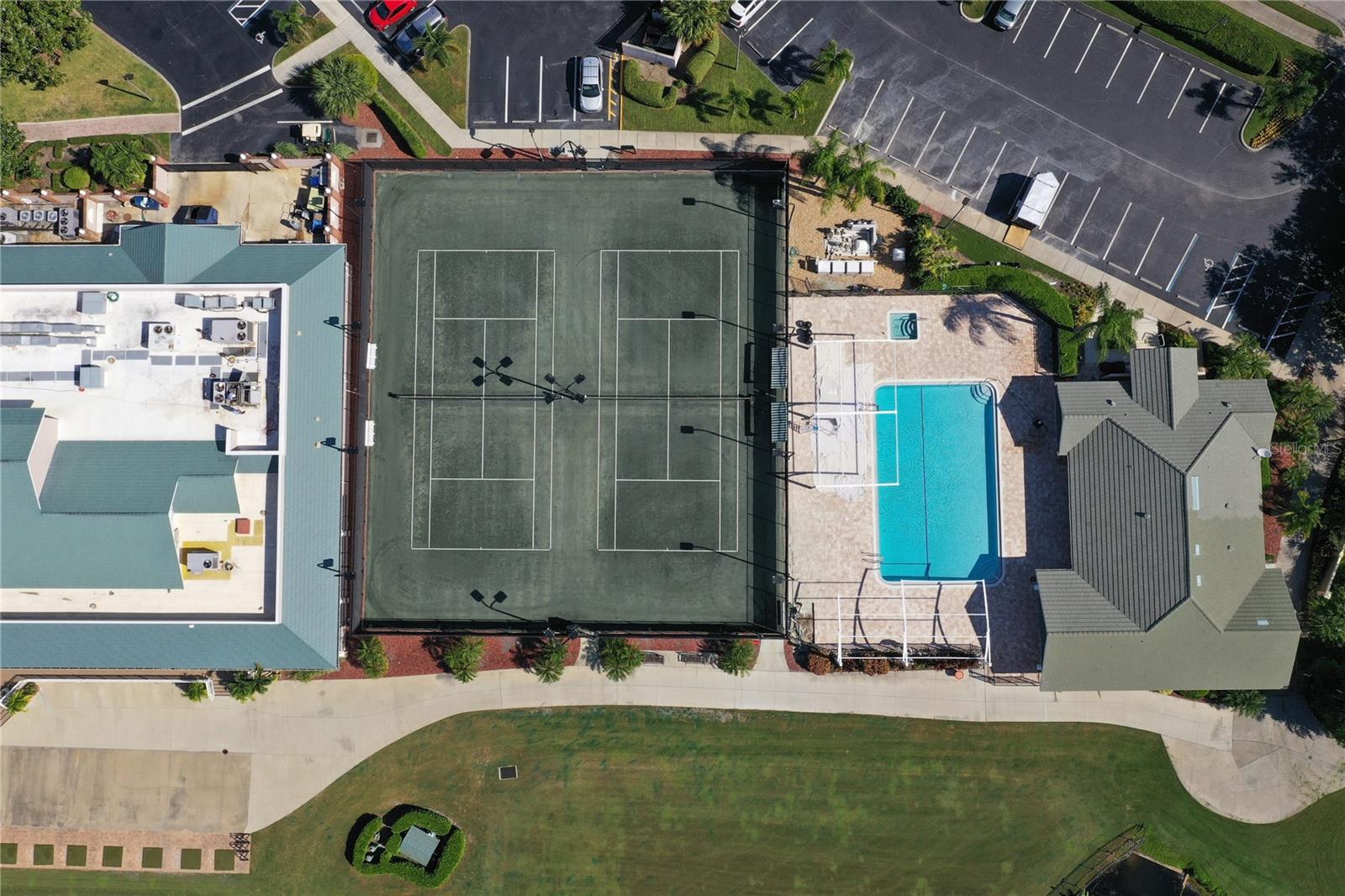 Exterior: Outdoor Kitchen, Rain Gutters, Tennis Court(s)