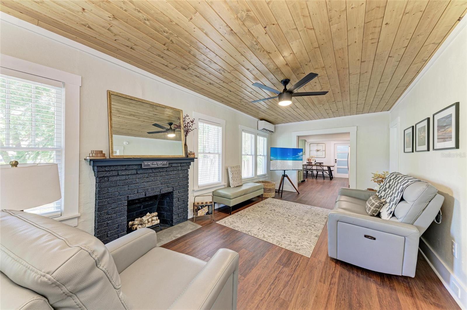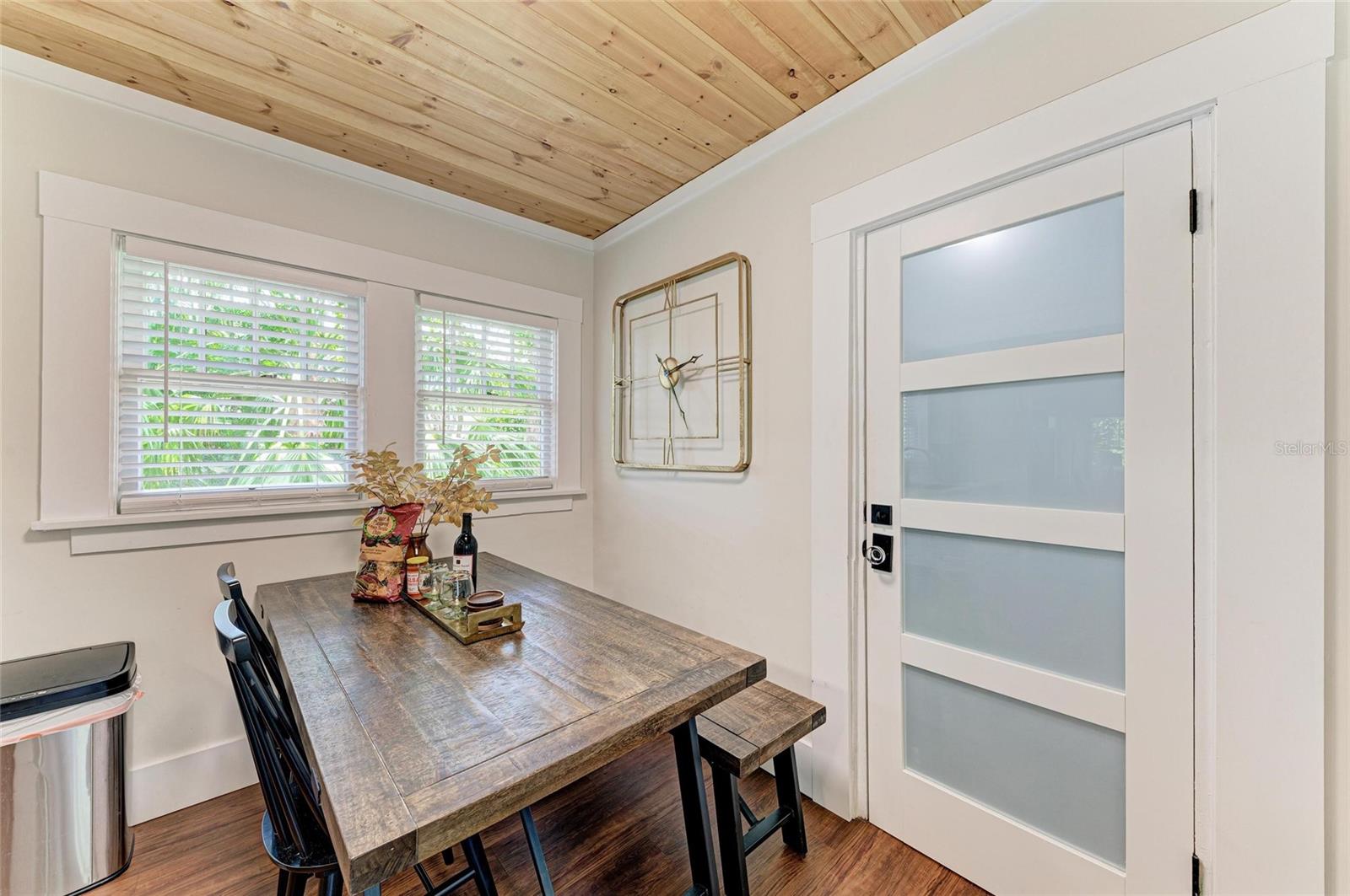 Charming 2-bedroom, 1-bath bungalow with a bonus room, suitable for an office or extra bedroom. The property features a large lot (approx 1/3 acre) shaded with mature trees, deck, and a garage that could be used as a workshop, storage, or studio. Screened front porch. Room for a pool, or storage of your toys. Many updates within the last 3 years, including a new roof, mini-split heat/air unit, appliances, and flooring. Boasts gorgeous tongue-and-groove ceilings. No flood zone. Conveniently located minutes from downtown Bradenton, offering shops, bars, restaurants, and ferry service to Anna Maria Island, approximately 8 miles away. Ideal for first-time buyers, snowbirds, or investors. Currently an active short-term rental. Furniture is available for purchase. If purchased as short term rental, buyer can take over bookings with Evolve. Garage needs work. Washer and dryer included.