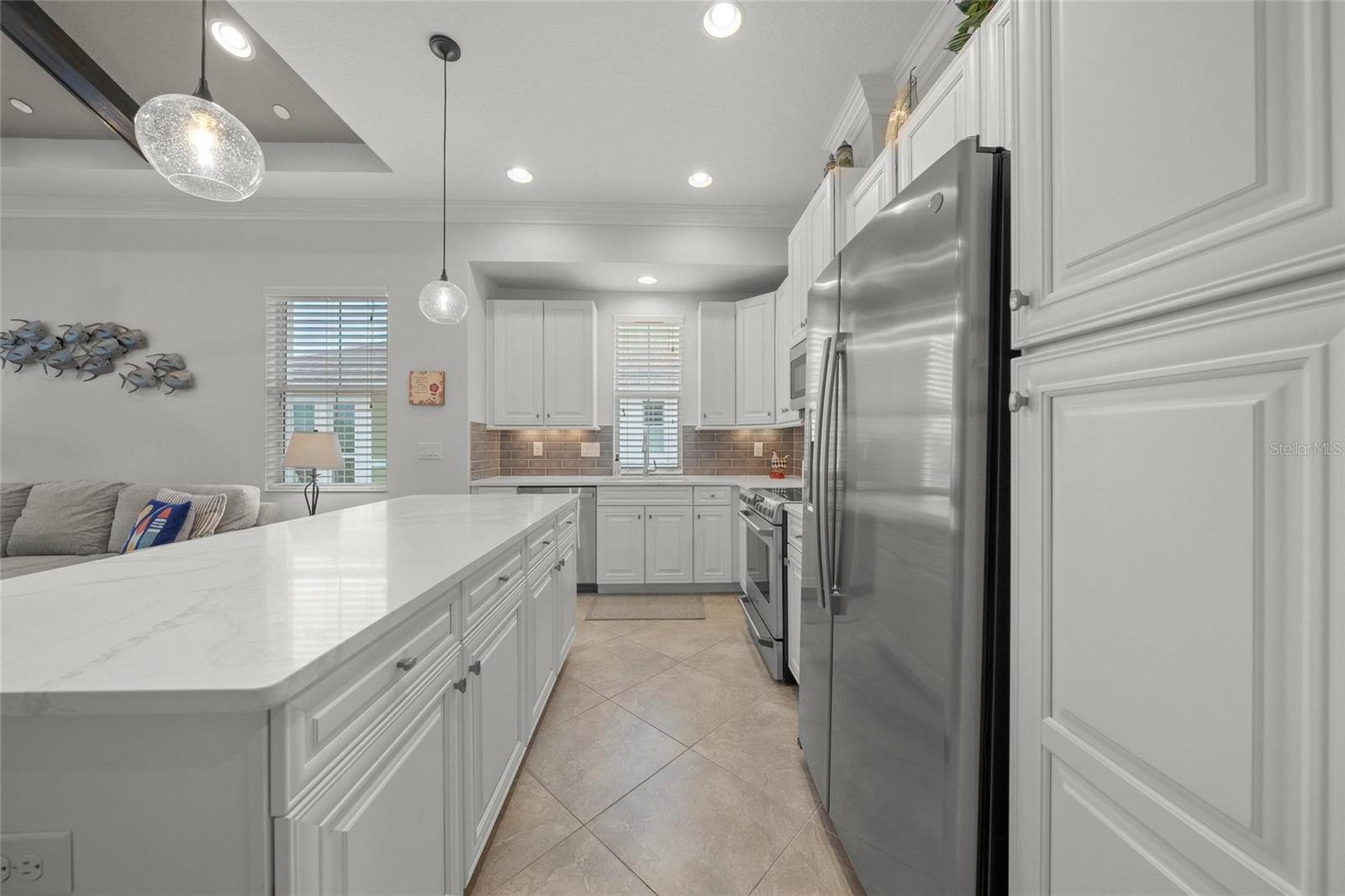 Welcome to coastal living at its best on Sapphire Lake Drive in Harbour Isle! This bright, updated home offers full sunset views over Anna Maria Sound and the relaxed vibe of a luxury island retreat. Inside, nearly every surface has been refreshed: new quartz countertops in all bathrooms and the kitchen, new sinks, painted cabinets, fresh accent paint, crown molding throughout, and shiplap ceilings in the master. The kitchen shines with quartz counters, backsplash, new pendant lighting, and newer appliances--including refrigerator (2023) and dishwasher (2024). The guest room features new carpet, while the office was upgraded with a closet and Murphy bed. The dumbwaiter was converted to a private elevator in 2021 for easy access. Additional highlights include a custom wooden accent wall in the dining room, new lighting, a fully painted interior, and a Tesla-ready garage with built-in storage solutions. Beyond your door, Harbour Isle offers resort-style amenities: four pools, fitness center, kayak launch, trails, hammocks, fire pits, and the Beach Club with panoramic Sound-to-Bay views. Just outside the gates: marina, dining, and Anna Maria Island's sugar-sand beaches. Live the island lifestyle you've been dreaming of--sunrise to sunset.