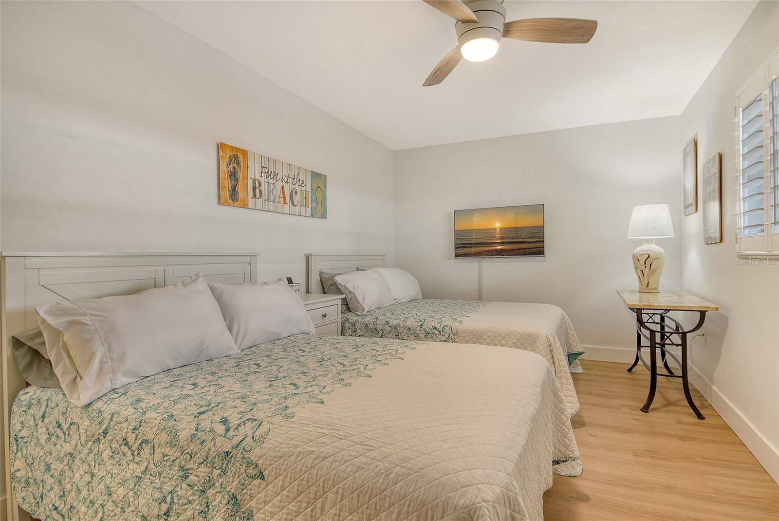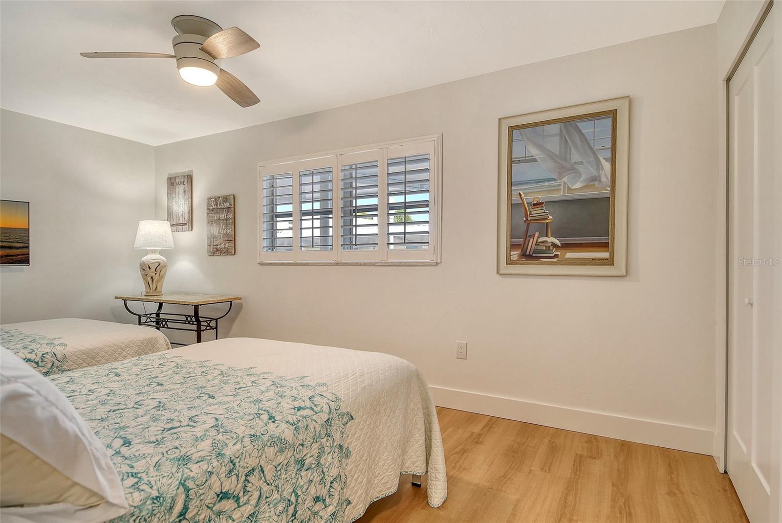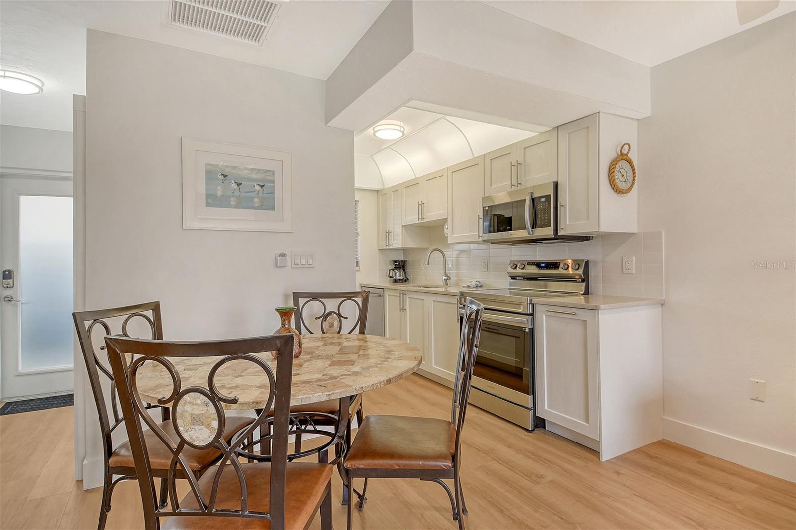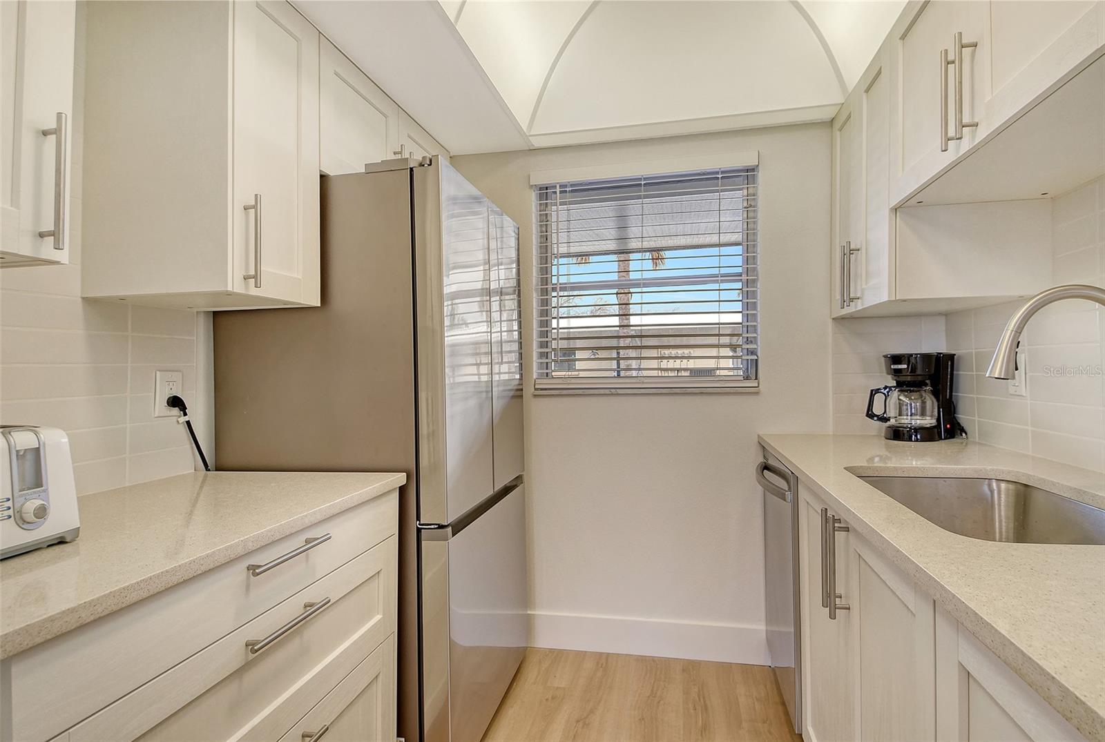 Beach living on Siesta Key. Discover the ultimate coastal retreat in this completely remodeled condominium, positioned along the pristine shores of Siesta Key. Jamaica Royale offers 300 feet of private white sandy beach on Siesta Key Beach with lush tropical grounds and this two-bedroom, two-bath residence has been completely renovated and is offered turnkey furnished, ready for immediate enjoyment. Go inside to find luxury vinyl floors and an open floor plan that seamlessly blends beach vacation with functionality. The kitchen is beautifully redone featuring stainless steel appliances, quartz countertops, shaker style cabinets with soft-close doors and drawers. The spacious primary suite is a private space with a stunning en suite primary bath. There is plenty of storage with extra deep double closets in both bedrooms. The additional bedroom provides ample comfort for your guests with two full beds. You will appreciate the convenience of your laundry closet, private patio and covered parking directly outside your door. This exceptional condominium offers a combination of beach fun, stylish comfort and unbeatable coastal living. Jamaica Royale is on a private lane that leads directly to the beach with no through traffic and no streets to cross ~ just go to the famed white sands of Siesta Key Beach. There are three pools and plenty of lounge chairs to enjoy the beach life. Enjoy quiet, beachfront seclusion where you can soak up the sun, cool off in the water and view the beautiful sunsets. You are steps to the beach where you can walk the white quartz sand that is soft underneath you while enjoying the tranquility of soft waves splashing, and beautiful turquoise waters. The drum circle is sure to entertain you some nights or just sit and watch a beautiful sunset. If you prefer, at any given time of the day, you can catch the shuttle which will transport you up and down Siesta Key to your favorite entertainment spot, dinner, and/or shopping.