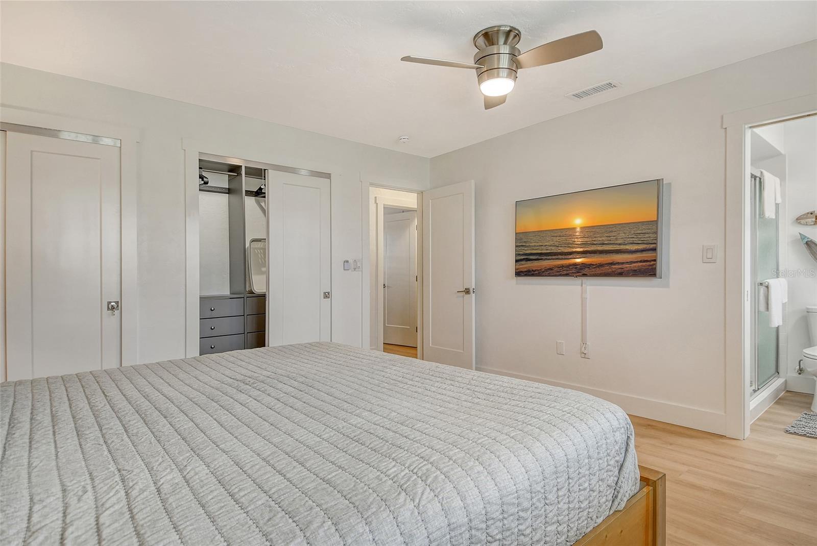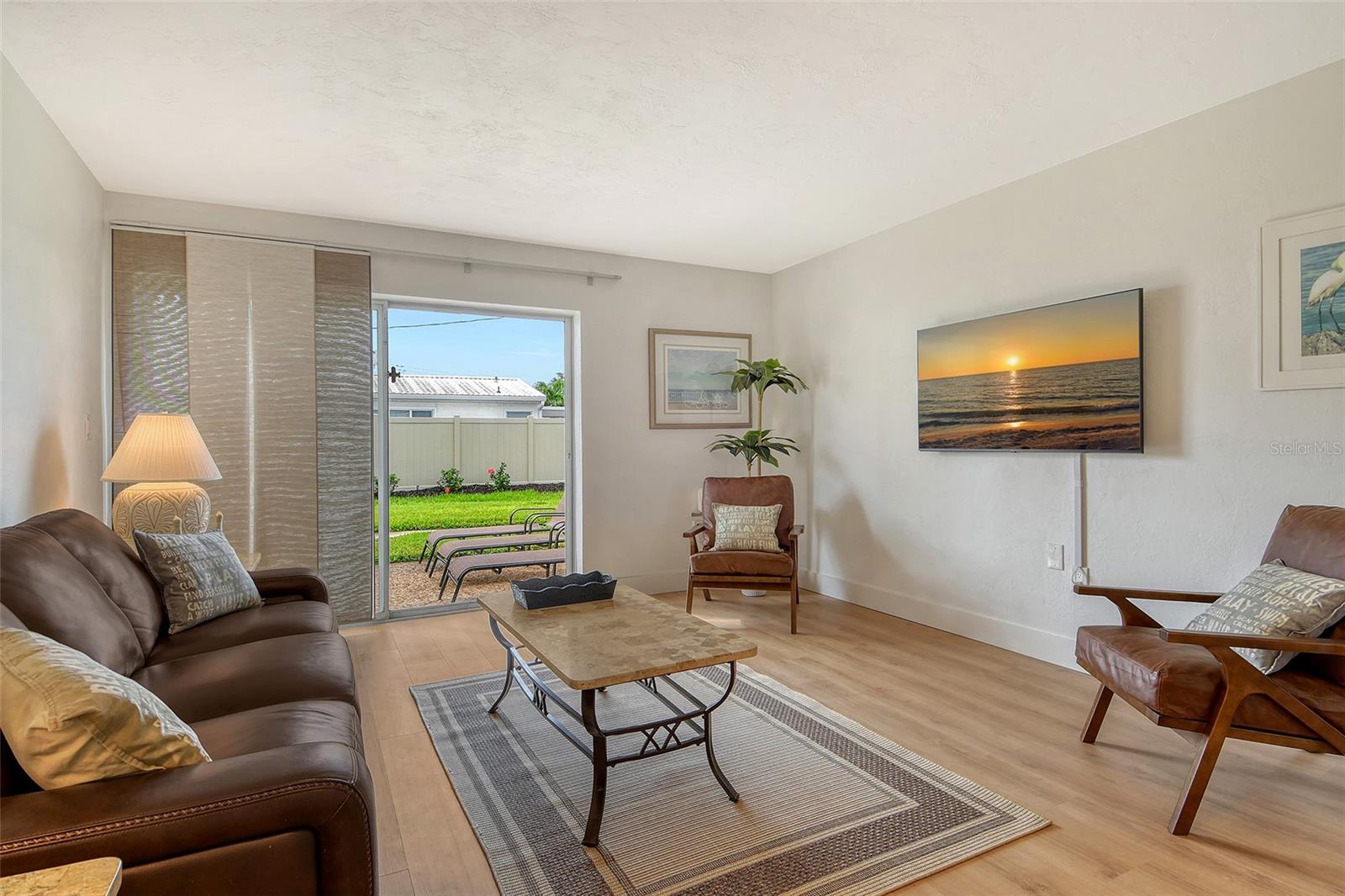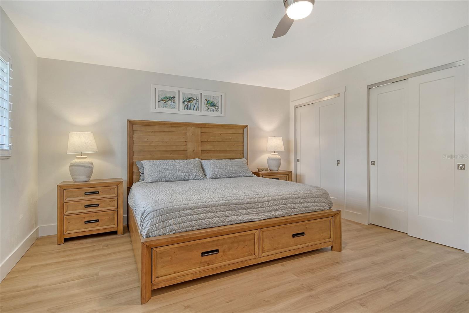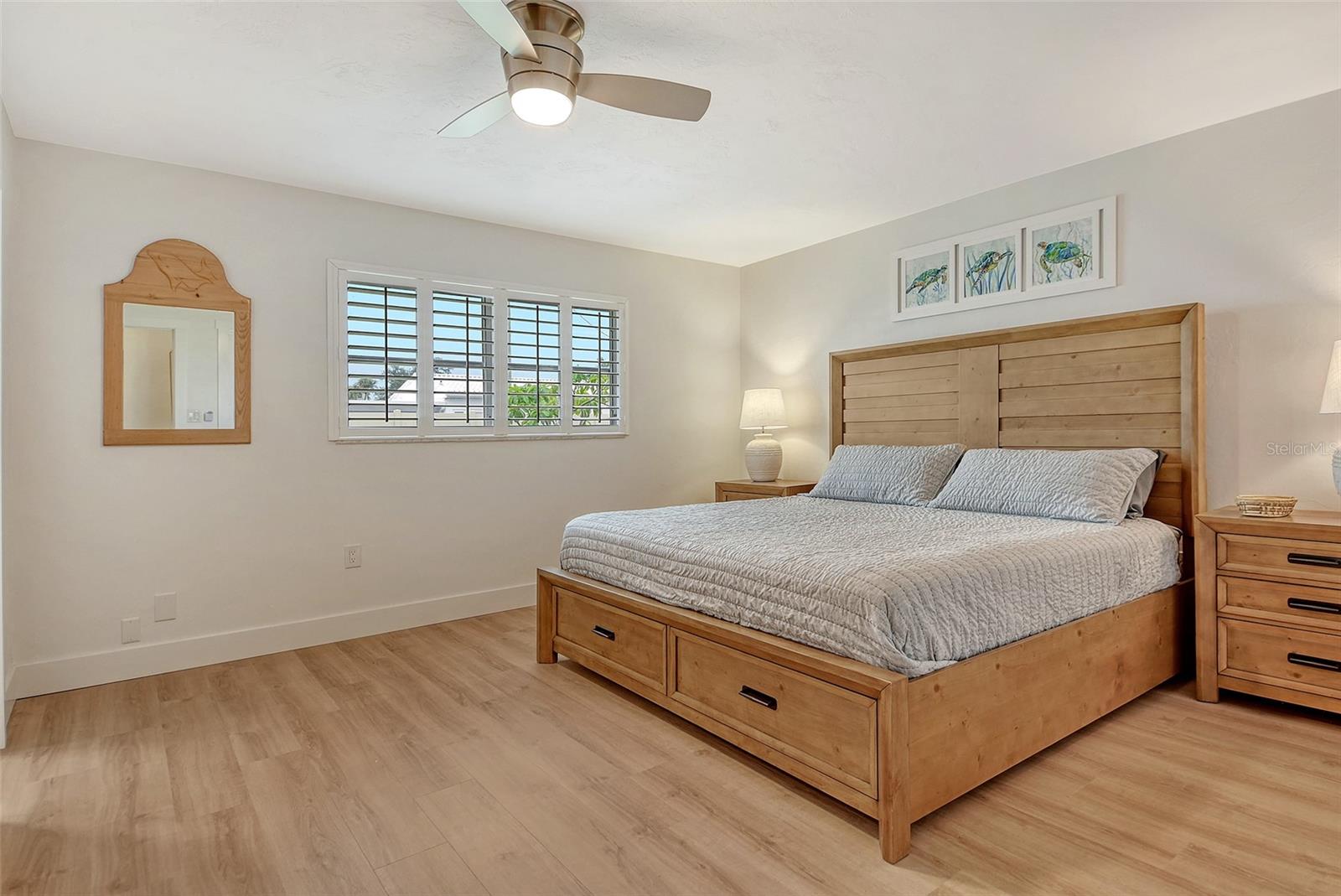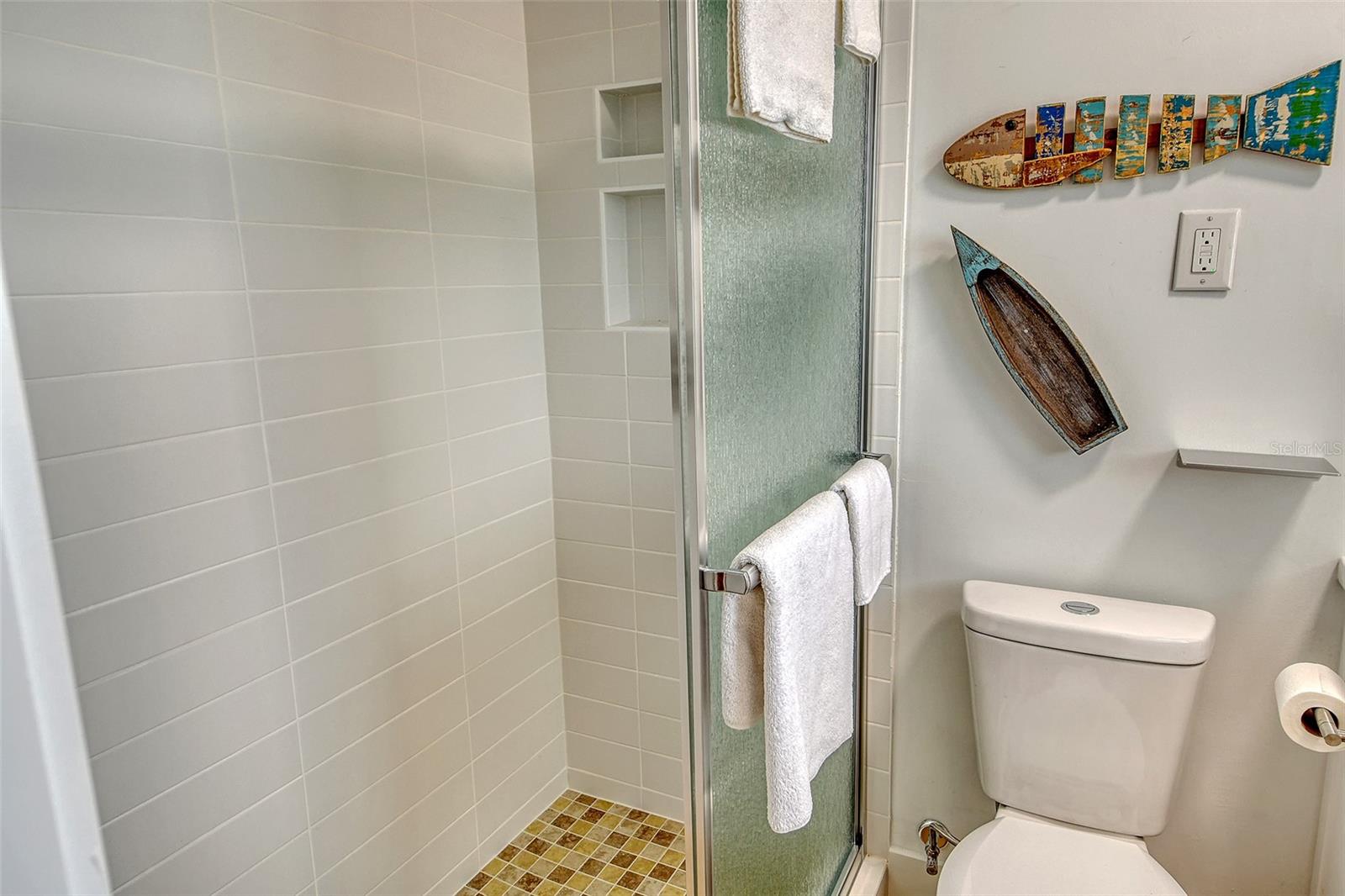 Beach living on Siesta Key. Discover the ultimate coastal retreat in this completely remodeled condominium, positioned along the pristine shores of Siesta Key. Jamaica Royale offers 300 feet of private white sandy beach on Siesta Key Beach with lush tropical grounds and this two-bedroom, two-bath residence has been completely renovated and is offered turnkey furnished, ready for immediate enjoyment. Go inside to find luxury vinyl floors and an open floor plan that seamlessly blends beach vacation with functionality. The kitchen is beautifully redone featuring stainless steel appliances, quartz countertops, shaker style cabinets with soft-close doors and drawers. The spacious primary suite is a private space with a stunning en suite primary bath. There is plenty of storage with extra deep double closets in both bedrooms. The additional bedroom provides ample comfort for your guests with two full beds. You will appreciate the convenience of your laundry closet, private patio and covered parking directly outside your door. This exceptional condominium offers a combination of beach fun, stylish comfort and unbeatable coastal living. Jamaica Royale is on a private lane that leads directly to the beach with no through traffic and no streets to cross ~ just go to the famed white sands of Siesta Key Beach. There are three pools and plenty of lounge chairs to enjoy the beach life. Enjoy quiet, beachfront seclusion where you can soak up the sun, cool off in the water and view the beautiful sunsets. You are steps to the beach where you can walk the white quartz sand that is soft underneath you while enjoying the tranquility of soft waves splashing, and beautiful turquoise waters. The drum circle is sure to entertain you some nights or just sit and watch a beautiful sunset. If you prefer, at any given time of the day, you can catch the shuttle which will transport you up and down Siesta Key to your favorite entertainment spot, dinner, and/or shopping.