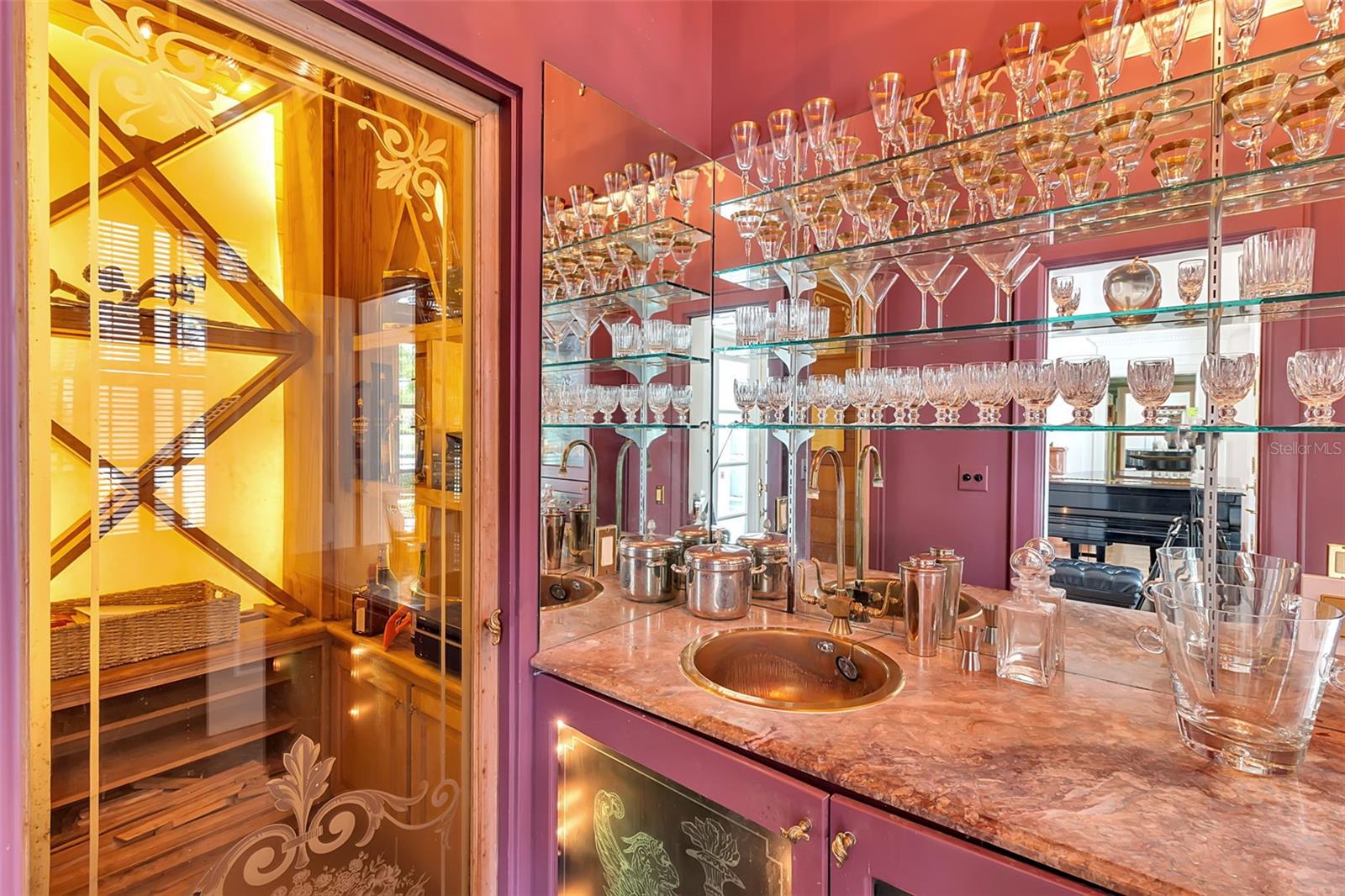 A grand estate where timeless design meets lakefront tranquility, 101 Osprey Point Drive offers refined living within the private gates of The Oaks Bayside. Designed by architect Bo MacEwen, this one-of-a-kind home spans more than 5,000 square feet, all cleverly positioned on nearly an acre with 150 feet of lakefront. Situated on two of the community's most desirable lots, the residence balances architectural distinction with thoughtful updates that ensure comfort and livability. An oversized circular drive paved in granite tile leads to a stately double-door entrance. Inside, the foyer sets the tone with soaring ceilings, hand-crafted moldings, chandeliers, and a white onyx floor with marble inserts. Spaces include an oversized living room with dual fireplaces, a crystal chandelier, and multiple sets of French doors opening to the lakefront patio. The dining room, anchored by another fireplace and framed by custom casings and built-in shelving, is ideal for grand entertaining. A domed ceiling sitting room with French doors to the patio adds an intimate space for cocktails or conversation, while the custom bar and wine room, with etched glass cabinetry, stone counters, and display shelving, enhances the home's appeal for gatherings. The kitchen, completely remodeled in 2019, is a showcase of craftsmanship with UltraKraft® cabinetry, custom soffit lighting, Corian countertops, and a center island with breakfast bar. Luxury appliances include a Sub-Zero refrigerator, Wolf gas cooktop, wall oven, microwave, warming drawer, two KitchenAid dishwashers, and a Frigidaire wine fridge. A butler's pantry provides additional storage, while the sunny breakfast nook overlooks lush gardens. Family and gathering rooms carry the same sense of scale, with dramatic fireplaces, intricate moldings, and detailed ceiling treatments that flow seamlessly for everyday living or large-scale entertaining. The primary suite is a true retreat with a spacious sitting area, custom closets, and a well-appointed bathroom that was newly remodeled in 2025 with spa-inspired finishes. Three guest suites, each with updated full baths (2021 and 2025), provide privacy and comfort. One is a suite with a bathroom near the laundry room, which offers flexibility for live-in staff or extra accommodation. Outdoors, the home embraces its setting with an open pool, expansive deck, and cabana surrounded by manicured hedges and mature landscaping. The views are equally compelling, with mature gardens and community reflecting pond in the front and sweeping lake vistas in the back. Additional highlights include a three-car garage, refinished hardwood floors (2020), and a new Daikin 5-ton AC system installed in 2022. Ownership at The Oaks Club brings an unmatched lifestyle, with two championship golf courses, tennis and pickleball courts, croquet, a fitness center and spa, three on-site restaurants, and a community dock on Little Sarasota Bay. Elegant yet inviting, 101 Osprey Point Drive stands as a rare opportunity to enjoy lakefront living with resort-style amenities in one of Sarasota's most established private enclaves.