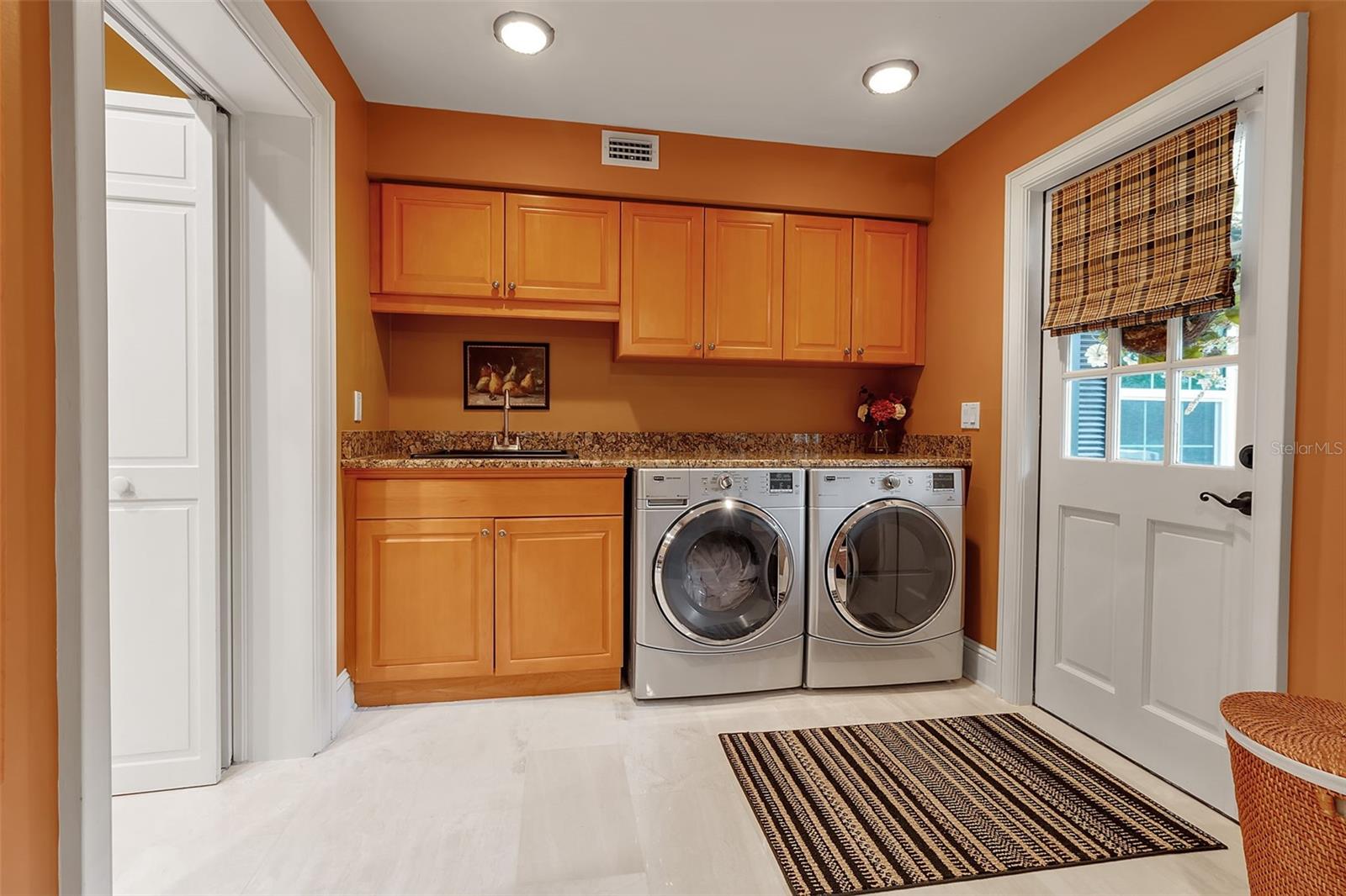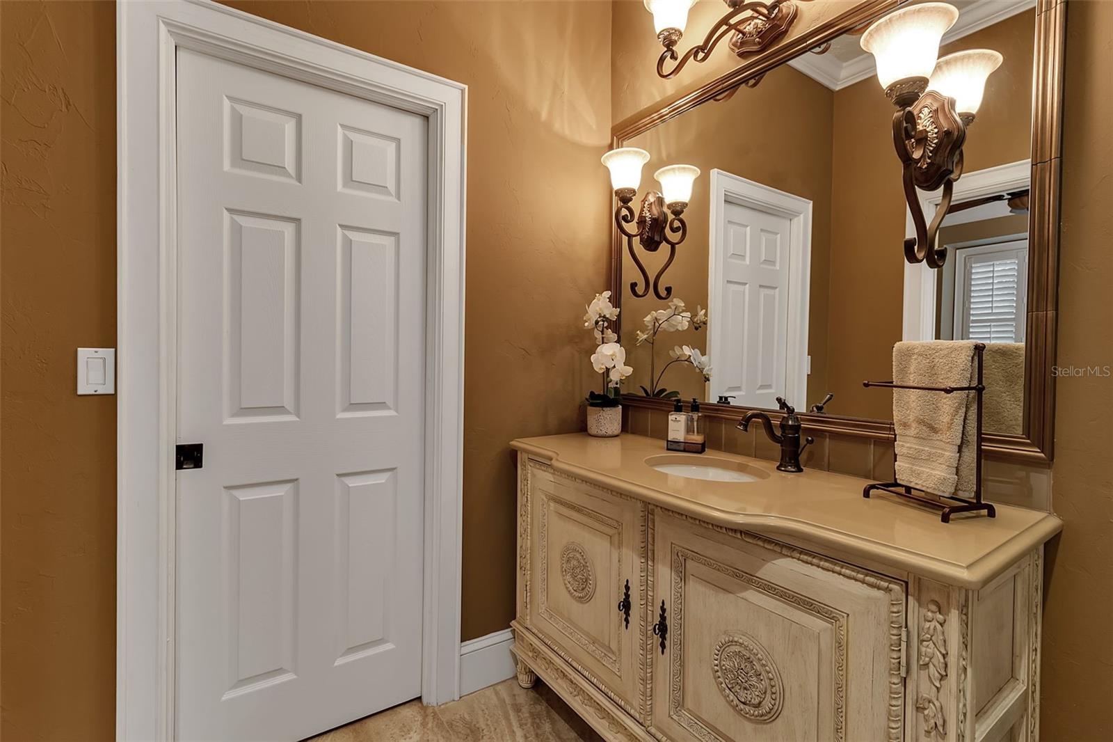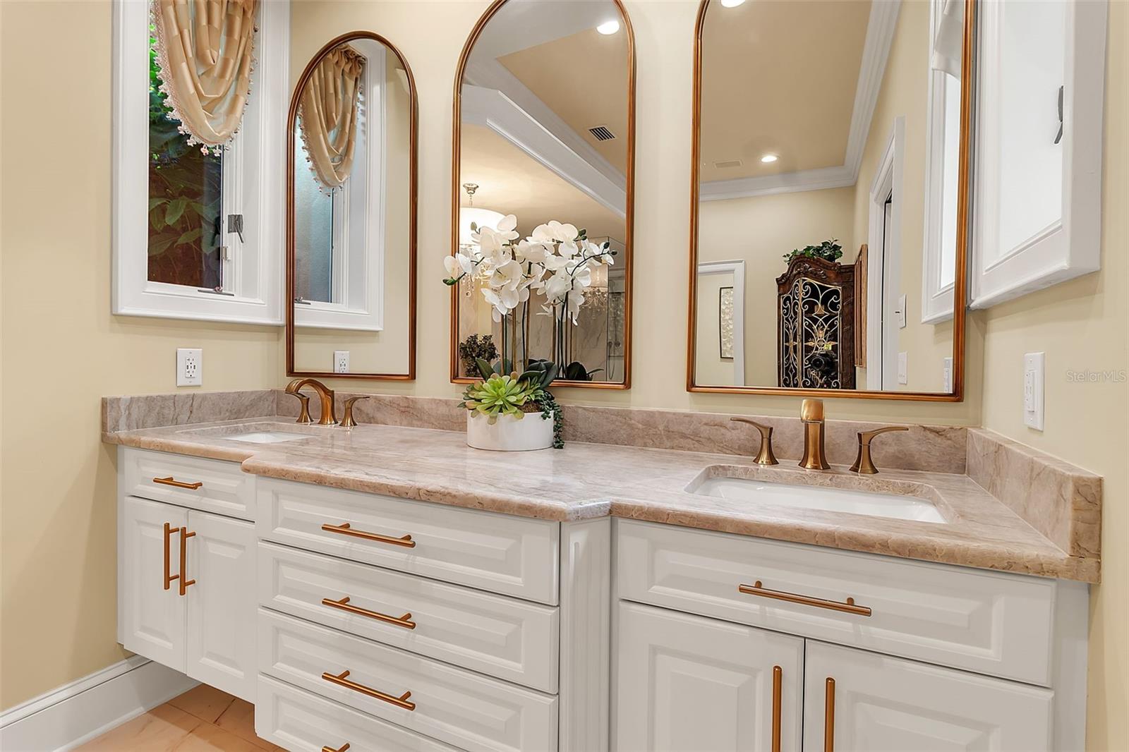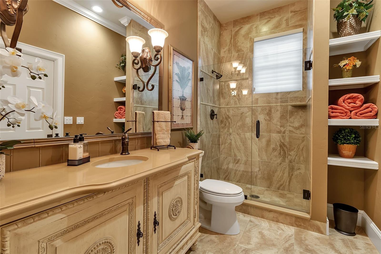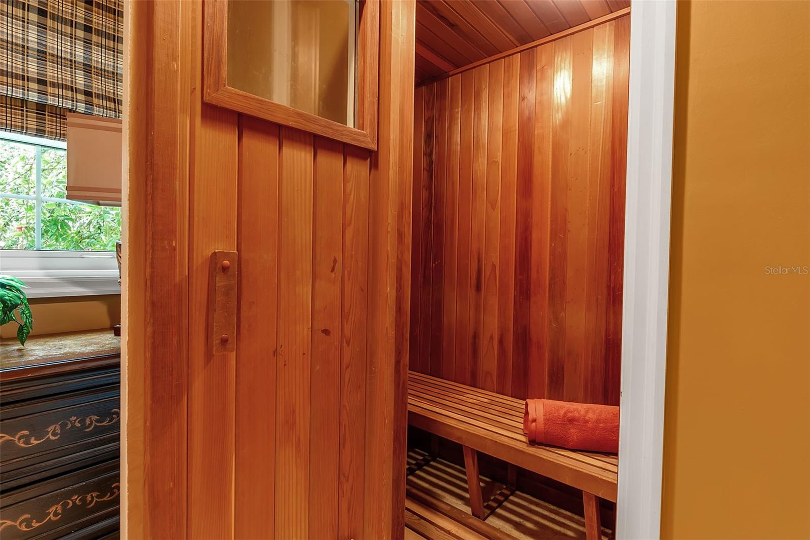 A grand traditional residence, this 3-bedroom, 3.5-bath home is tucked into lush tropical landscaping on a quiet cul-de-sac in The Oaks Bayside. Double entry doors open to a marble foyer and wood floors that set the tone for quality throughout. Just off the entry, a cozy den with fireplace sits opposite a spacious guest suite. The heart of the home is the light-filled great room, with formal living and dining areas opening through French doors to the covered patio and resort-style pool. The kitchen combines beauty and function with granite countertops, center island cooktop, breakfast bar, and a sunny nook overlooking the pool and waterfall feature. The elegant primary suite offers marble floors, soaring ceilings, plantation shutters, and private access to the pool for an early swim or late-night dip. A glamorous dressing area leads to the spa-like bath with soaking tub, walk-in shower, and marble finishes. Two additional oversized en suite bedrooms provide comfort and privacy for guests. A large laundry room with ample cabinetry and an adjacent private sauna complete the interior. Outdoors, the free-form pool with rock outcroppings and waterfall is a showstopper, surrounded by both shaded and open areas for dining and relaxing. With two adjoining lots preserved as gardens, this home offers rare seclusion in a natural setting. Ownership includes membership in The Oaks Club, Sarasota's premier golf and country club, featuring two championship courses, tennis, WellFit center, fine dining, and a vibrant year-round social calendar--all in the heart of South Sarasota.