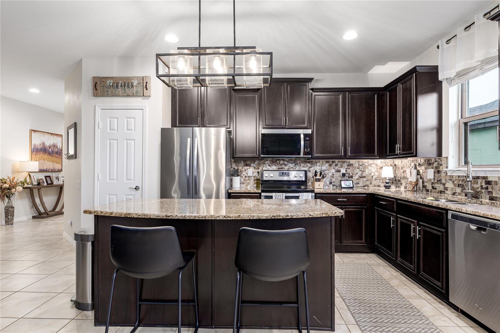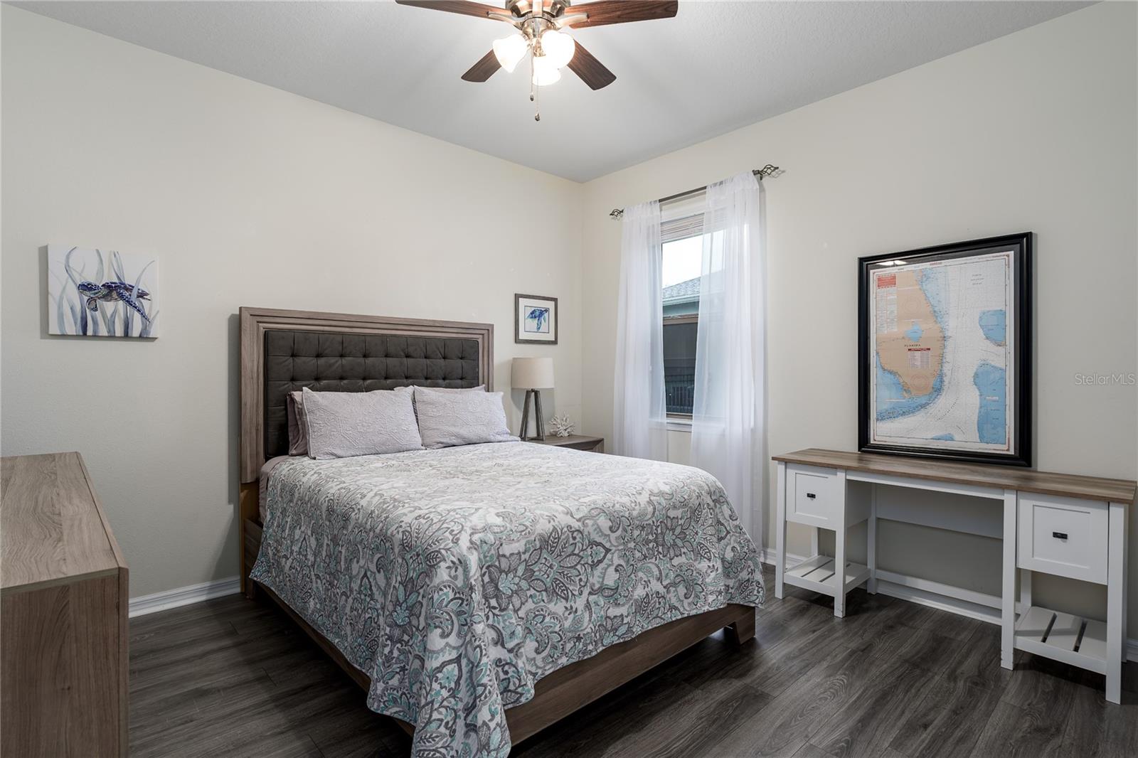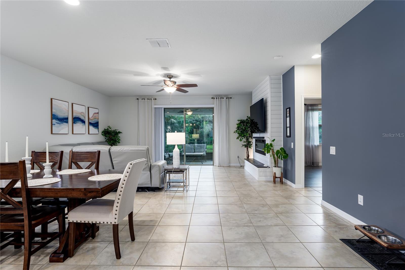 New Price! WELCOME HOME to 5716 110th Avenue E, a well-appointed 2014-built single-family residence located in the desirable Harrison Ranch community, centrally positioned in Parrish, FL. Offering 2,144 square feet under air, this 3-bedroom, 2-bathroom, 2-car garage home features a newly painted exterior (2025) and meticulously maintained landscaping (added 2025), providing excellent curb appeal.The interior layout includes a recently refreshed split floor plan (painted 2023), two spacious guest bedrooms with shared bath, a versatile den/office (suitable as a potential fourth bedroom), and a primary suite with an upgraded master bathroom (2024). The main living area is designed for flexibility and comfort, featuring an open-concept kitchen, dining, and living space. The kitchen is equipped with a large island, granite countertops, decorative backsplash, stainless steel appliances, and enhanced cabinetry. The living area offers an electric fireplace set against custom shiplap and provides access via a large slider to the covered lanai, open patio, and a fenced yard with water views.Additional features include a built-in 'mud' area adjoining the indoor laundry and custom shelving in the garage. Community amenities comprise over five miles of walking trails, swimming pool, tennis courts, basketball and pickleball courts, park, playground, fitness center, clubhouse, and reclaimed water irrigation. Conveniently situated near acclaimed schools, dining, and shopping venues, this property delivers an optimal blend of comfort, accessibility, and quality living. Schedule your showing today!