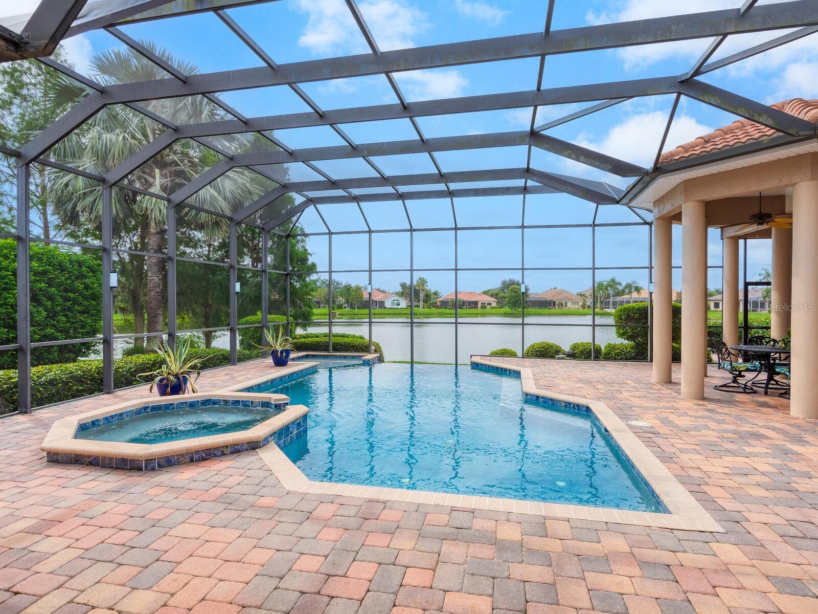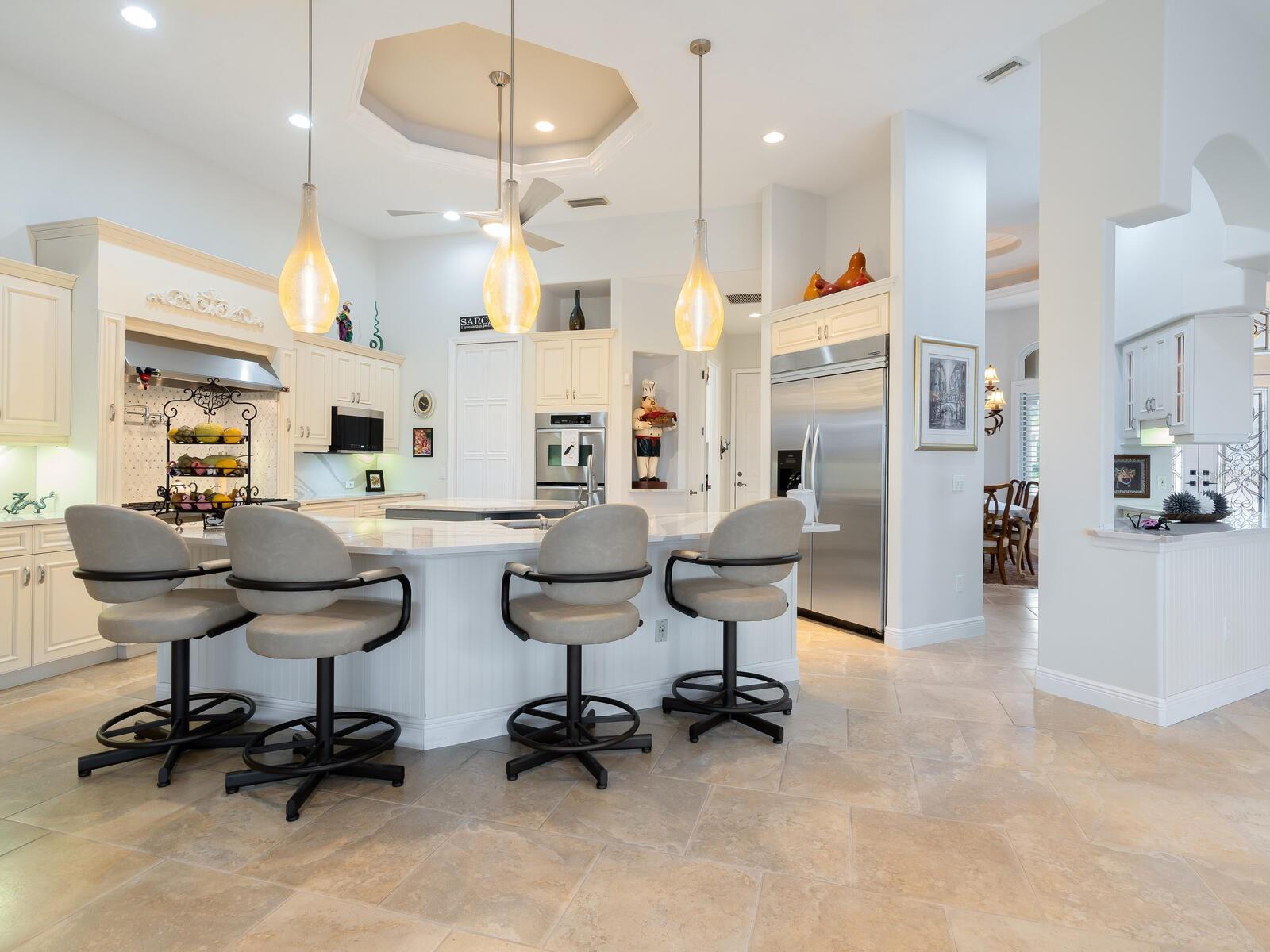 PRICE IMPROVEMENT... Exquisite 3 / 4 Bedroom Home with Office & Game Room (which could easily become bedroom 4 if desired) in the Prestigious River Wilderness Golf & Country ClubWelcome to this stunning 3,772 sq. ft. home, nestled in the exclusive River Wilderness Golf & Country Club. Custom designed with luxury and comfort in mind, this exceptional residence boasts a spacious open floor plan that seamlessly blends elegance with functionality.The home features generously sized bedrooms, a private office ideal for working from home, and a dedicated game room perfect for entertaining guests or enjoying family time. In the heart of the home is an elegantly appointed kitchen, and the large windows throughout the home capture breathtaking views of the expansive lake, offering a serene backdrop that complements the tranquility of this gated community.Step outside to your own private paradise, equipped with outdoor kitchen and bar. The infinity pool appears to merge with the sparkling lake, creating an oasis-like atmosphere, while the wide lake view provides the perfect setting for relaxation and outdoor entertaining.The newly installed LED exterior lighting can change color to match your every mood. And for the car enthusiast, the home is equipped with a 3-car garage featuring individual 9-foot-wide doors, offering ample space for your vehicles, golf cart and additional storage.Situated in this sought-after community, this home is not just a place to live -- it comes with everything you would expect from a Country Club lifestyle. The Club house boasts a full service restaurant, workout room, pro shop, tennis courts and more. Don't miss the opportunity to make this extraordinary property yours!