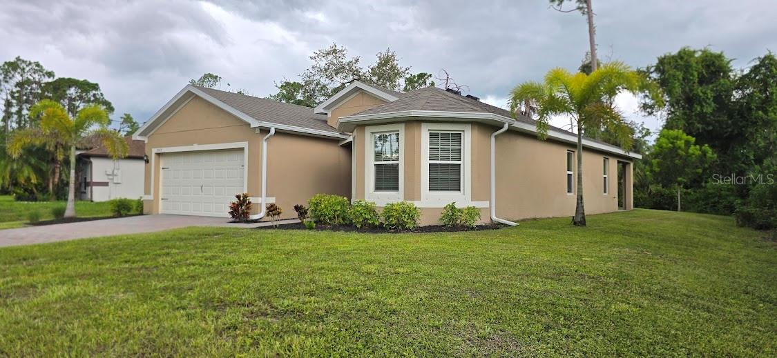 One or more photo(s) has been virtually staged. Set on a rare .51-acre corner lot, this updated 3 bedroom, 2 bathroom home offers just over 1,700 sq ft of move-in ready living with plenty of space to enjoy inside and out. The oversized lot provides privacy, mature oak trees, and fruit trees including peach, banana, and strawberry guava, along with a Moringa tree, all supported by an updated irrigation system with new sprinkler heads. Inside, cathedral and tray ceilings, fresh baseboards, and abundant natural light highlight the thoughtfully designed split floor plan. The central kitchen features refreshed cabinetry, counters, and a pantry, opening seamlessly to both the living and family rooms. The private primary suite includes dual closets, one a walk-in with built-in shelving, and a remodeled ensuite bath with a beautifully tiled walk-in shower. Two additional bedrooms also offer walk-in closets, and the second bathroom has been updated with modern finishes. French doors in multiple rooms lead to an expansive screened lanai with concrete columns and ceiling fans, creating a perfect retreat for year-round outdoor living. Additional features include porcelain tile flooring, a laundry room, and ceiling fans in every room. Major improvements include a new roof in 2023 and a new AC in 2022, giving added peace of mind. Conveniently located near schools, shopping, dining, Myakkahatchee Environmental Park, the North Port Aquatic Center, Charlotte Sports Park, and a short drive to Gulf beaches. **THIS PROPERTY QUALIFIES FOR A 1% LENDER INCENTIVE IF USING PREFERRED LENDER. INQUIRE FOR MORE DETAILS.**