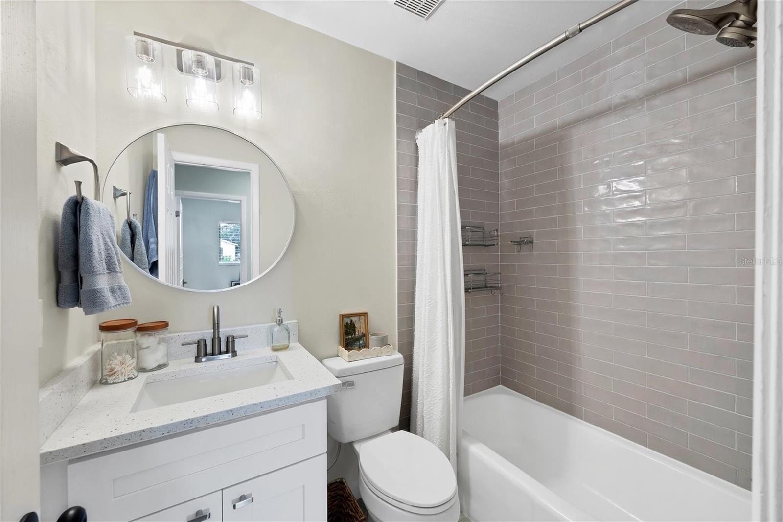 Stylishly updated and meticulously maintained four-bedroom, two-bath pool home, ideally on a quiet cul-de-sac in one of West Bradenton's desirable neighborhoods. Entering inside, you'll discover a bright, open floor living space with vaulted ceilings, luxury waterproof vinyl plank flooring and glass sliders leading to the pool. The modern kitchen is a culinary haven, featuring shaker-style cabinetry, quartz countertops, stainless steel appliances, a breakfast bar, closet pantry for storage, striking tri-color subway tile backsplash and reverse osmosis system. The spacious primary suite offers private access to the covered patio, a spa-inspired en-suite bath with a seamless glass shower, custom tile finishes, a dual sink quartz vanity and stone-style finish tile flooring. Three additional bedrooms provide ample space for a growing family, guests, or a home office, each with updated closets. Guest bath exhibits new mosaic tile flooring, updated vanity and subway tile finishes in the shower and tub. Enjoy your own backyard oasis with a screened-in refinished pool deck and resurfaced pool (2024), covered lanai, new sod and a fully fenced yard, ideal for entertaining or relaxing in privacy. The home is equipped with a fully functional well pump and newer irrigation system, offering lush landscaping without the water bill. Additional upgrades include fresh interior paint and modern baseboards, new ceiling fans and closet doors throughout, and expanded attic storage. Plus, an oversized driveway with two-car garage, newer HVAC (2022), low HOA fees and community pool. Built to withstand Florida's toughest weather, this concrete block home in Flood Zone X sustained zero damage during last year's hurricane season with no lost shingles, no flooding and peace of mind, according to the owner. Just minutes from GT Bray Park, IMG Academy, top-rated golf courses, Bradenton Christian School and the world-renowned beaches of Anna Maria Island, this home offers a blend of comfort, style and location. Don't miss this rare opportunity to own a move-in-ready pool home in a prime location with thoughtful upgrades and exceptional care throughout.