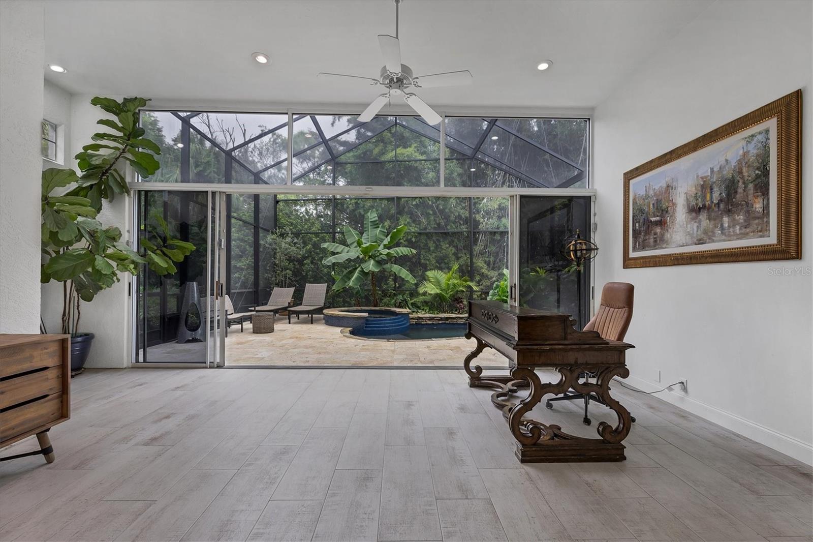 NEW ROOF (2025, updated photos are coming soon), NEW WATER HEATER (2025), NEW POOL (2022), NEW POOL CAGE (2022). Golf Cart is included. Welcome to University Park Country Club, a premier gated community where lush natural beauty meets refined luxury living. Set among serene lakes, pristine golf course views, and tranquil preserve areas, this prestigious enclave is known for its meticulously maintained landscape that feels like a private botanical garden. Residents enjoy an active lifestyle with award-winning golf, tennis, croquet, and a full calendar of social events and activities.As you arrive through the friendly security gate, you'll be impressed by the community's design--1,200 residences set across 1,200 acres and enhanced by a 27-hole championship golf course.This nearly 2,600 sq. ft. residence welcomes you with a double-door entry into soaring 12-foot ceilings and an open-concept great room filled with natural light. Recently updated flooring adds elegance throughout, while the formal dining room--currently a music room--has hosted many piano performances and gatherings.The home features three spacious bedrooms, including a serene primary suite with a walk-in closet, dual vanities, soaking tub, and walk-in shower. The kitchen, the heart of the home, boasts abundant cabinetry and storage. The sunroom, currently used as an office, overlooks the newly installed pool and spa--perfect for both productivity and relaxation.Outdoors, enjoy the sparkling pool and spa within a recently updated pool cage, offering peace of mind. A brand-new roof, soon to be installed, completes this thoughtfully maintained property, ready for years of comfort and enjoyment.