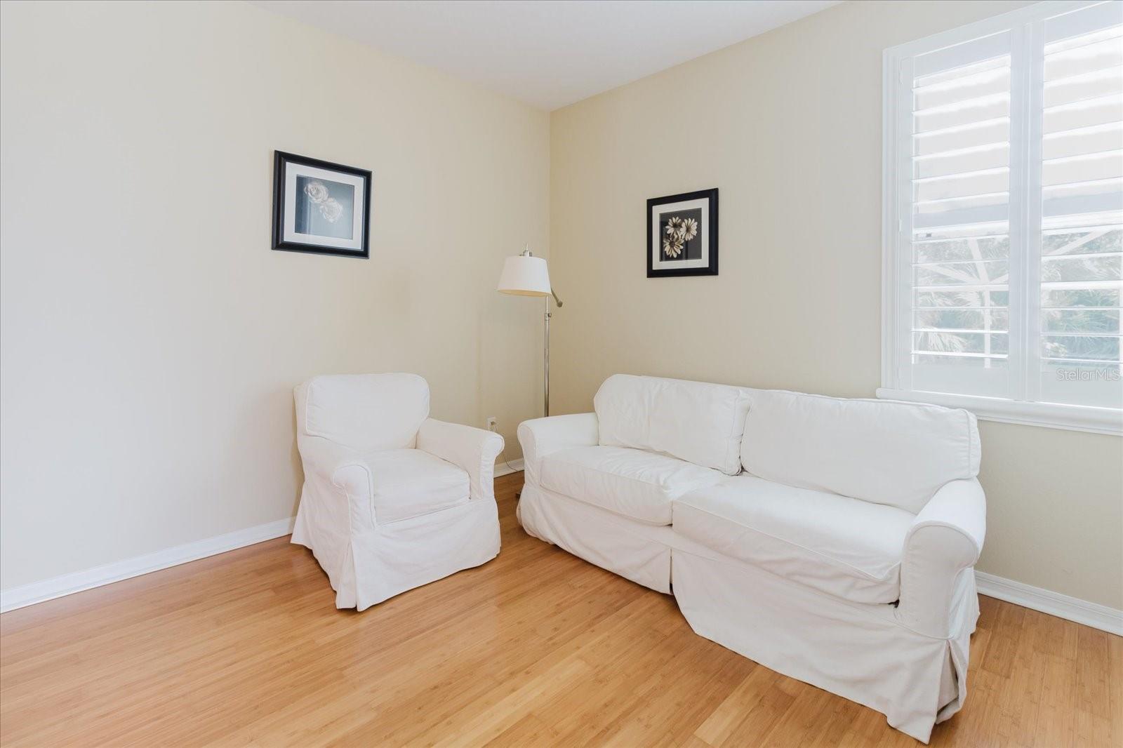 Exterior: Hurricane Shutters, Rain Gutters, Sidewalk, Sliding Doors