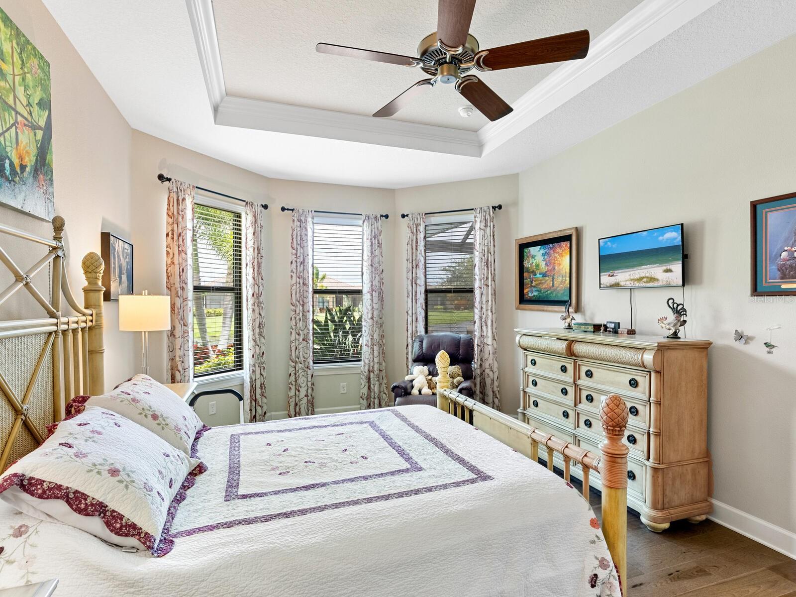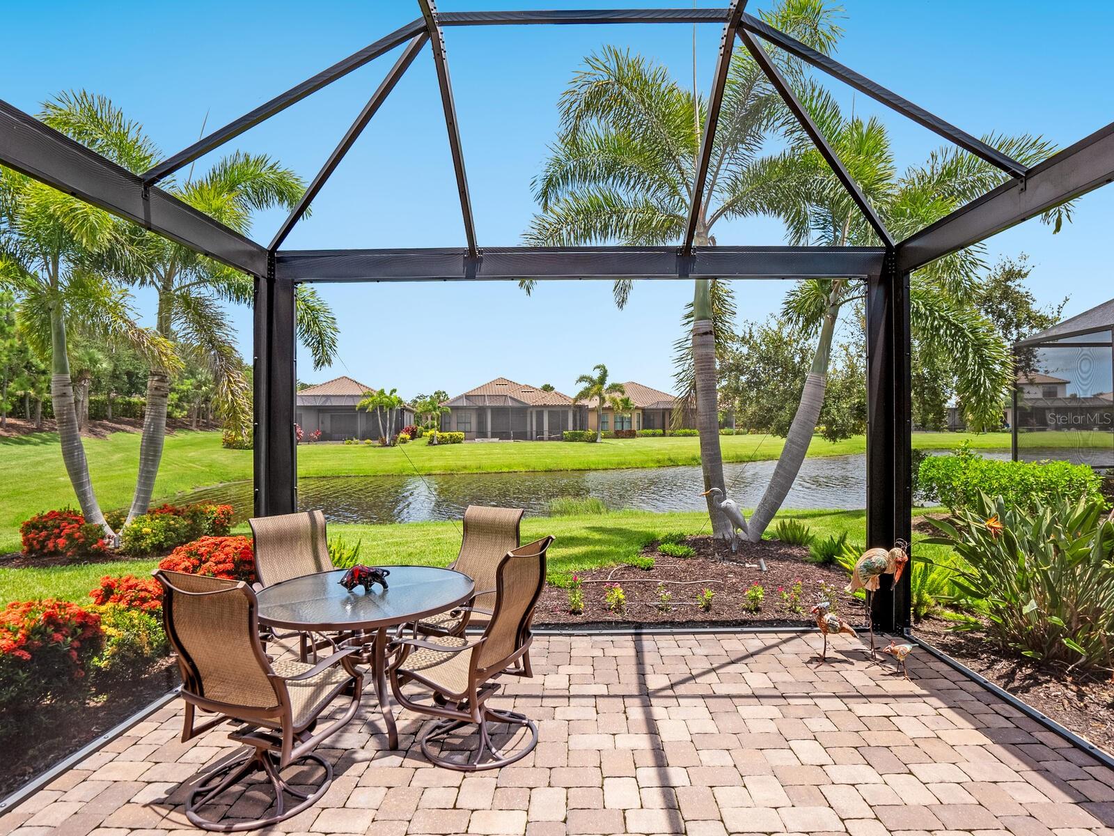 In the gated community of Cobblestone on Palmer Ranch in Sarasota, this waterfront beauty has been impeccably maintained by the original owners. This prime location at the end of a cul-de-sac offers two bedrooms, two baths with an office which could be a third bedroom and a separate dining area. This home's bright open floor plan and spacious kitchen with breakfast bar lead to the lanai overlooking the pond. The split plan home offers a luxurious primary suite with lake views and a second bedroom that is en suite as well. The extended screened lanai offers serene views of the pond, ideal for entertaining and outdoor living. Additional highlights include a larger-than-average lot ensuring privacy and an oversized two-car garage. Cobblestone on Palmer Ranch is a gated community with excellent amenities, including a beautiful clubhouse with workout facilities, game room, pool with spa, dog park, playground and pickleball courts. A gem, this vibrant community is just five miles to Siesta Key Beach's and seven miles to downtown Sarasota. This home, in this community, is the answer to your Florida lifestyle dreams. Windows and doors are hurricane-rated. Flood zone X, no flood insurance required.