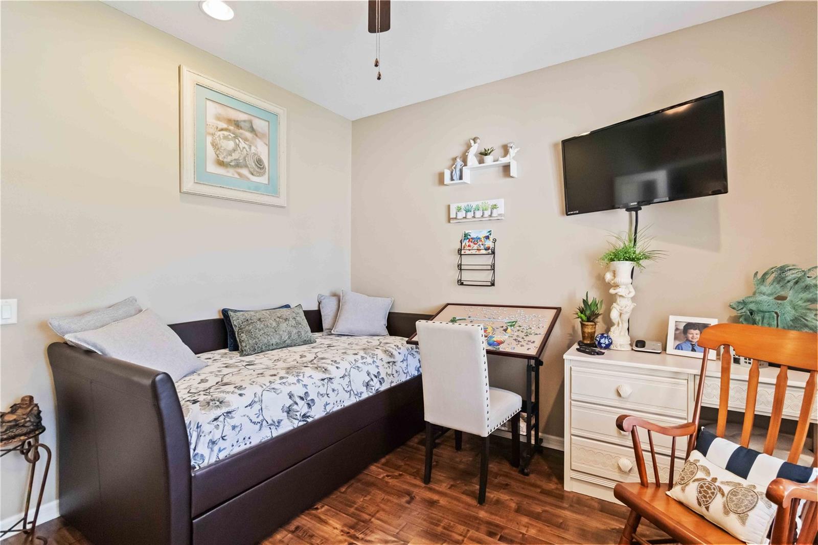 Welcome Home to Elegance & Comfort!Move-in ready and just like new, this charming 3-bed, 2-bath "Freshwater" model built in 2015 offers 1,954 sq ft of thoughtfully designed living space on a generous 6,499 sq ft lot. Nestled in a gated community, you'll love the care and detail: freshly painted interiors, professional cleaning top to bottom, and lovely touches like tray ceilings, stone-style solid surface counters, an open floor plan with split bedrooms, and a screened lanai perfect for relaxing or entertaining.Step outside and enjoy a serene pond view from both your front porch and the screen-enclosed rear porch, soak up the Florida sunshine, or take a stroll through the community's walking paths. This neighborhood doesn't just look beautiful--it lives beautifully, too: resort-style pool, clubhouse, fitness center, dog park, playgrounds, lush landscaping, and more.Best of all, this home can be sold furnished or unfurnished -- the choice is yours.Conveniently located just off I-75, shopping, dining, and beaches are a short drive away. With excellent schools close by and every amenity at hand, this is Florida living done right. Don't wait - homes like this go fast!