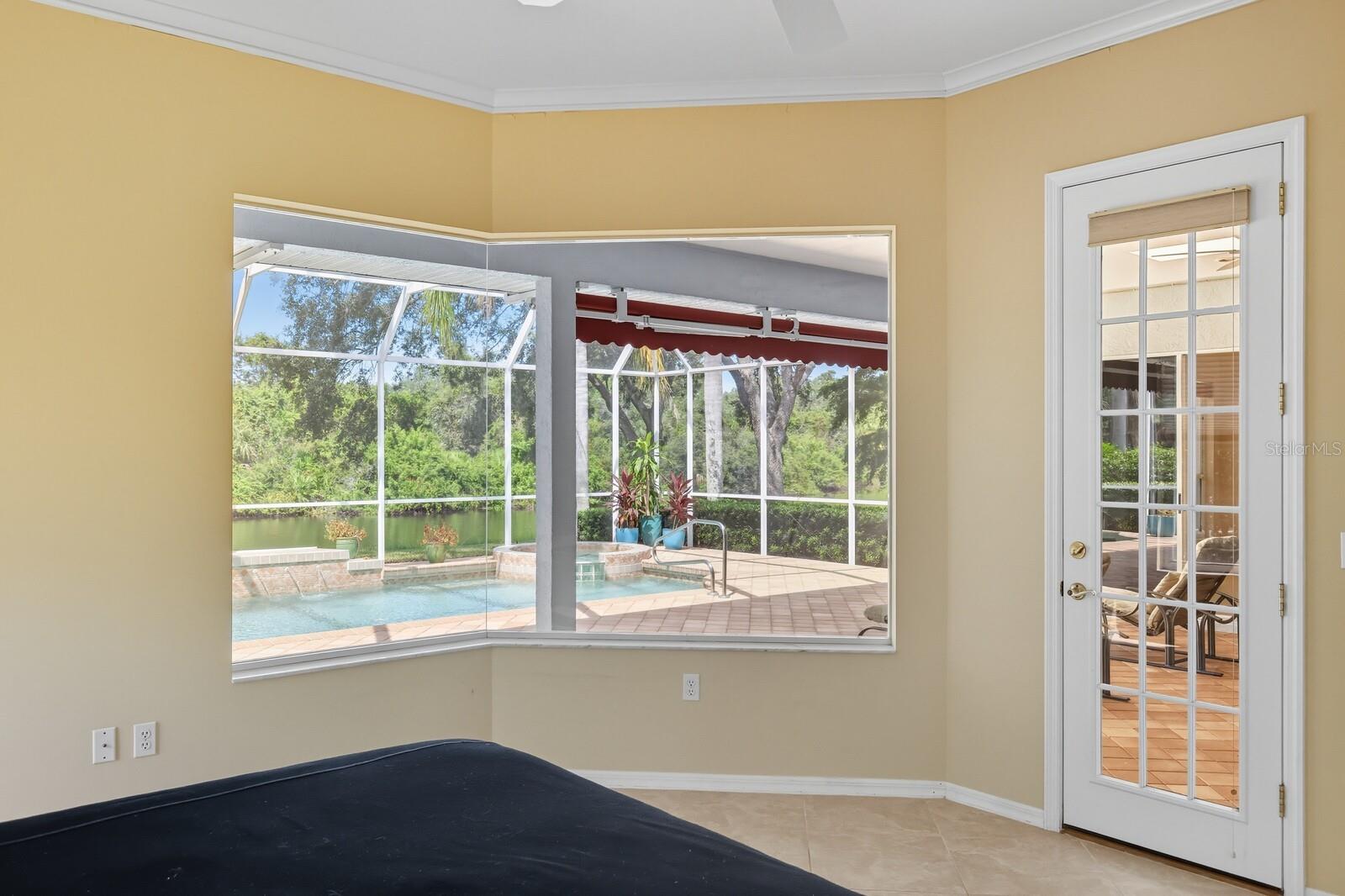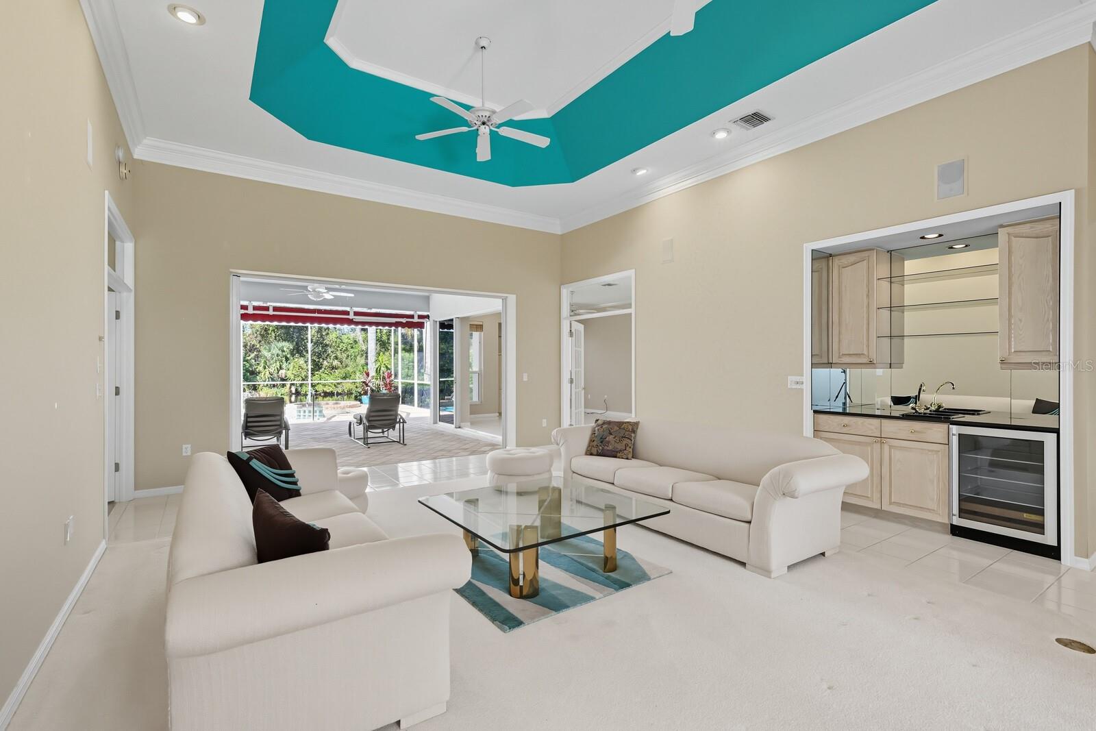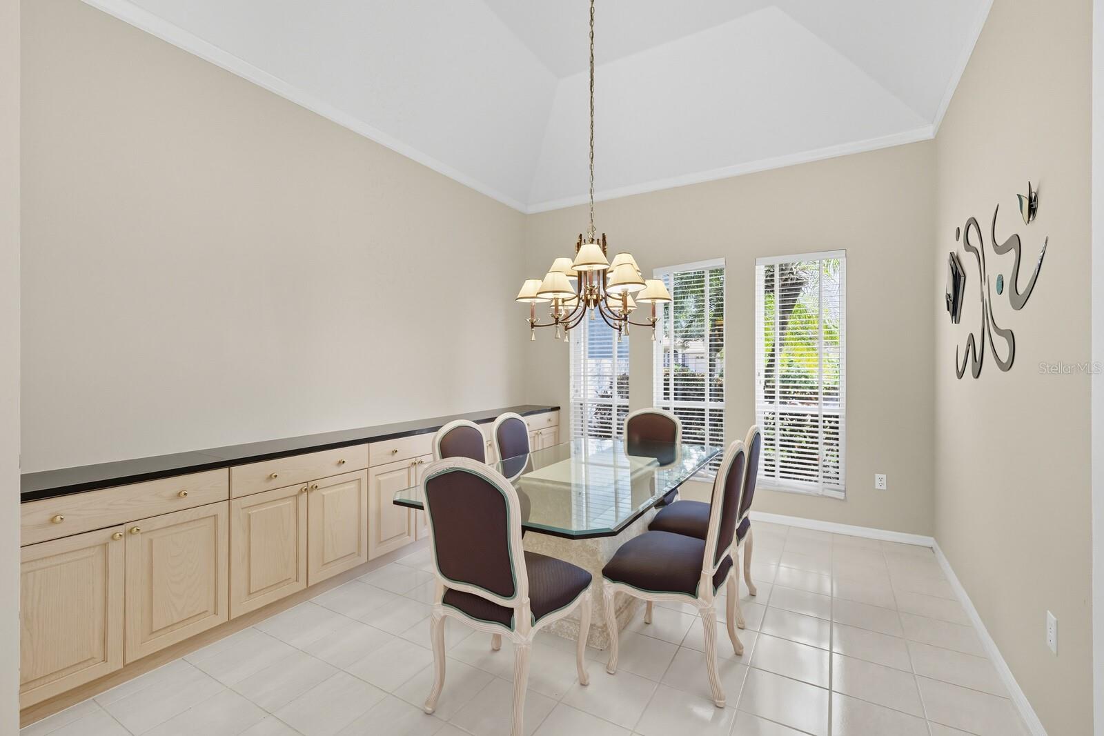 THIS LOVELY LAKEFRONT HOME IS SITUATED IN EATON PLACE, WHICH IS CLOSE TO UNIVERSITY PARK'S CLUBHOUSE AND IS IN A VERY QUIET PART OF UNIVERSITY PARK COUNTY CLUB. THE LAKEVIEW IS SPECIAL WITH NO HOMES ACROSS THE LAKE, JUST WATER AND BEAUTIFUL MATURE TREES! LOVELY FRONT ELEVATION AND LANDSCAPING. DOUBLE FRONT GLASS ENTRY DOORS OPEN TO HIGH TRAY CEILINGS AND CROWN MOLDING. THE LIVING ROOM IS OUTFITTED WITH A WET BAR, BUILT-IN CABINETS AND WINE COOLER. SEPARATE DINING ROOM WITH BUILT-IN CABINETS AND CONVENIENT COUNTERTOP SERVING AREA. OPEN KITCHEN TO FAMILY ROOM DESIGN HAS POOL AND WATER VIEWS. A CATHEDRAL CEILING ACCENTS THE DEN/OFFICE. THIS IS THE VERY POPULAR SPLIT BEDROOM PLAN, 2 FULL BATHROOMS AND A POWDER ROOM, PLUS A VERY CONVENIENT POOL BATH. BEAUTIFUL LANAI ACCENTED BY BRICK PAVERS, HEATED POOL AND SPA AND WITH FABULOUS WATER VIEW. SPACIOUS 2 CAR GARAGE PLUS SEPARATE GARAGE DOOR FOR YOUR GOLF CART!