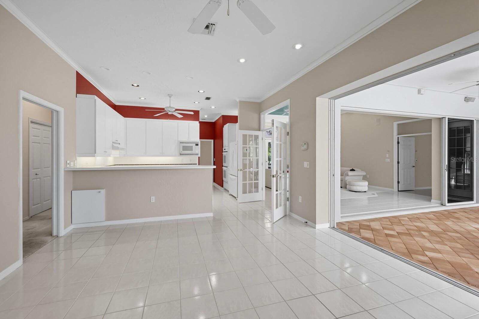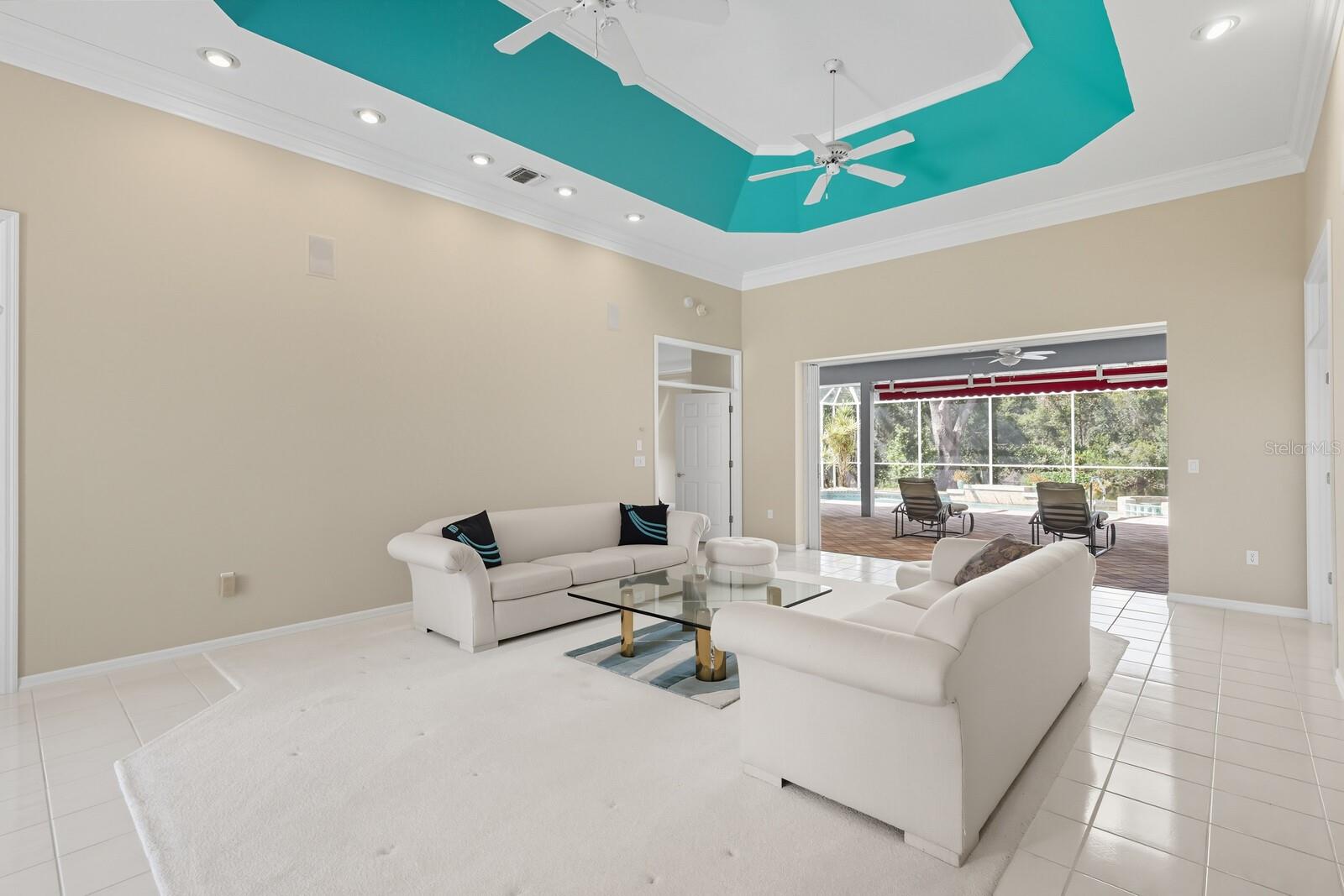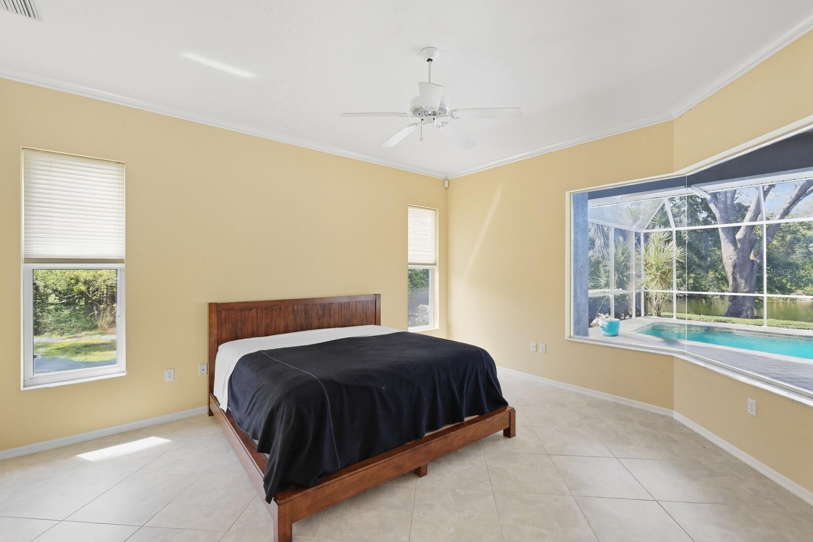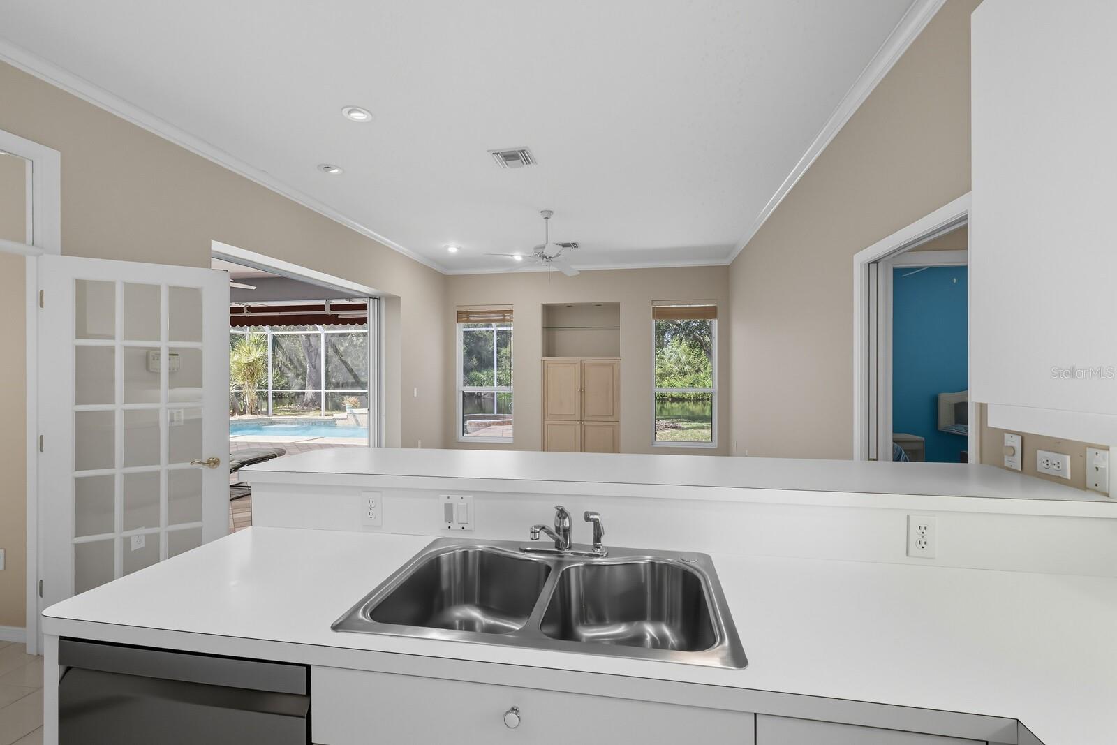 THIS LOVELY LAKEFRONT HOME IS SITUATED IN EATON PLACE, WHICH IS CLOSE TO UNIVERSITY PARK'S CLUBHOUSE AND IS IN A VERY QUIET PART OF UNIVERSITY PARK COUNTY CLUB. THE LAKEVIEW IS SPECIAL WITH NO HOMES ACROSS THE LAKE, JUST WATER AND BEAUTIFUL MATURE TREES! LOVELY FRONT ELEVATION AND LANDSCAPING. DOUBLE FRONT GLASS ENTRY DOORS OPEN TO HIGH TRAY CEILINGS AND CROWN MOLDING. THE LIVING ROOM IS OUTFITTED WITH A WET BAR, BUILT-IN CABINETS AND WINE COOLER. SEPARATE DINING ROOM WITH BUILT-IN CABINETS AND CONVENIENT COUNTERTOP SERVING AREA. OPEN KITCHEN TO FAMILY ROOM DESIGN HAS POOL AND WATER VIEWS. A CATHEDRAL CEILING ACCENTS THE DEN/OFFICE. THIS IS THE VERY POPULAR SPLIT BEDROOM PLAN, 2 FULL BATHROOMS AND A POWDER ROOM, PLUS A VERY CONVENIENT POOL BATH. BEAUTIFUL LANAI ACCENTED BY BRICK PAVERS, HEATED POOL AND SPA AND WITH FABULOUS WATER VIEW. SPACIOUS 2 CAR GARAGE PLUS SEPARATE GARAGE DOOR FOR YOUR GOLF CART!