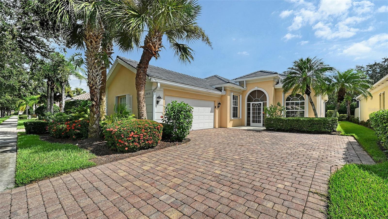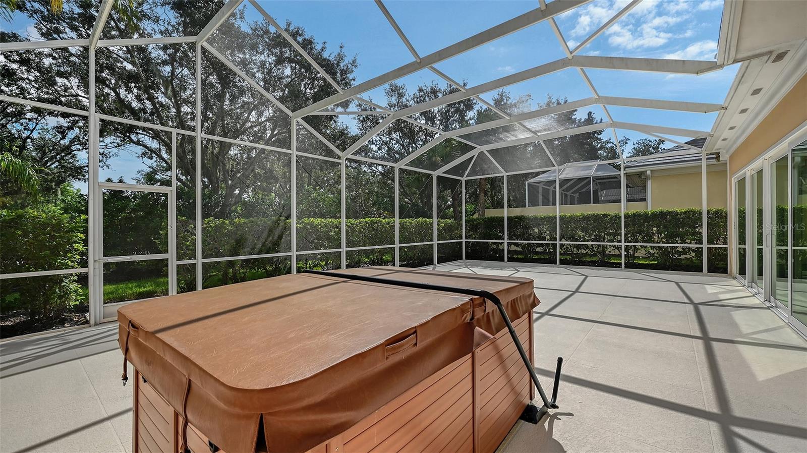 One or more photo(s) has been virtually staged. A NEW ROOF! Price Reduced! Fantastic Oakmont Floor Plan with 3 bedrooms, 2 baths and Florida room with two ceiling fans and hurricane Impact Sliders, providing daylight & egress during storms. All other Doors and WIndows have accordion Shutters. This beautiful open floor plan is loaded with extras and features tile throughout (No Carpet), Crown Molding, Freshly painted throughout, Built in Book Cases in Den, Granite Countertops in Kitchen with Pot Drawers for easy access, Culligan Water Purification System in Kitchen, Lennox 3.5 Ton, 15 Seer A/C (2015) with new expanded duct work. Lanai floor has been freshly Painted and Hot Tub refreshed. All you have to do is Move IN! Village Walk is a wonderful unique community, built hurricane safe with poured concrete walls and foundations. Every home in Village Walk is considered to be a Single Family Home, roofs are tied down to the structures, per the Florida Building Codes and considered to be above average. Inspectors, roofers and Insurance agents that are familiar with Village Walk will share this information with you. Village Walk is in Flood Zone X, an area that is determined to be outside the 1% and 0.2% chance of flooding. FEMA updated, 8/2/24. Flood Zone provided by Sarasota County Tax reports. Evacuation zone D, flood insurance is not mandatory, but flood insurance is available. Village Walk power lines are underground with a Sarasota Fire Department just down Honore. Seldom losing power. Amenities include 24 hr guarded gate, geo-thermal heated and cooled lap & lagoon pools, six Har-Tru Tennis courts, Pickle ball, Bocce' ball and Basketball courts, State of the Art fitness Center, Miles of walking and bike paths, over 500 acres of lakes and preserves. There are over 50 activity groups who meet daily, weekly, or monthly. Plus there is a full service Cafe with full service Bar, Gas Station, Barber shop/Hair Salon, and Gift Shop. A special NOTE is that Village Walk did not lose power during the hurricanes and there was No flooding. What a Fantastic Place to Call HOME!
