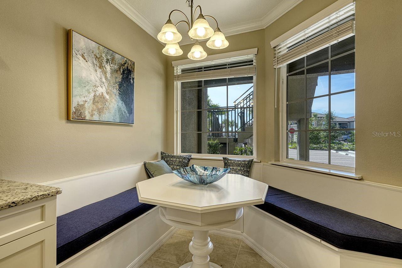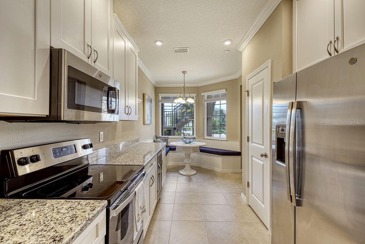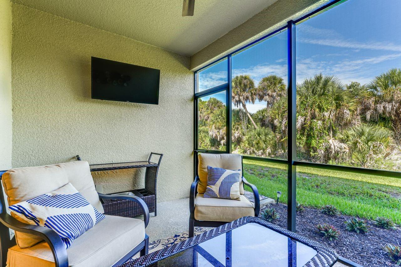Experience Resort-Style Living in Esplanade on Palmer Ranch. Nestled in the highly sought-after community of Esplanade on Palmer Ranch, this beautifully designed ground-floor condo offers the perfect winter escape. With two spacious bedrooms, two bathrooms, and a den, this Garden Homes unit blends comfort with style. Step inside to find bright, neutral tile flooring throughout the main living areas, kitchen, and den, creating a seamless flow. The well-appointed kitchen features elegant granite countertops, stainless steel appliances, and thoughtful upgrades, including a custom-built banquette with storage, an extended kitchen counter with a wine fridge, plus an additional cabinet above the refrigerator for extra storage. This condo also comes with a detached one-car garage and an assigned parking spot. Hurricane panels are included for all windows and sliders, offering peace of mind in any weather. The community's resort-style amenities are the real highlight. The amenity center is the heart of Esplanade, offering a full calendar of activities. Enjoy two sparkling pools, a splash area and playground, a fitness center, pickleball and tennis courts, spa services, and The Bahama Bar restaurant for casual dining. There's truly something for everyone. For outdoor enthusiasts, the Legacy Trail is just minutes away, and Nokomis Beach is an easy 8-mile drive. Venice Beach is only 10 miles away, giving you endless options for sun, sand, and relaxation. Live where you vacation - come and see this exceptional property today!