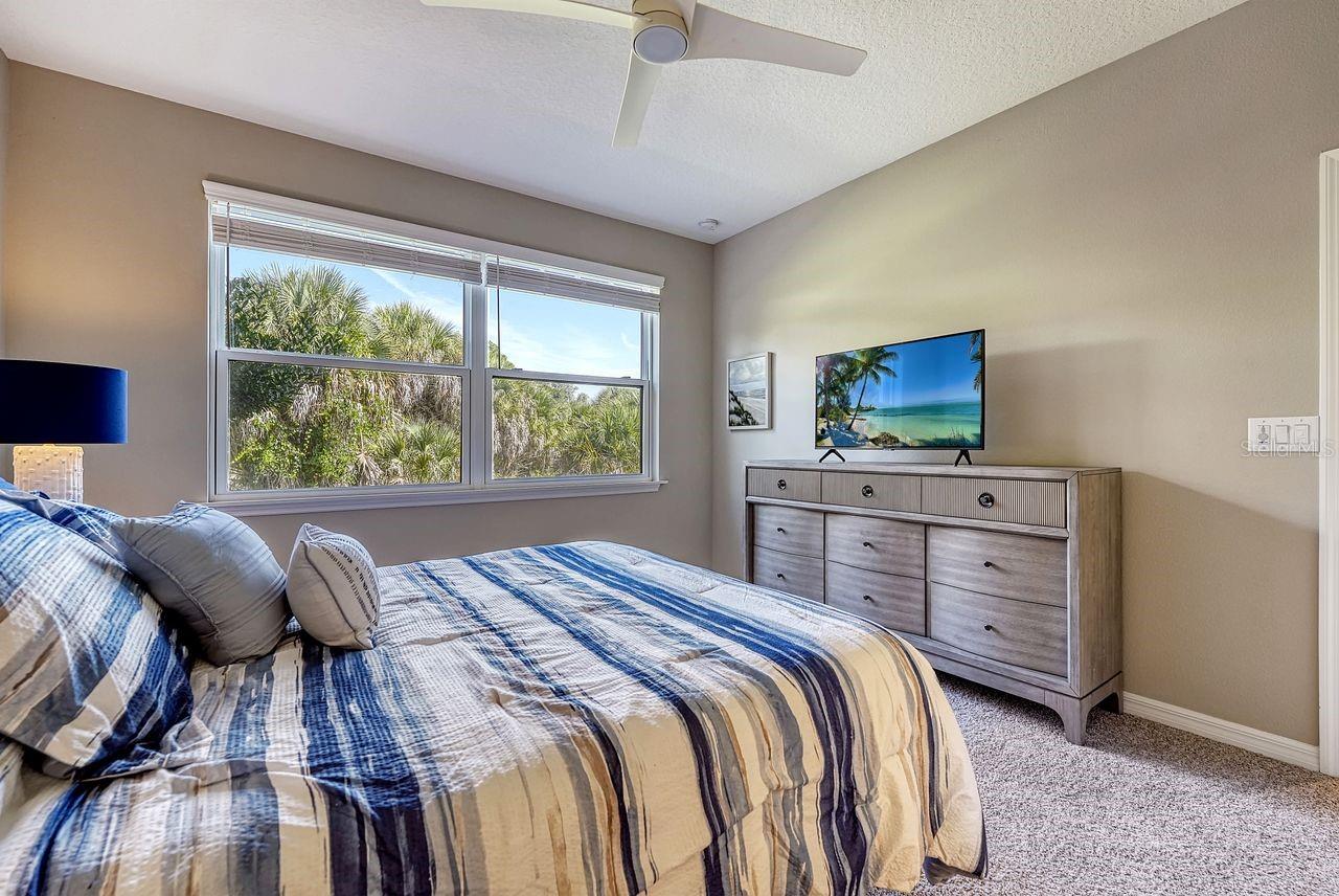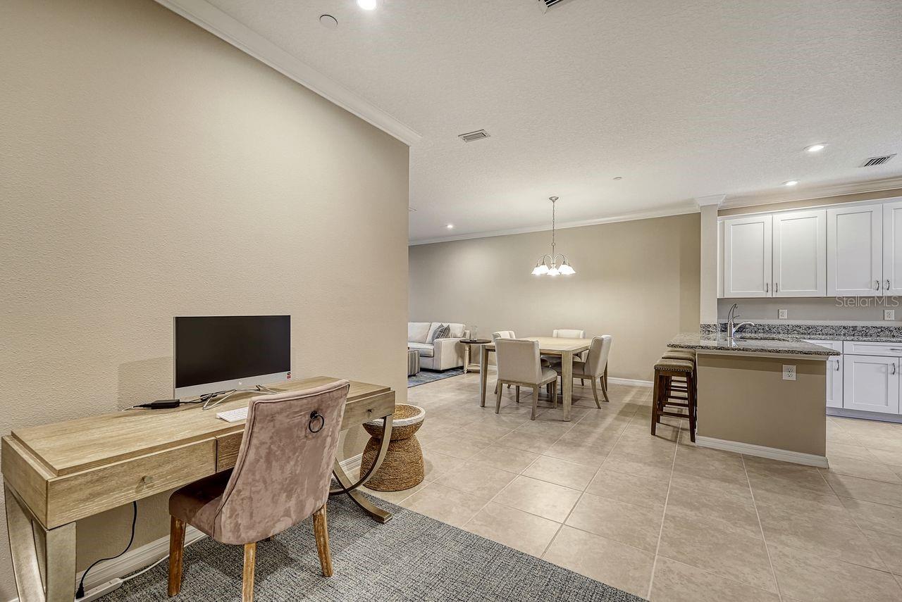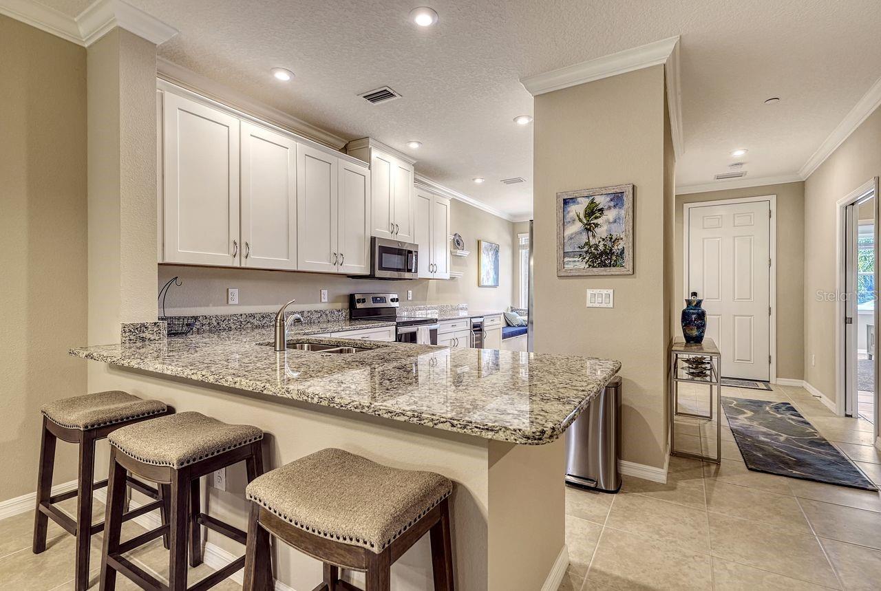 Experience Resort-Style Living in Esplanade on Palmer Ranch. Nestled in the highly sought-after community of Esplanade on Palmer Ranch, this beautifully designed ground-floor condo offers the perfect winter escape. With two spacious bedrooms, two bathrooms, and a den, this Garden Homes unit blends comfort with style. Step inside to find bright, neutral tile flooring throughout the main living areas, kitchen, and den, creating a seamless flow. The well-appointed kitchen features elegant granite countertops, stainless steel appliances, and thoughtful upgrades, including a custom-built banquette with storage, an extended kitchen counter with a wine fridge, plus an additional cabinet above the refrigerator for extra storage. This condo also comes with a detached one-car garage and an assigned parking spot. Hurricane panels are included for all windows and sliders, offering peace of mind in any weather. The community's resort-style amenities are the real highlight. The amenity center is the heart of Esplanade, offering a full calendar of activities. Enjoy two sparkling pools, a splash area and playground, a fitness center, pickleball and tennis courts, spa services, and The Bahama Bar restaurant for casual dining. There's truly something for everyone. For outdoor enthusiasts, the Legacy Trail is just minutes away, and Nokomis Beach is an easy 8-mile drive. Venice Beach is only 10 miles away, giving you endless options for sun, sand, and relaxation. Live where you vacation - come and see this exceptional property today!