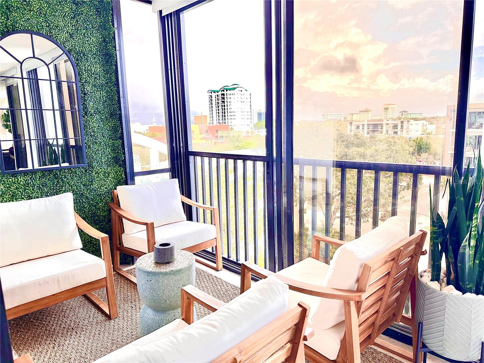 Prime location and downtown living at its very best! Completely updated and renovated, move in ready - designer updated downtown condo with custom high end wood cabinetry throughout kitchen, bathrooms, closets and dry bar areas. Each nook and cranny meticulously planned to maximize every inch. Custom tile work, electric fireplace, electric uv/blackout shades on all windows and sliders. Updated appliances, beautiful lvp and hardwood floors with ample built in storage in each room. At sunset, watch the world go by on your peaceful patio with green space or head to the outdoor benches on property to watch the sunset over Sarasota Bay! Friendly building, with resort style amenities to spare. Management onsite as a bonus! Large swimming pool and quiet sundeck, community fire pit, gazebo and grill, well equipped fitness center with machines and free weights, entertainment room, extra storage and covered under building assigned parking. Structurally sound building, up to date on SIRS milestones, on the hospital grid (bonus during storms), new generator, with a new roof in the last 3 years.Be in the action of downtown, yet tucked away on a quiet cul-de-sac of Gulfstream Ave. City views with building facing beautiful Sarasota Bay, 5 minute walk to Marina and city island, 2 minute walk to burns court, 7 minute walk to all downtown shops and restaurants. Come see for yourself, what a gem this is!