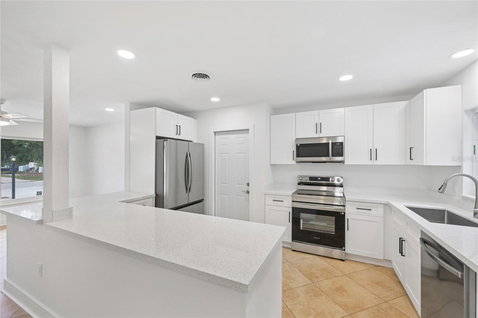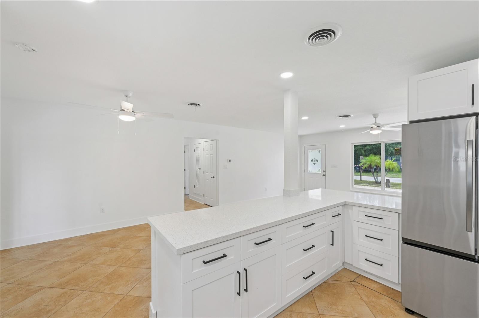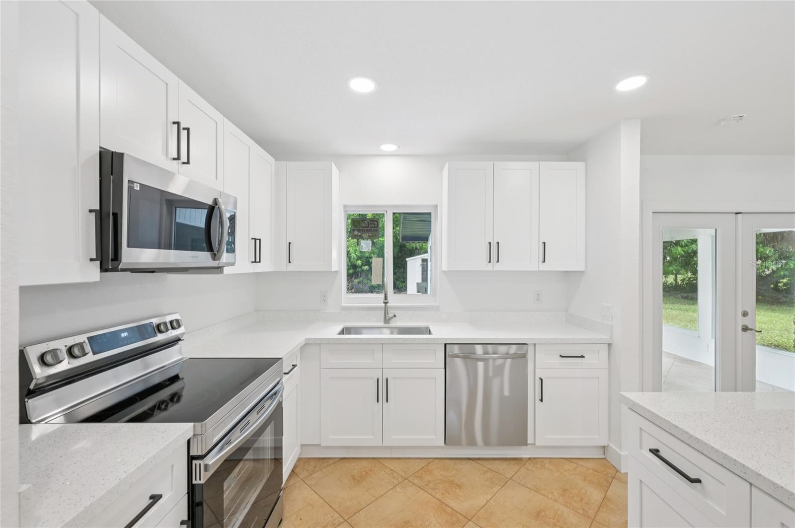 Welcome to this beautifully remodeled 3-bedroom, 2-bathroom home in the heart of Venice! Step inside to find a light-filled open floor plan showcasing white shaker cabinetry, quartz countertops, recessed lighting, and brand-new stainless-steel appliances. Freshly painted inside and out, the home features new trim work, brand-new hurricane impact windows and doors, a newer roof, and A/C for peace of mind.Both bathrooms have been tastefully updated with modern tile, sleek vanities, and matte black fixtures, while the bedrooms offer comfort with new carpet. Situated on a spacious -acre lot with NO HOA, NOT IN FLOOD ZONE, this property provides plenty of room to relax or entertain. Centrally located near Venice's beautiful beaches, shopping, dining, schools, and community events, this home combines style, comfort, and convenience--ready for you to move in and enjoy the Florida lifestyle!