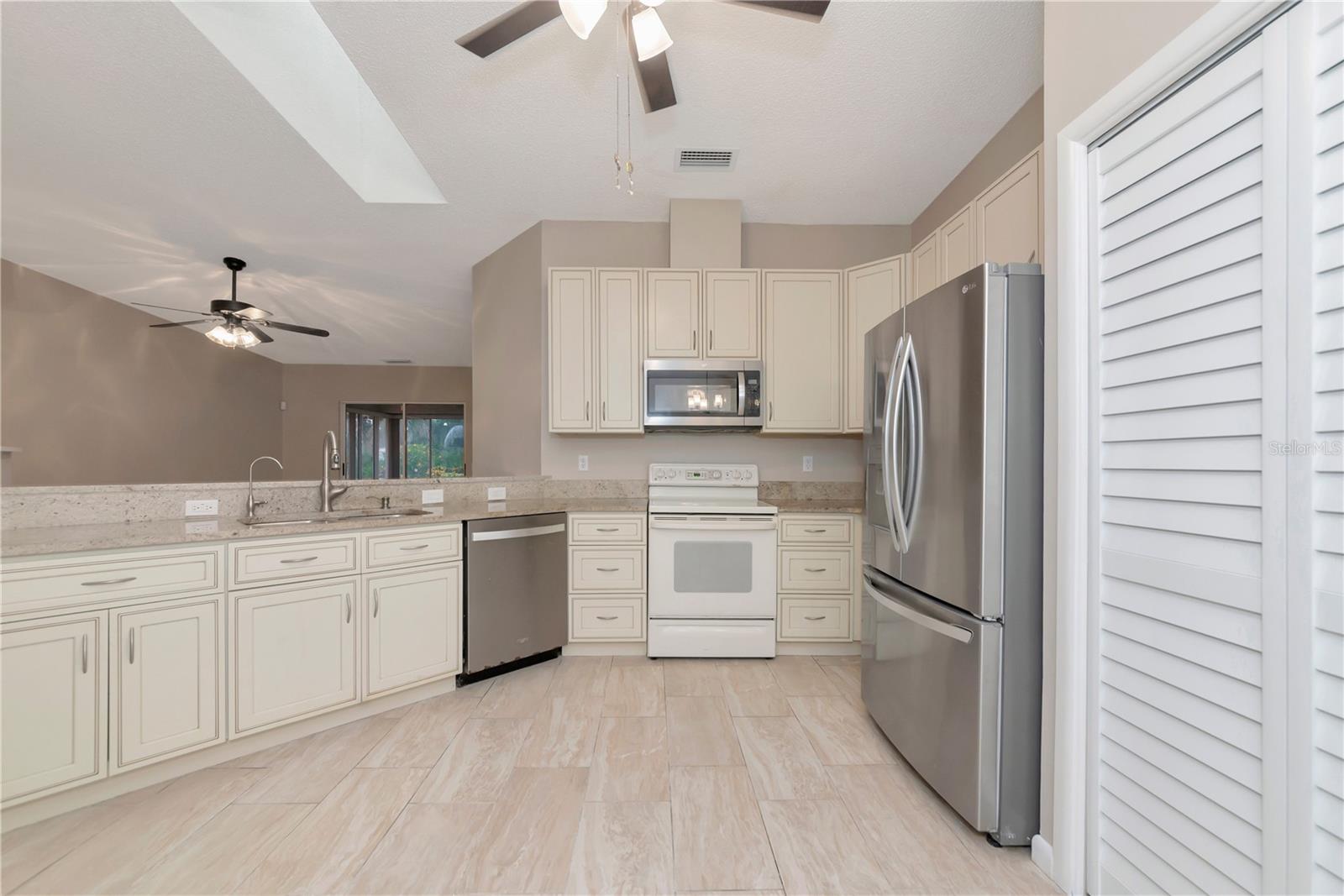 One or more photo(s) has been virtually staged. You've seen the Rest, Now see the Best! New Updates and Upgrades Make this home the Best Value in Garden Lakes Villas. This light and bright home has 2 bedrooms and 2 baths and is on a desirable Corner lot with an exterior patio. Without a doubt, the crown jewel of this home is the remodeled and updated kitchen which opens to the family room and enhances the entire home. This update is an entertainers delight with a breakfast bar modernizing the entire floor plan adding elegance, style, and functionality. The kitchen features two toned cabinets, breakfast bar with counter seating, granite countertops, and newer range and refrigerator. Both bathrooms have been updated, and this unit is Move in Ready. Other features include a New Tile Roof in 2018, New HVAC and Ductwork in 2019, Re-piped in 2019, New Windows in 2013, and New Paint in 2025. This is a nice open floor plan with soft, neutral colors and a sunny Florida room that makes it 1703 sq/ft with an attached 2 car garage. Garden Lakes is a maintenance free, 55+ community that has it all with a heated pool, clubhouse, tennis courts and active social calendar. The location is incredible because it is close to SR 70, I-75, University Pkwy, US 301, UTC Mall, SRQ airport and all area amenities. Click the virtual tour and virtually walk through the house online. Easy to show!