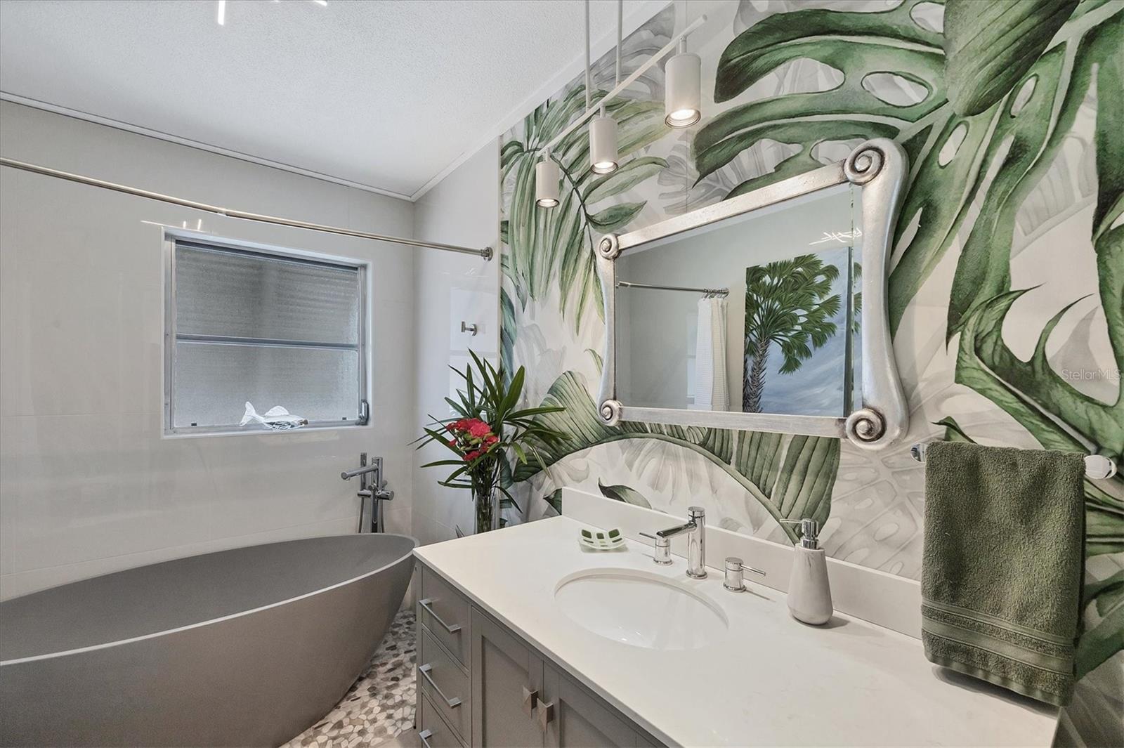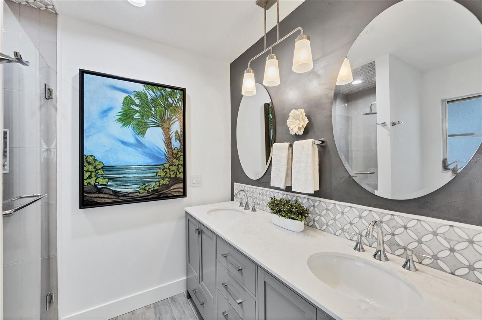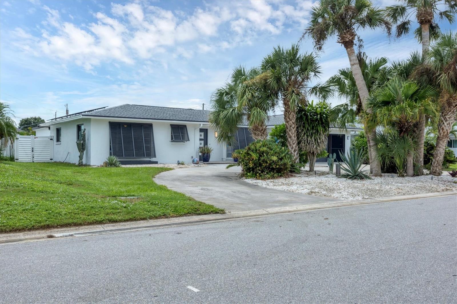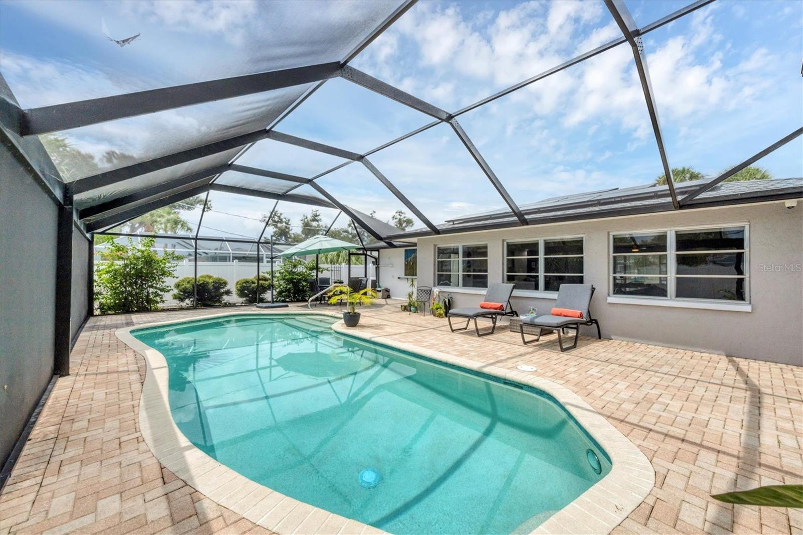 This home is special! Welcome to this beautifully updated two-bedroom, two-bath pool home featuring a one-of-a-kind pool cabana--ideal as a home office, art studio or flex space. Inside, you'll find a wide-open great room floor plan with built-in cabinetry, new flooring, and a chic, neutral palette. The kitchen and both baths were remodeled and provide modern finishes and a fresh, stylish look, including custom closet systems for organized storage. The backyard is designed for entertaining with an oversized lanai space featuring a large free-form pool that was resurfaced/re-tiled in 2022, complete with a new electric heat pump and pool pump. The pool cabana, added in 2022 and equipped with its own mini-split air conditioner, creates a space for work or play. From the main home, view and access the dramatic outdoor shower space surrounded by custom tropical artwork with elevated hardware for the ultimate outdoor shower experience. The property is fully fenced for privacy and includes an oversized garage for all your extras. This home has been thoughtfully updated with a newer roof (2021), new ductwork (2021), updated plumbing with a Manabloc system, new water heater, and solar panels powering the entire house added in 2021 to keep those electrical bills low. Additional improvements include a new air-conditioning system 2022, updated electrical with an outlet for a generator, remodeled kitchen and baths, radiant barrier was added to the attic, and some impact windows were added for peace of mind. In Venice East, a community with a voluntary HOA and no deed restrictions, you'll have the freedom to bring your boat, RV and the extras. All of this is just minutes from Wellen Park, downtown Venice, Gulf beaches, dining and shopping. This jewel won't last long--schedule your showing today!