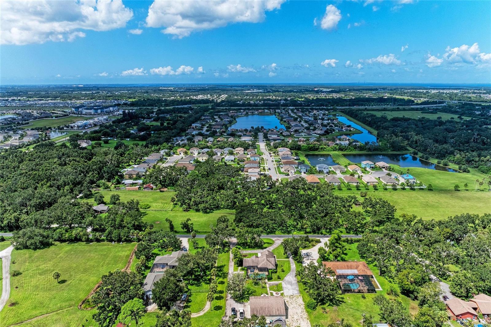 Welcome to this move-in ready home designed for families who need space, style, and convenience. Featuring an open floorplan with new laminate flooring, the first floor offers a versatile flex space perfect for a home office or study. The kitchen, dining, and living areas flow seamlessly, making entertaining and family gatherings effortless. The first-floor master suite boasts a large walk-in closet and ensuite bath for comfort and privacy.Upstairs, four generously sized bedrooms and a large loft provide endless possibilities for a playroom, media space, or second living area. The fully fenced backyard and paved patio are perfect for outdoor gatherings, a fire pit, or even a future pool. Nestled in a quiet neighborhood, this home is framed by open farmland to the back and left side--offering peaceful views, unmatched privacy, and a true sense of tranquility.Additional features include a NEW ROOF (Dec 2024), low HOA, and no CDD. Conveniently located near I-75 and I-275, this home offers quick access to Tampa, St. Pete, and Sarasota. Just minutes away you'll find Ellenton Premium Outlets, Buffalo Creek Golf Course, and Ft. Hamer Park with boat ramps and kayaking on the Manatee River. With nearby new schools and community growth in the North River area, this home combines space, location, and future value -- truly ready for its next family!