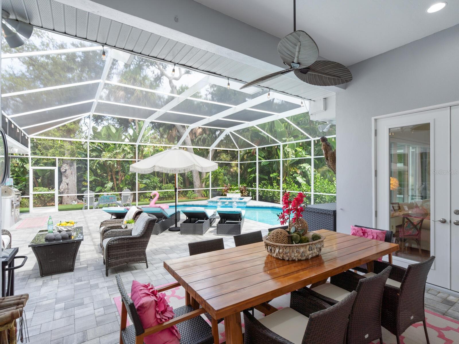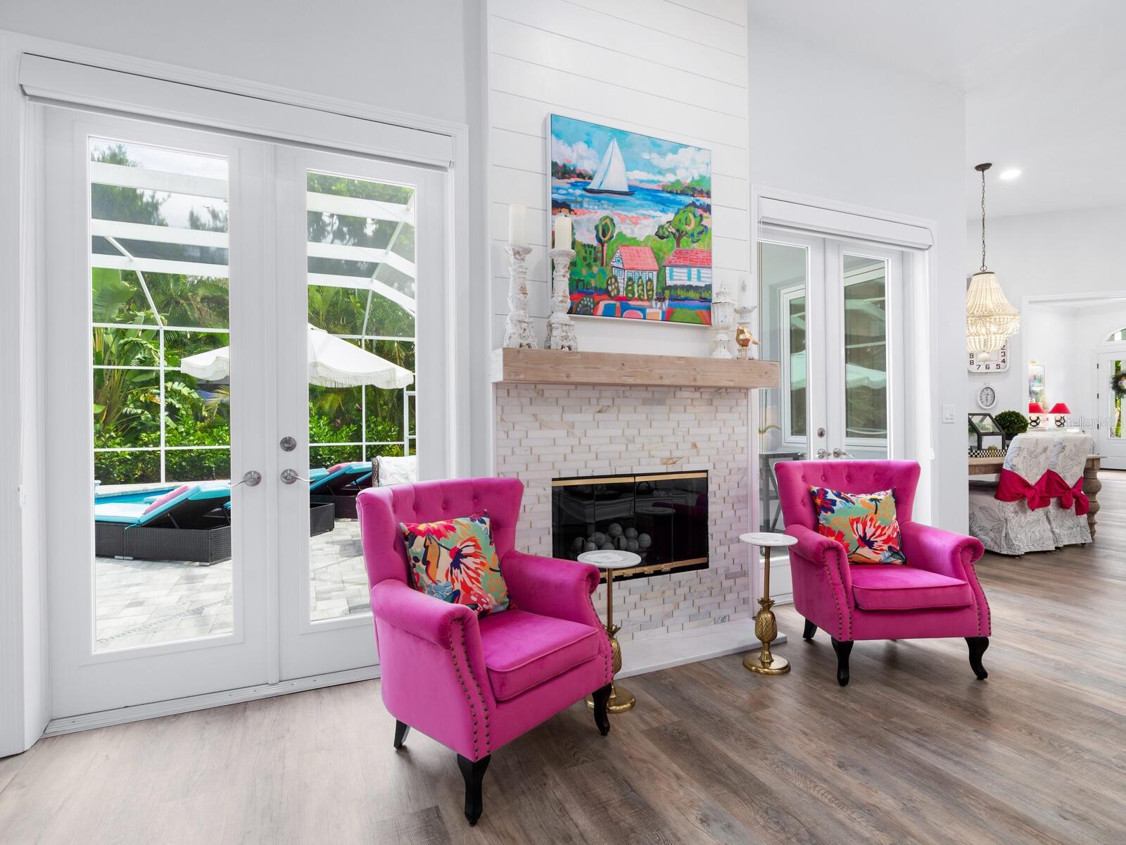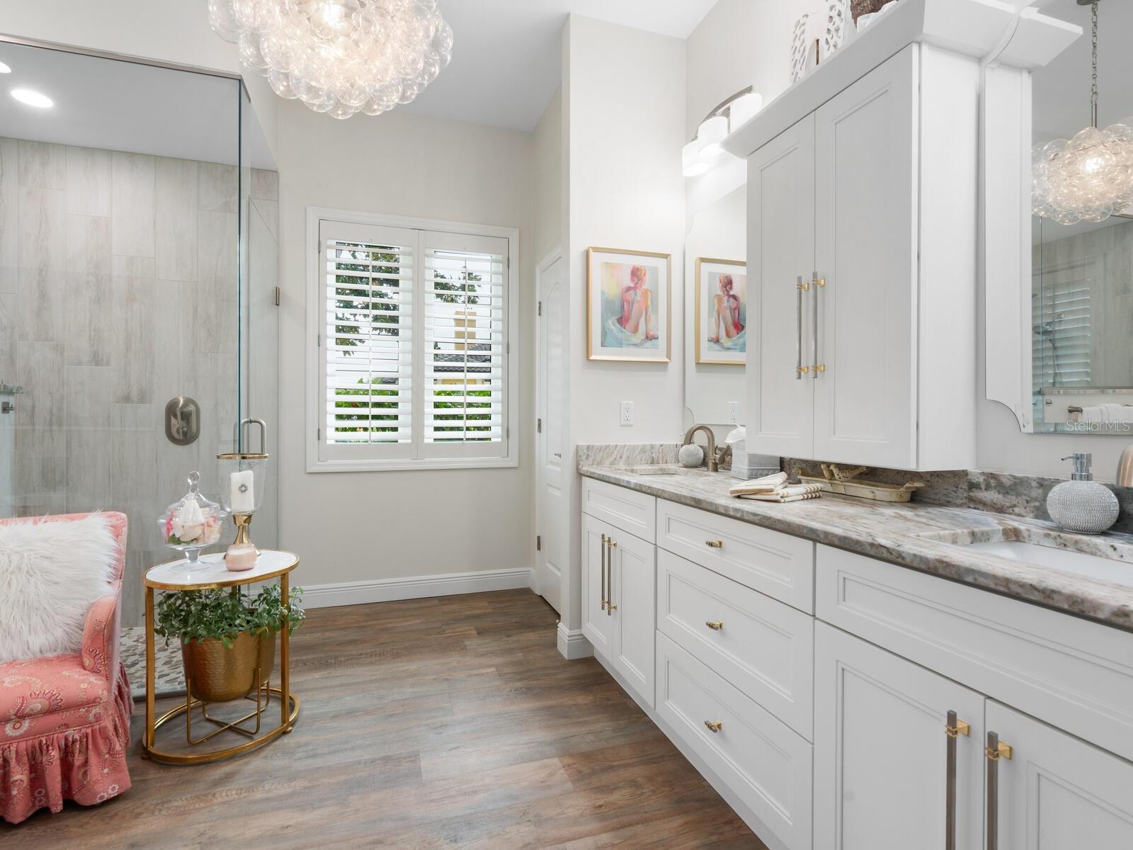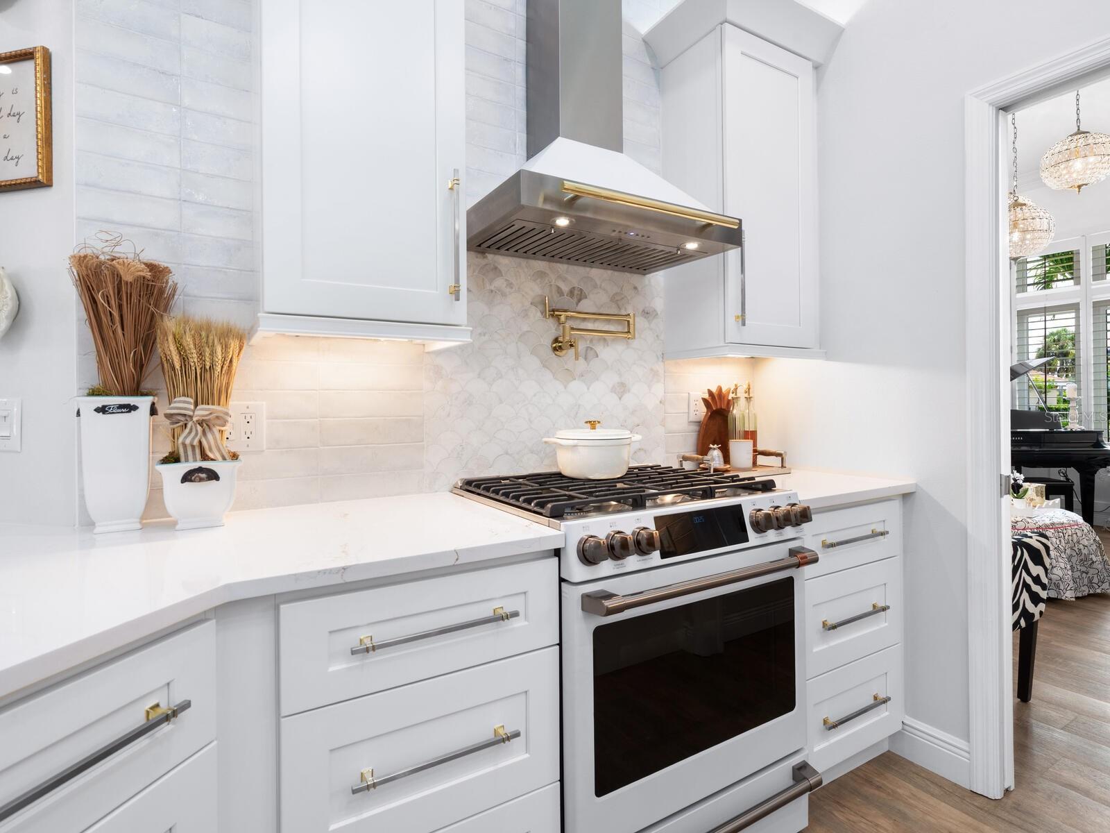 Step into this captivating home, a meticulously renovated open floor plan with soaring ceilings, four spacious bedrooms and three full baths. The perfect home for hosting effortless events, with a gorgeous, formal dining room, complete with a comfortable gathering spot, a sleek bar and French doors that open out to the covered dining area. The home flows effortlessly for indoor and outdoor entertaining. The open concept kitchen overlooks the family room with both a cozy breakfast nook and a large bar that seats six. If you're staying in, the kitchen is equipped with a six-burner gas stove, top-tier appliances, expansive countertops and custom pull-out cabinetry. The butler's pantry makes take-out a breeze and also offers a prep station for holidays and large parties. Stepping into the owners retreat, you will find a sanctuary in the spa-like en suite bath. With private access to the pool, you can grab your coffee at the morning bar and head out for a swim. Snuggle in front of the fireplace or relax in the plush seating area. Meanwhile your guests will love the large in-law suite with a private entrance, alongside two additional bedrooms. Cool off in the stunning pool, completely renovated with a spa, LED lighting and a pavered deck, nestled in a serene, private setting. In the evening, take a walk or a bike ride and explore this beautiful gated community. This fully finished masterpiece is the ultimate move-in ready retreat.