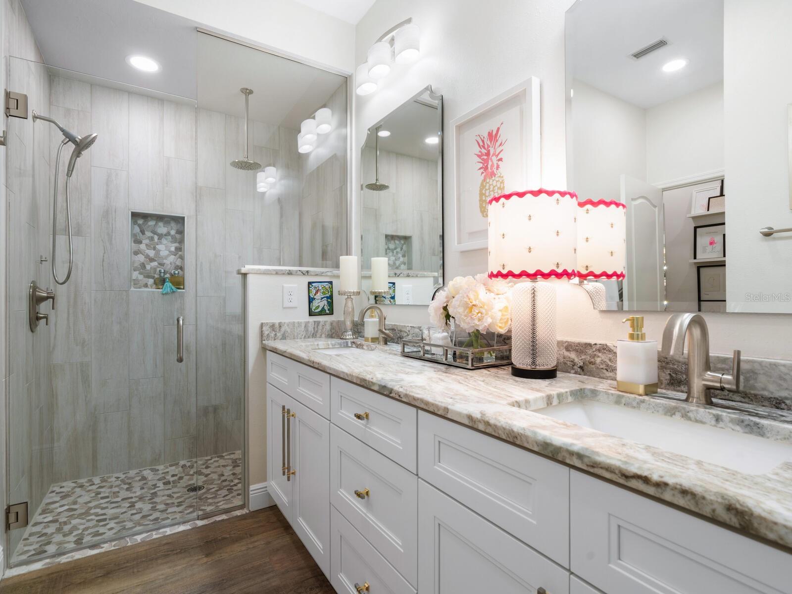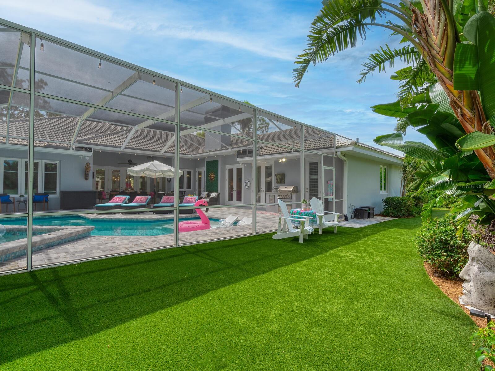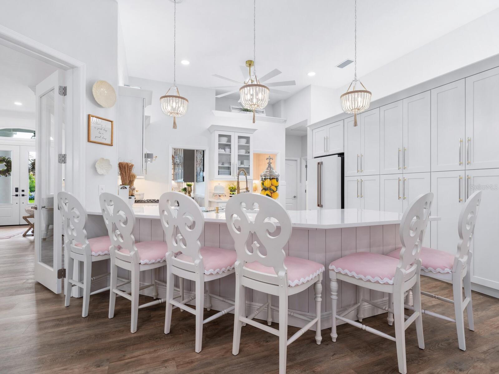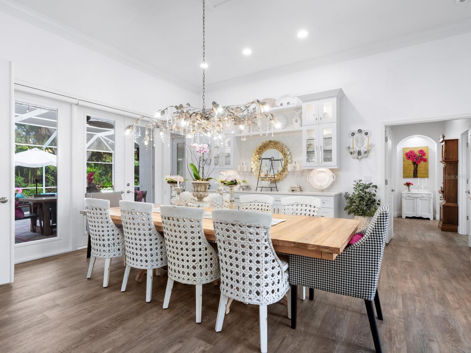 Step into this captivating home, a meticulously renovated open floor plan with soaring ceilings, four spacious bedrooms and three full baths. The perfect home for hosting effortless events, with a gorgeous, formal dining room, complete with a comfortable gathering spot, a sleek bar and French doors that open out to the covered dining area. The home flows effortlessly for indoor and outdoor entertaining. The open concept kitchen overlooks the family room with both a cozy breakfast nook and a large bar that seats six. If you're staying in, the kitchen is equipped with a six-burner gas stove, top-tier appliances, expansive countertops and custom pull-out cabinetry. The butler's pantry makes take-out a breeze and also offers a prep station for holidays and large parties. Stepping into the owners retreat, you will find a sanctuary in the spa-like en suite bath. With private access to the pool, you can grab your coffee at the morning bar and head out for a swim. Snuggle in front of the fireplace or relax in the plush seating area. Meanwhile your guests will love the large in-law suite with a private entrance, alongside two additional bedrooms. Cool off in the stunning pool, completely renovated with a spa, LED lighting and a pavered deck, nestled in a serene, private setting. In the evening, take a walk or a bike ride and explore this beautiful gated community. This fully finished masterpiece is the ultimate move-in ready retreat.