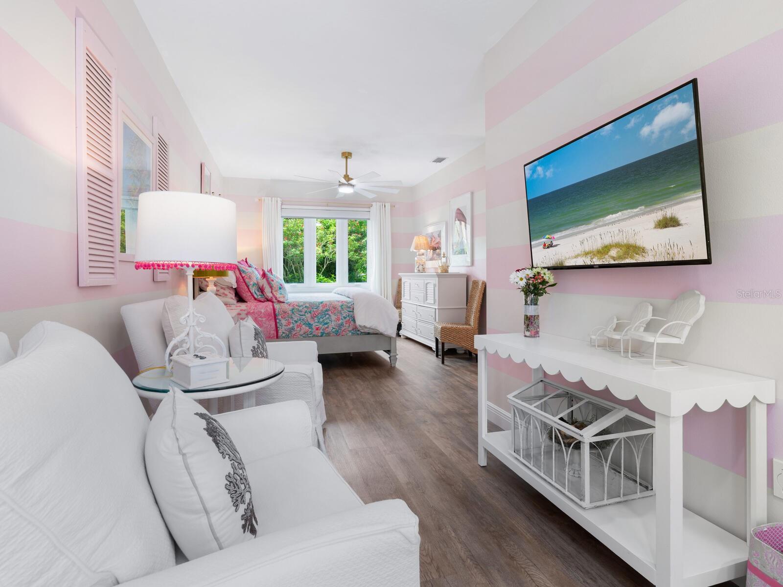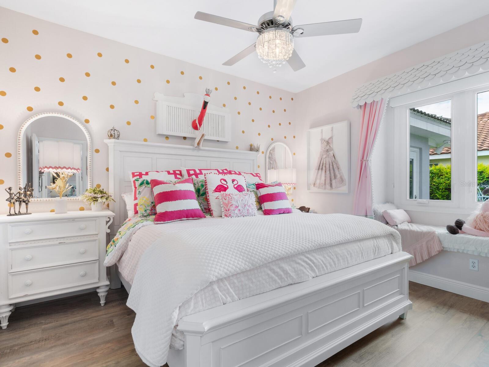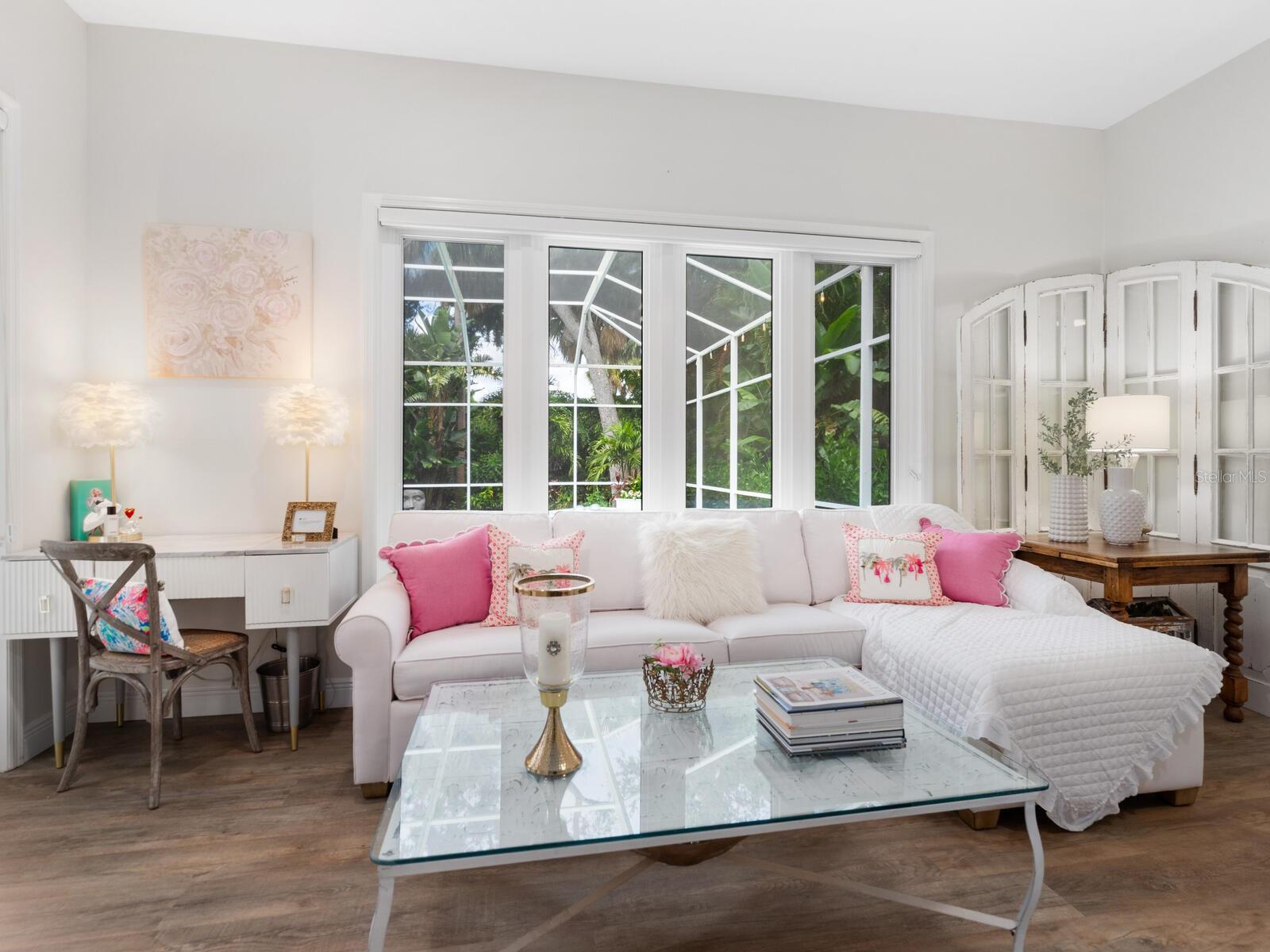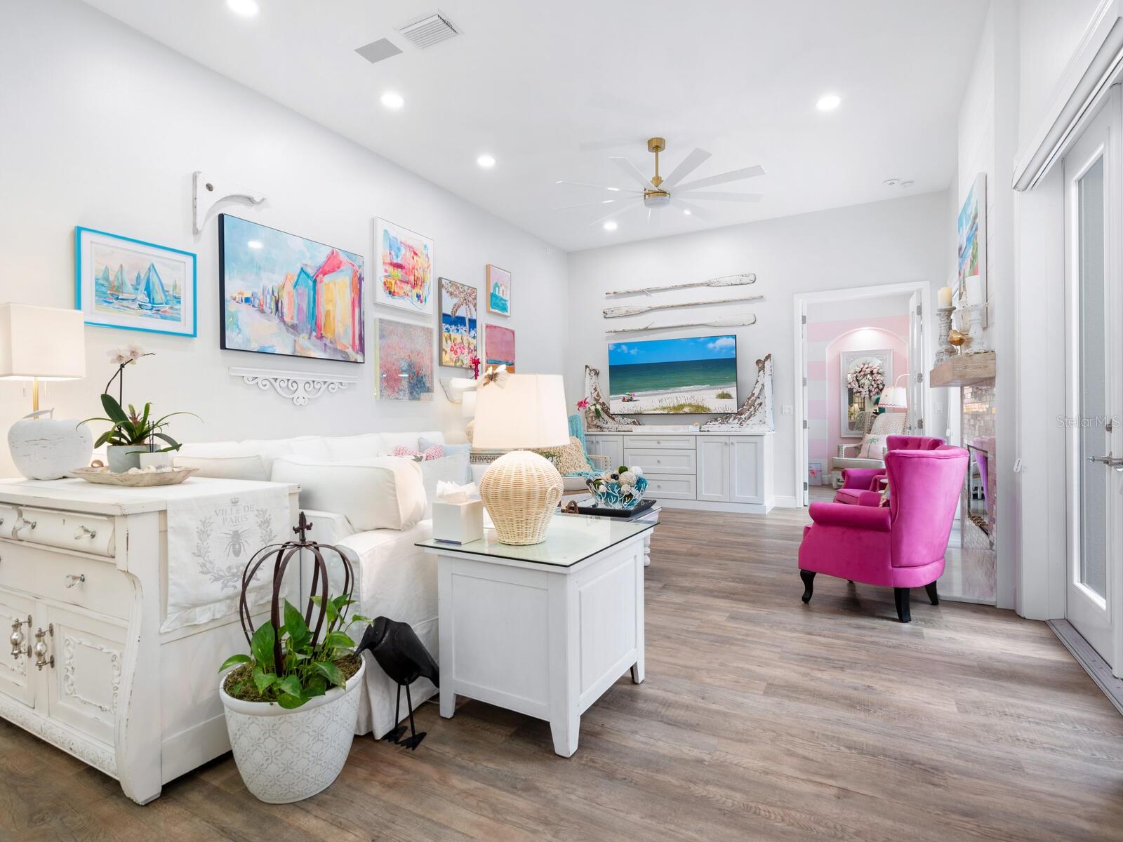 Step into this captivating home, a meticulously renovated open floor plan with soaring ceilings, four spacious bedrooms and three full baths. The perfect home for hosting effortless events, with a gorgeous, formal dining room, complete with a comfortable gathering spot, a sleek bar and French doors that open out to the covered dining area. The home flows effortlessly for indoor and outdoor entertaining. The open concept kitchen overlooks the family room with both a cozy breakfast nook and a large bar that seats six. If you're staying in, the kitchen is equipped with a six-burner gas stove, top-tier appliances, expansive countertops and custom pull-out cabinetry. The butler's pantry makes take-out a breeze and also offers a prep station for holidays and large parties. Stepping into the owners retreat, you will find a sanctuary in the spa-like en suite bath. With private access to the pool, you can grab your coffee at the morning bar and head out for a swim. Snuggle in front of the fireplace or relax in the plush seating area. Meanwhile your guests will love the large in-law suite with a private entrance, alongside two additional bedrooms. Cool off in the stunning pool, completely renovated with a spa, LED lighting and a pavered deck, nestled in a serene, private setting. In the evening, take a walk or a bike ride and explore this beautiful gated community. This fully finished masterpiece is the ultimate move-in ready retreat.
