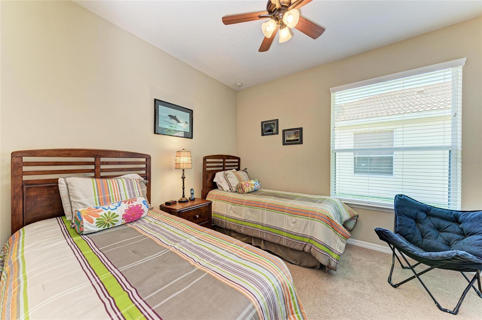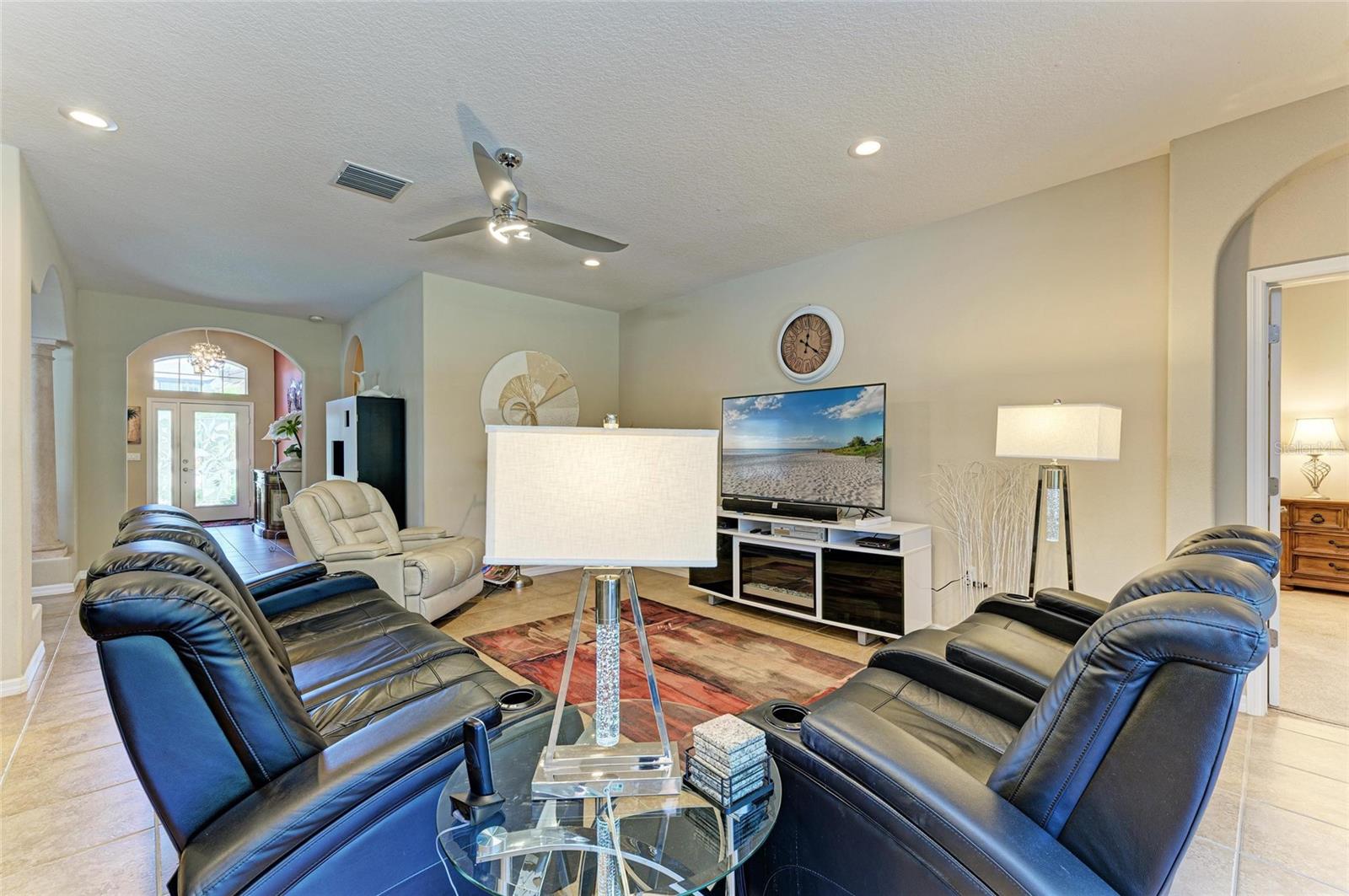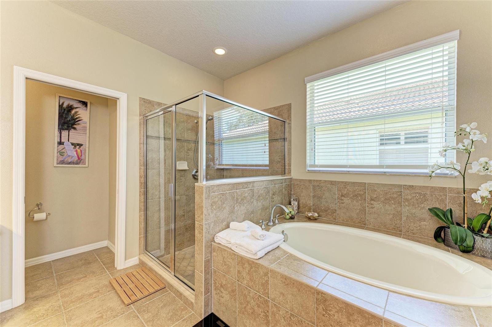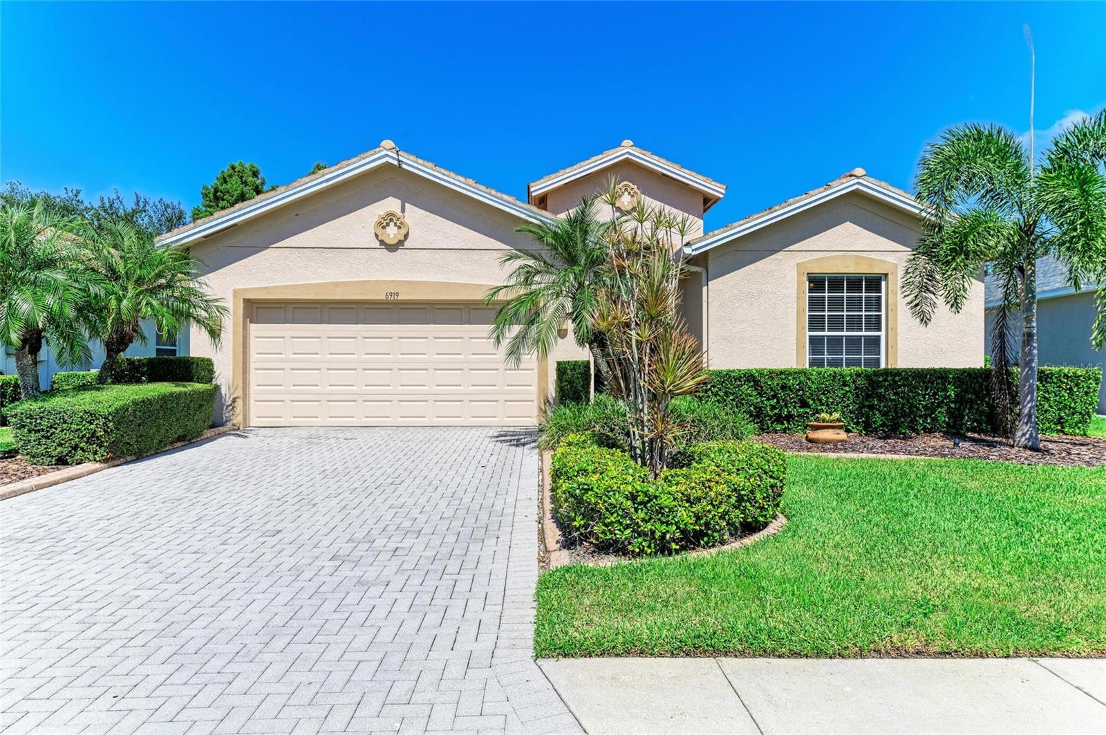 This home has everything you need to live the good life in Paradise! It's also located in a community with low HOA fees!! Imagine having the space to spread out in times of working from home or studying yet have an open concept floor plan to use in times of wanting to gather with family and/or friends. Enjoy entertaining in the spacious eat-in kitchen with plenty of counter space and an elevated breakfast bar. Located to the right of the hallway leading to the main living area, two rooms provide flexible use as additional seating areas, a music room, dining space, office, or other purpose according to your needs. The split floor plan offers privacy for all bedrooms, each with its own bathroom. Your primary suite is in the back of the house with two closets and en-suite with double vanities, soaking tub and separate shower. Take a dip in your private heated saltwater pool with a spa overlooking a pond where you can bird-watch. Some added features are rounded corners on the interior, premium light fixtures, all recessed lighting upgraded to LED, both guest showers updated with sliding glass doors, variable speed pool pump, which saves on electrical costs and there is a generator transfer switch (generator not included). Did I mention location? It's less than 3 miles to I75, multiple dining and shopping located within a few miles, UTC mall is a 10-minute drive and the beaches of Sarasota are approximately 30 minutes away. And with the newly opened bridge on 44th Ave, Lakewood Ranch is just a hop, skip & a jump away! Have a dog? The Creekwood Park with fenced areas for both large and small dogs is less than a mile away and has a playground, pavilion and walking trail. So, what are you waiting for?! Make this your home TODAY!