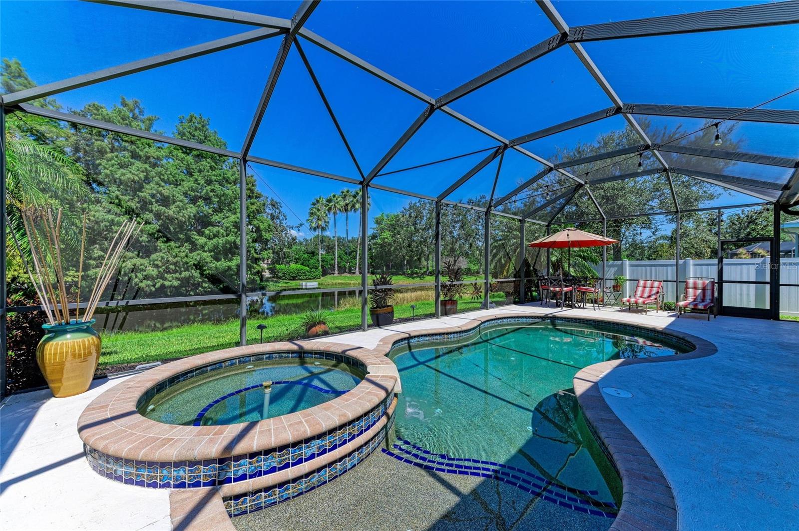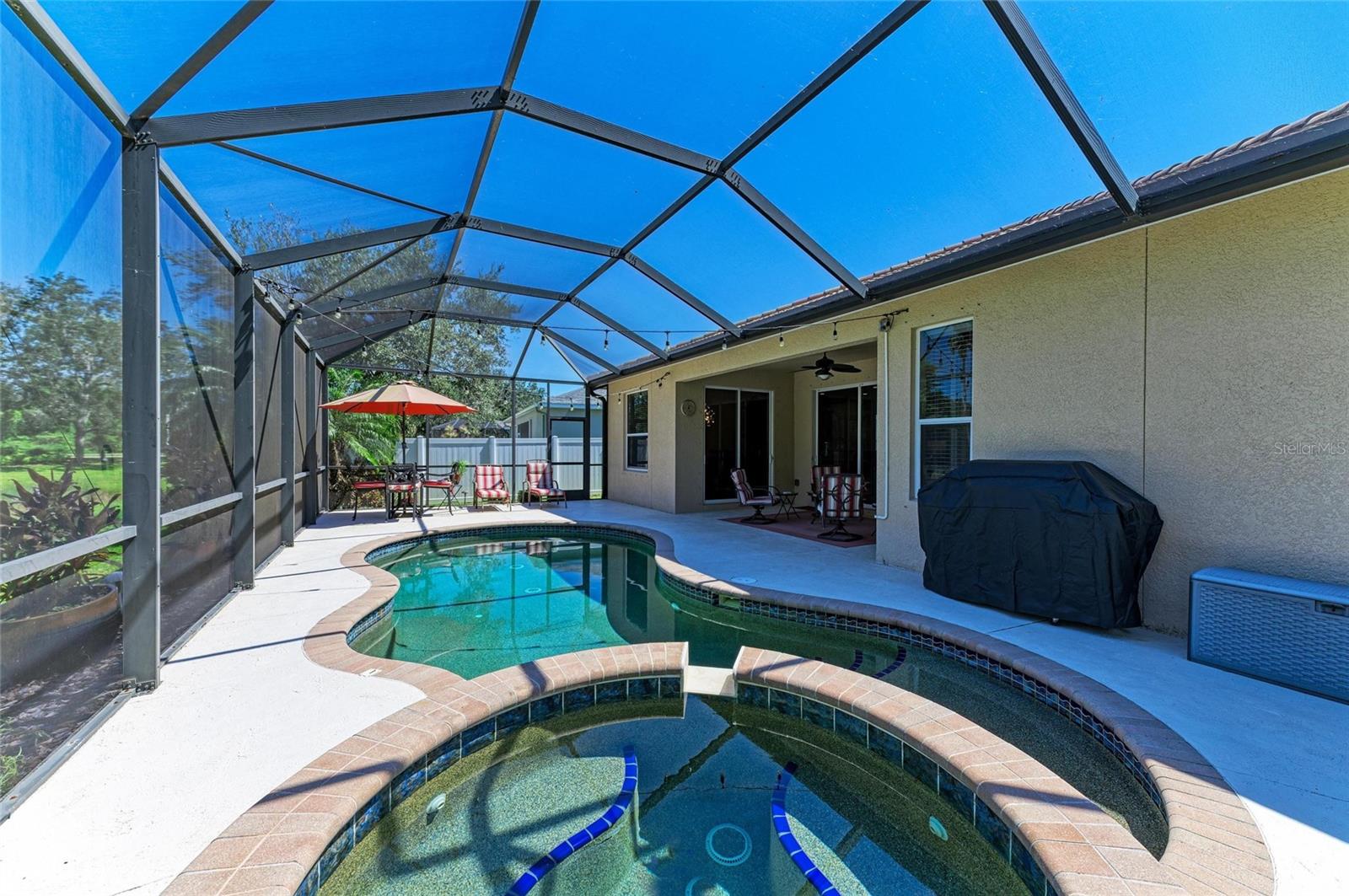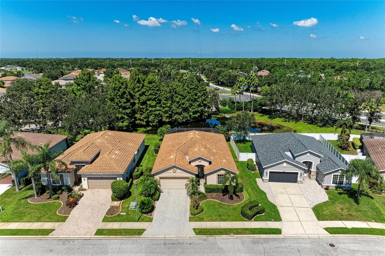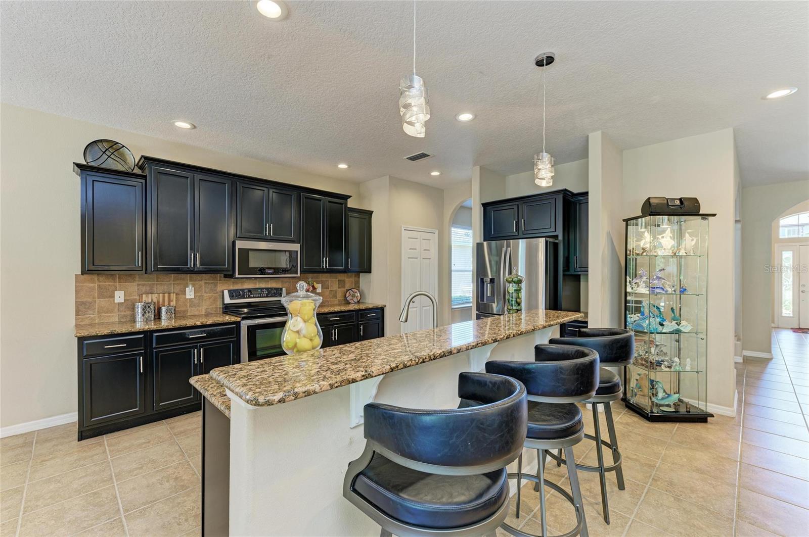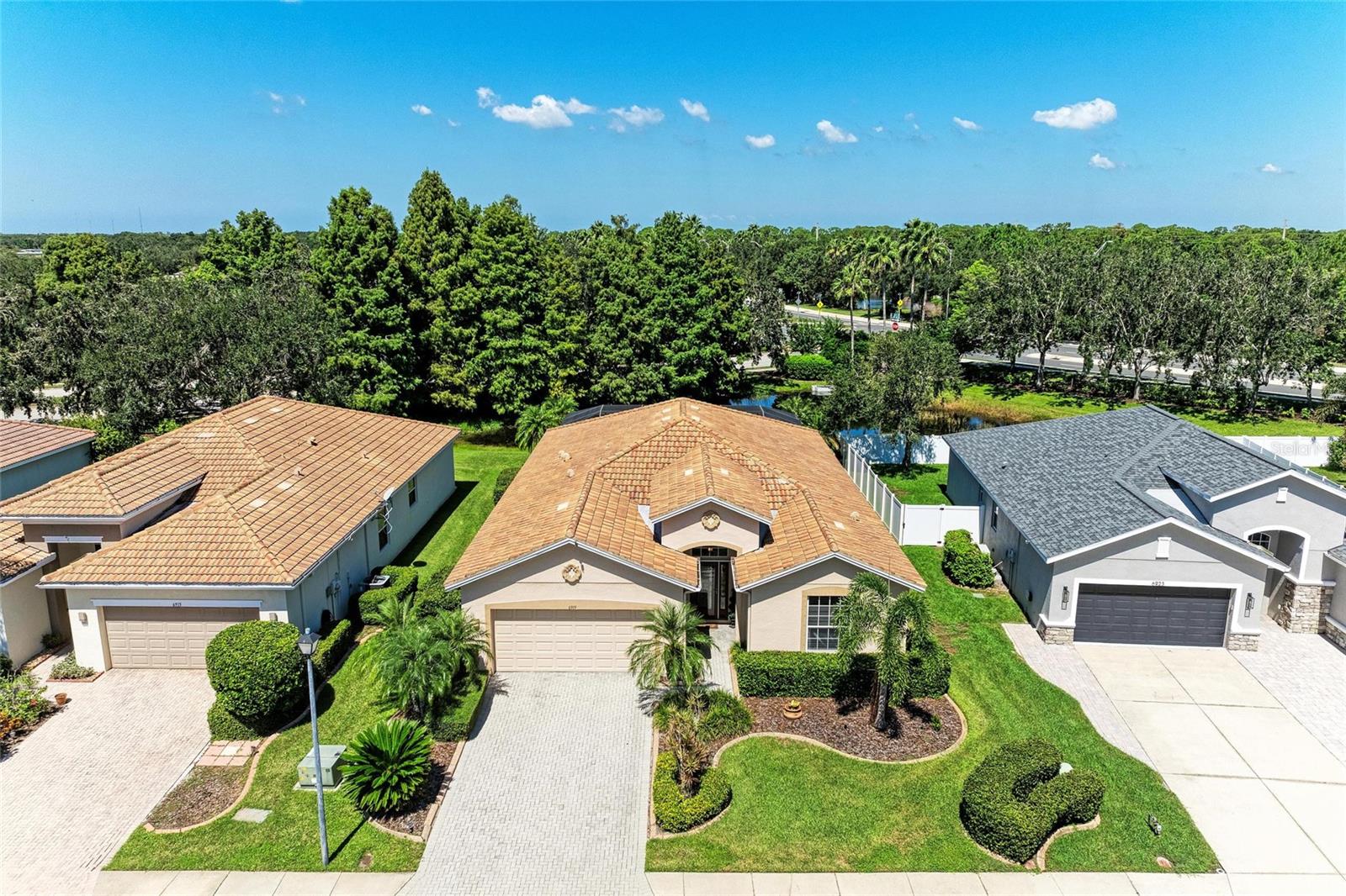 This home has everything you need to live the good life in Paradise! It's also located in a community with low HOA fees!! Imagine having the space to spread out in times of working from home or studying yet have an open concept floor plan to use in times of wanting to gather with family and/or friends. Enjoy entertaining in the spacious eat-in kitchen with plenty of counter space and an elevated breakfast bar. Located to the right of the hallway leading to the main living area, two rooms provide flexible use as additional seating areas, a music room, dining space, office, or other purpose according to your needs. The split floor plan offers privacy for all bedrooms, each with its own bathroom. Your primary suite is in the back of the house with two closets and en-suite with double vanities, soaking tub and separate shower. Take a dip in your private heated saltwater pool with a spa overlooking a pond where you can bird-watch. Some added features are rounded corners on the interior, premium light fixtures, all recessed lighting upgraded to LED, both guest showers updated with sliding glass doors, variable speed pool pump, which saves on electrical costs and there is a generator transfer switch (generator not included). Did I mention location? It's less than 3 miles to I75, multiple dining and shopping located within a few miles, UTC mall is a 10-minute drive and the beaches of Sarasota are approximately 30 minutes away. And with the newly opened bridge on 44th Ave, Lakewood Ranch is just a hop, skip & a jump away! Have a dog? The Creekwood Park with fenced areas for both large and small dogs is less than a mile away and has a playground, pavilion and walking trail. So, what are you waiting for?! Make this your home TODAY!