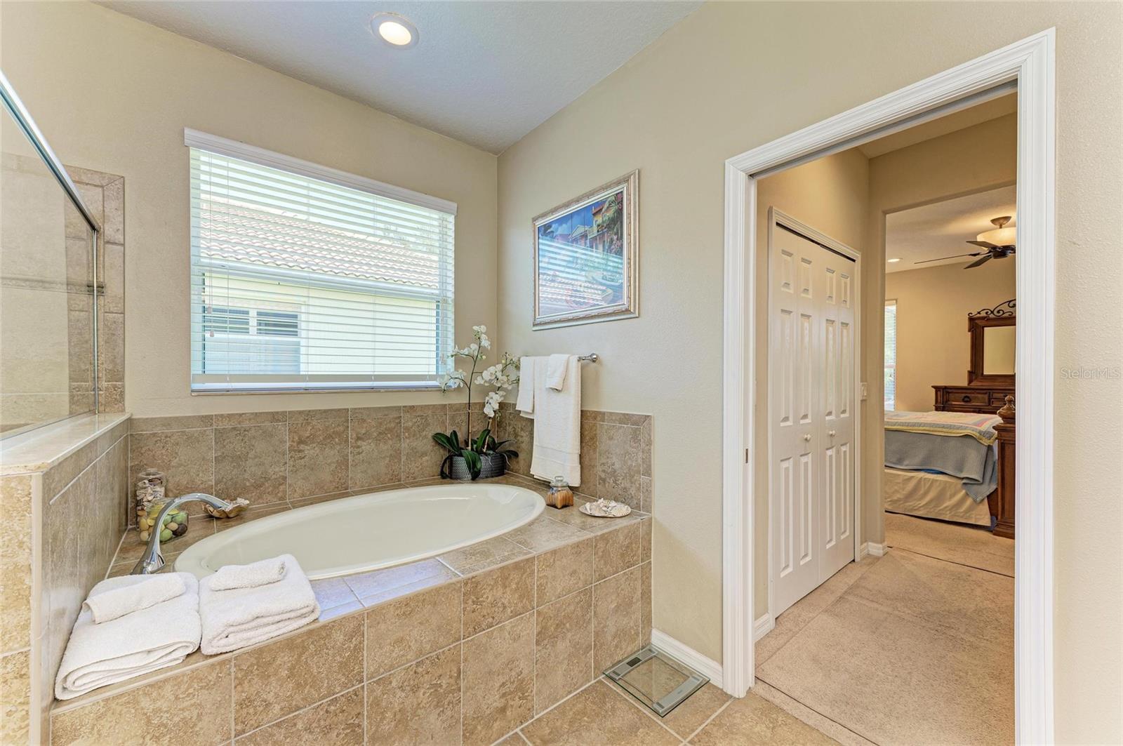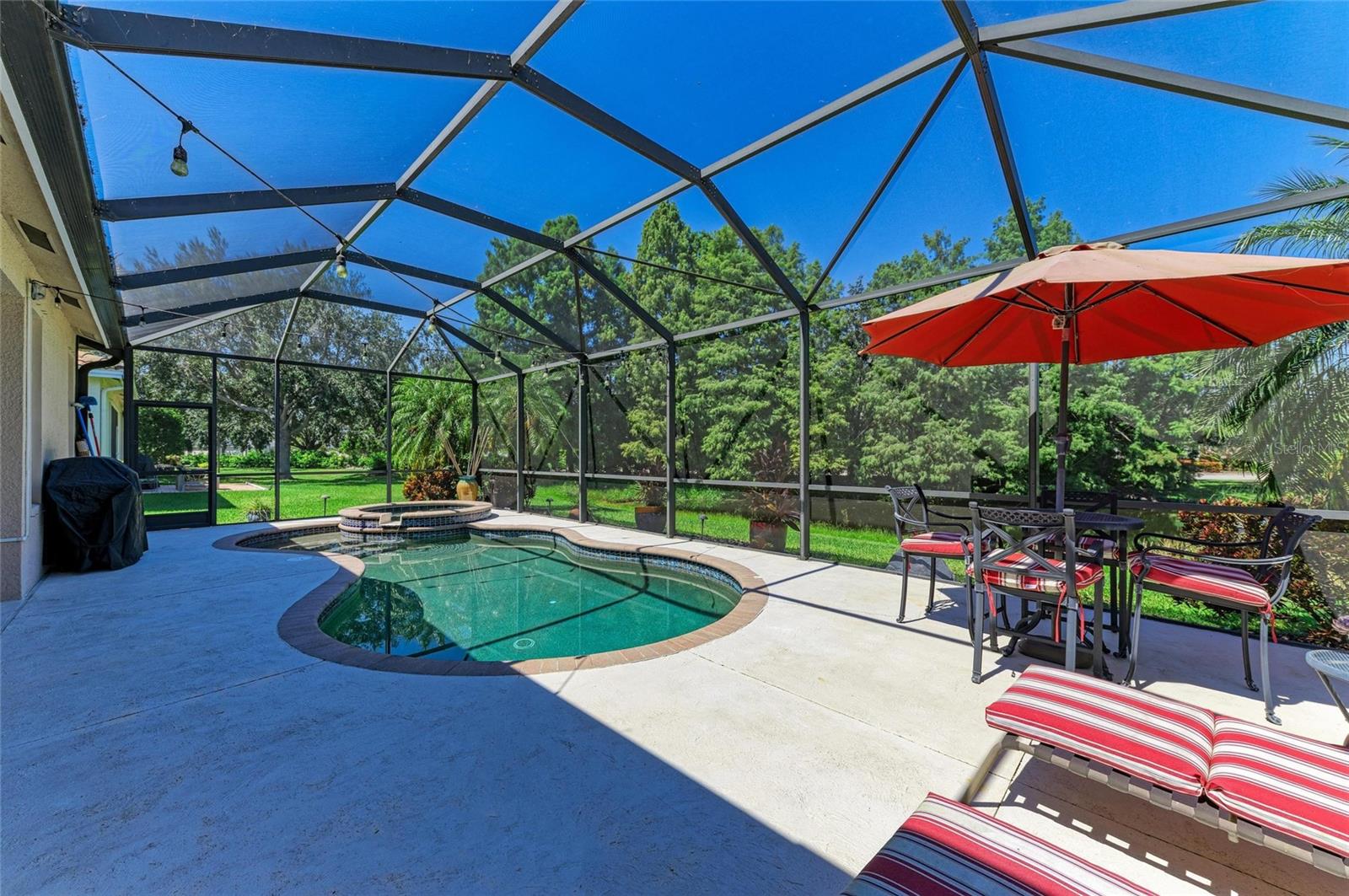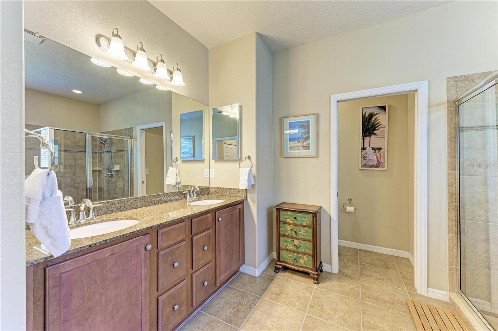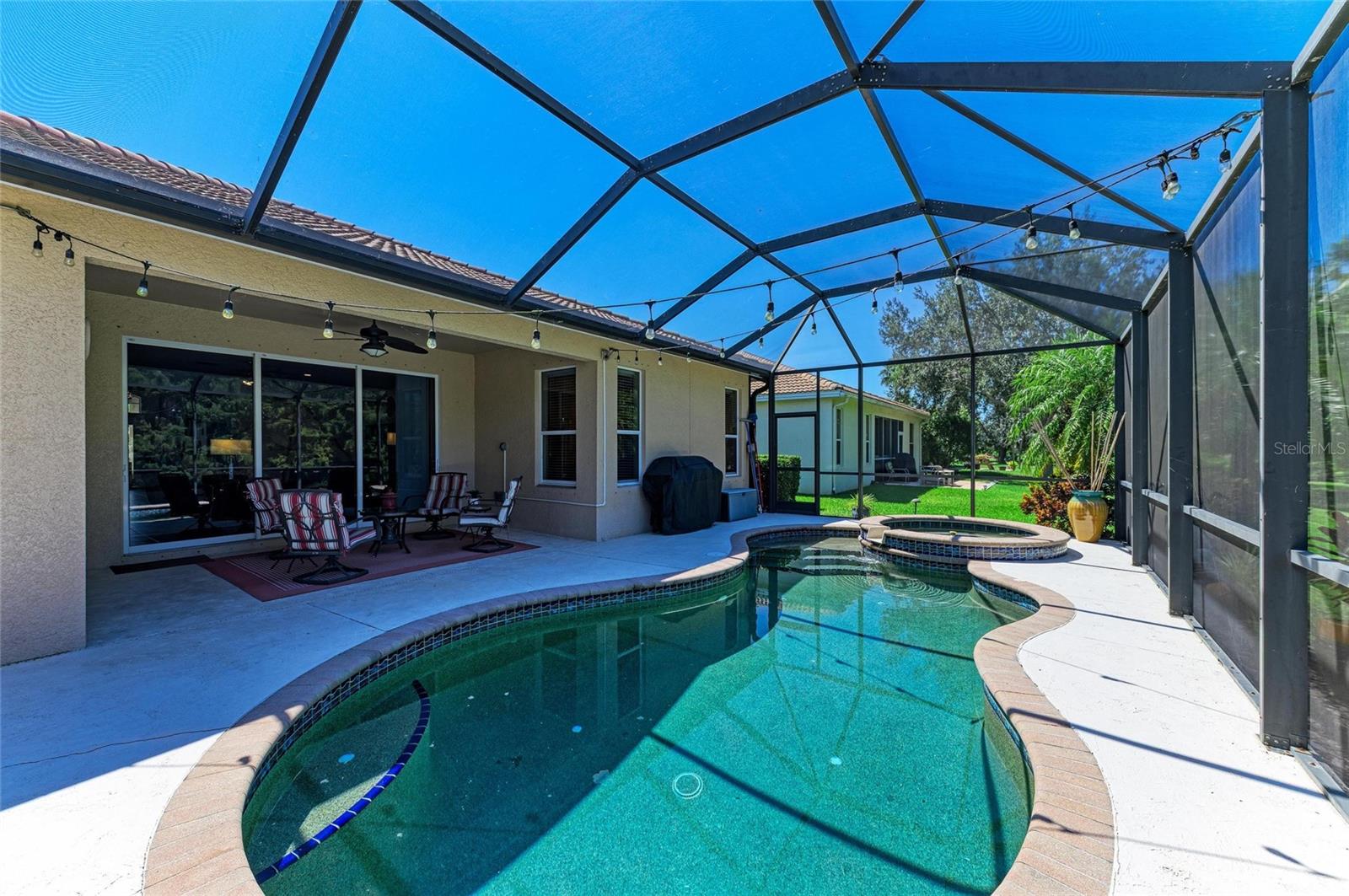 This home has everything you need to live the good life in Paradise! It's also located in a community with low HOA fees!! Imagine having the space to spread out in times of working from home or studying yet have an open concept floor plan to use in times of wanting to gather with family and/or friends. Enjoy entertaining in the spacious eat-in kitchen with plenty of counter space and an elevated breakfast bar. Located to the right of the hallway leading to the main living area, two rooms provide flexible use as additional seating areas, a music room, dining space, office, or other purpose according to your needs. The split floor plan offers privacy for all bedrooms, each with its own bathroom. Your primary suite is in the back of the house with two closets and en-suite with double vanities, soaking tub and separate shower. Take a dip in your private heated saltwater pool with a spa overlooking a pond where you can bird-watch. Some added features are rounded corners on the interior, premium light fixtures, all recessed lighting upgraded to LED, both guest showers updated with sliding glass doors, variable speed pool pump, which saves on electrical costs and there is a generator transfer switch (generator not included). Did I mention location? It's less than 3 miles to I75, multiple dining and shopping located within a few miles, UTC mall is a 10-minute drive and the beaches of Sarasota are approximately 30 minutes away. And with the newly opened bridge on 44th Ave, Lakewood Ranch is just a hop, skip & a jump away! Have a dog? The Creekwood Park with fenced areas for both large and small dogs is less than a mile away and has a playground, pavilion and walking trail. So, what are you waiting for?! Make this your home TODAY!
