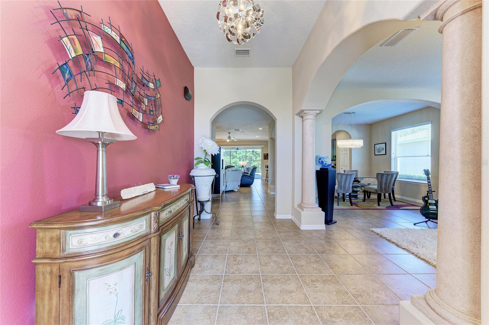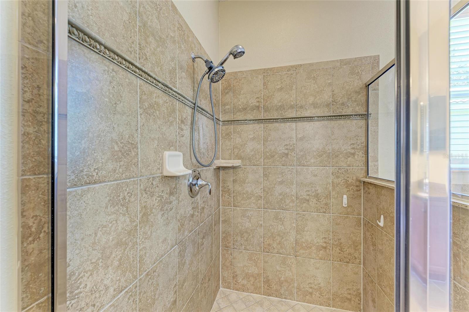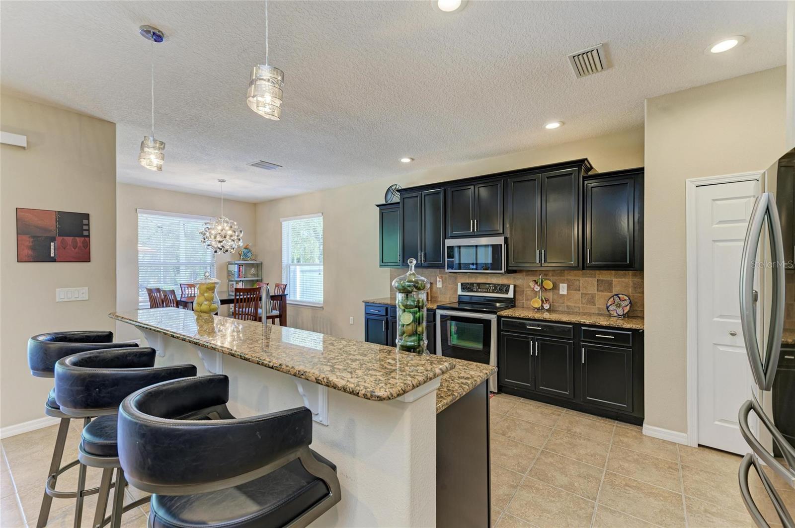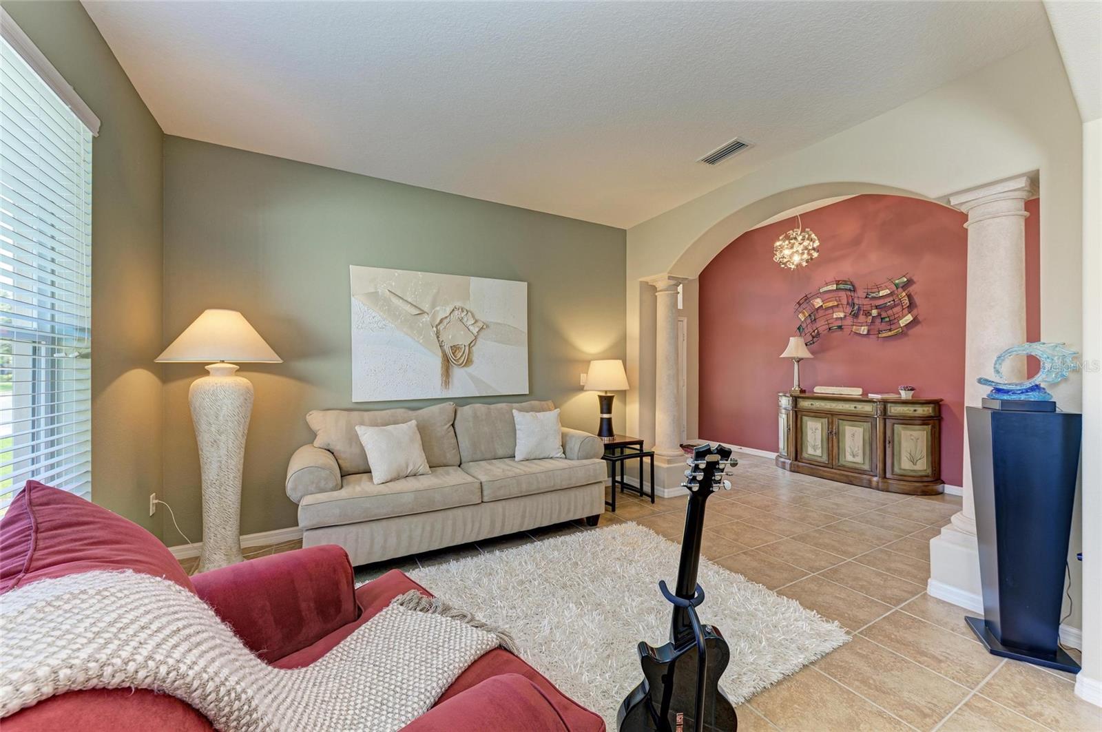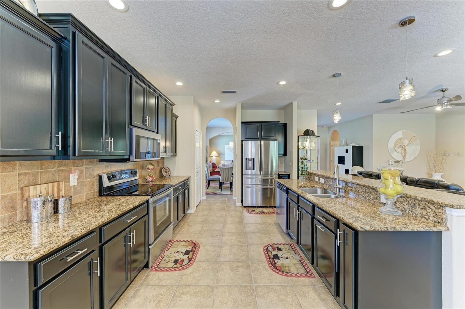 This home has everything you need to live the good life in Paradise! It's also located in a community with low HOA fees!! Imagine having the space to spread out in times of working from home or studying yet have an open concept floor plan to use in times of wanting to gather with family and/or friends. Enjoy entertaining in the spacious eat-in kitchen with plenty of counter space and an elevated breakfast bar. Located to the right of the hallway leading to the main living area, two rooms provide flexible use as additional seating areas, a music room, dining space, office, or other purpose according to your needs. The split floor plan offers privacy for all bedrooms, each with its own bathroom. Your primary suite is in the back of the house with two closets and en-suite with double vanities, soaking tub and separate shower. Take a dip in your private heated saltwater pool with a spa overlooking a pond where you can bird-watch. Some added features are rounded corners on the interior, premium light fixtures, all recessed lighting upgraded to LED, both guest showers updated with sliding glass doors, variable speed pool pump, which saves on electrical costs and there is a generator transfer switch (generator not included). Did I mention location? It's less than 3 miles to I75, multiple dining and shopping located within a few miles, UTC mall is a 10-minute drive and the beaches of Sarasota are approximately 30 minutes away. And with the newly opened bridge on 44th Ave, Lakewood Ranch is just a hop, skip & a jump away! Have a dog? The Creekwood Park with fenced areas for both large and small dogs is less than a mile away and has a playground, pavilion and walking trail. So, what are you waiting for?! Make this your home TODAY!