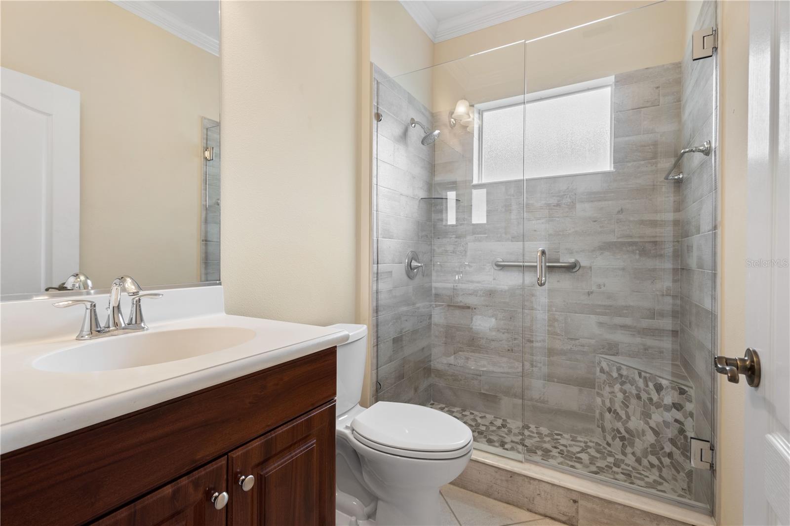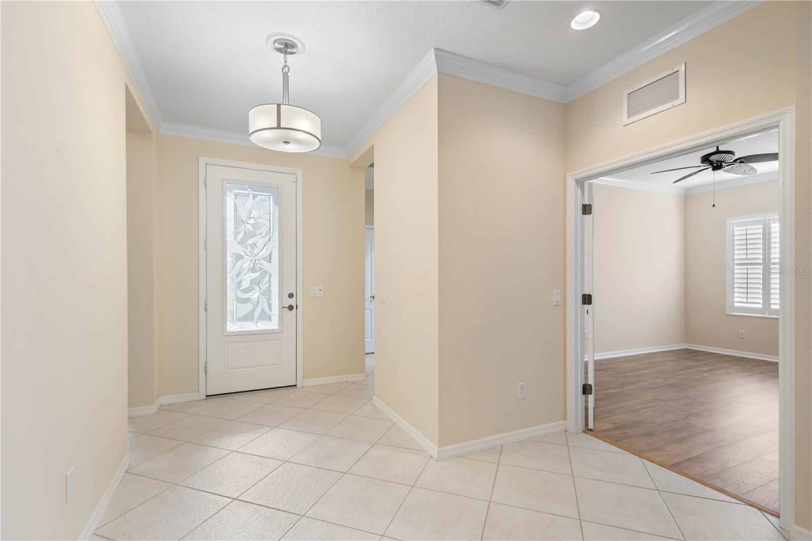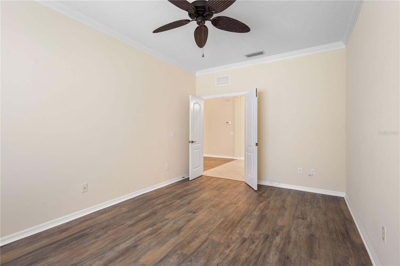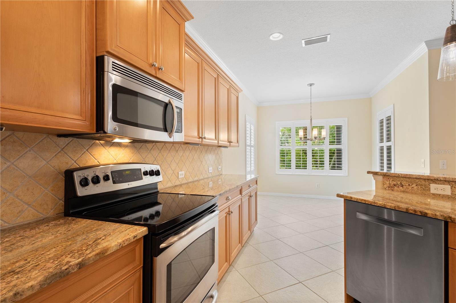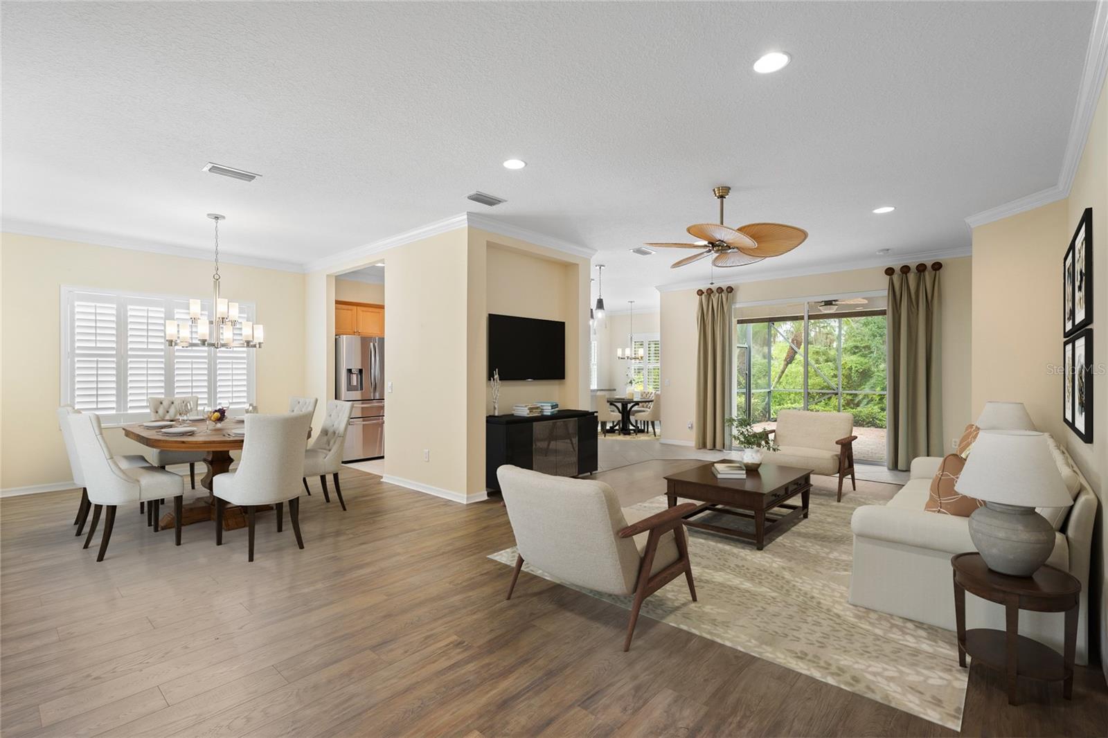 One or more photo(s) has been virtually staged. Tucked within the gated community of Forest Creek, this 3 bedroom, 2 bathroom plus a den home is perfectly situated on a peaceful preserve, offering serene views and a private backdrop for everyday living. As you step inside, you'll notice the thoughtful layout featuring updated luxury vinyl plank flooring, crown molding, plantation shutters, and an abundance of natural light . From there, the home flows seamlessly into the living room where you'll notice the formal dining room, and spacious kitchen that is designed for both style and functionality with granite countertops, a tasteful tile backsplash, plenty of cabinetry, plus a bright breakfast nook that looks out toward the preserve. The primary suite serves as a quiet retreat, while two additional bedrooms share a guet bathroom with a beautifully updated walk-in shower. Your very own private oasis awaits as you step outside to the extended lanai, complete with a hurricane-rated roll-down screen and tranquil views--perfect for coffee in the morning or entertaining in the evening. Recent updates include a newer roof (November 2024) and A/C system (2023), both with transferrable warranties. This lovely Florida Costal inspired home combines modern upgrades with peace of mind. With low HOA fees and plenty of amenities such as a pool, clubhouse, walking trails, and scenic lakes, all in a location convenient to shopping, dining, and I-75.