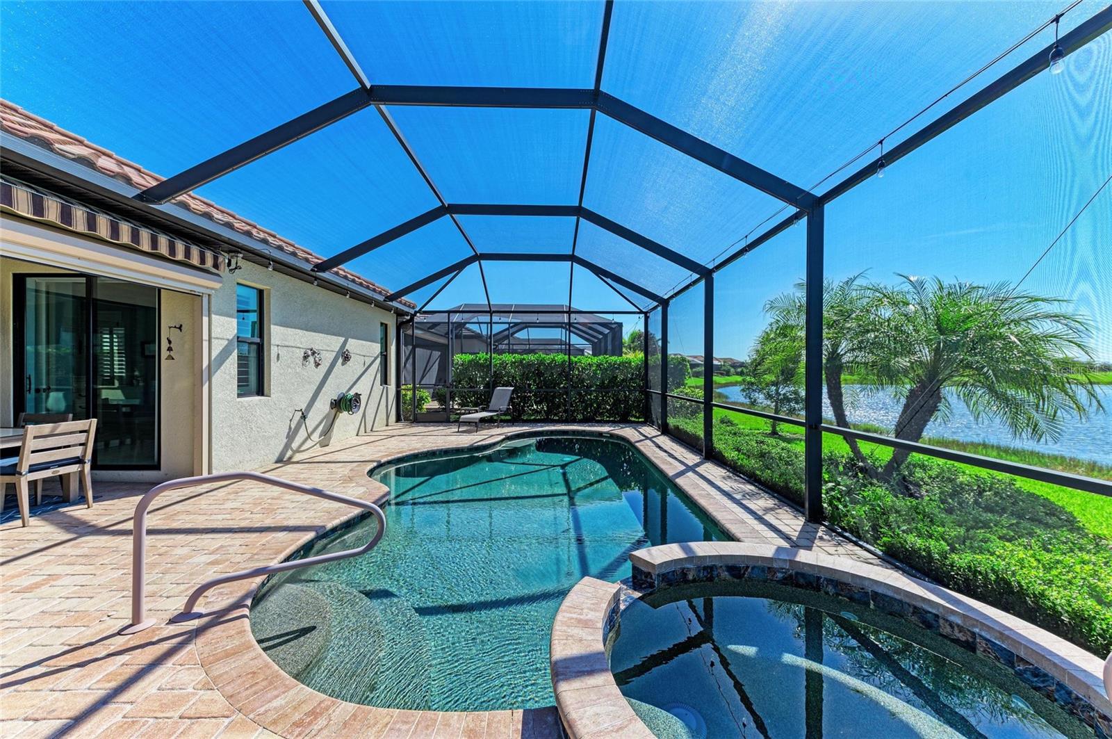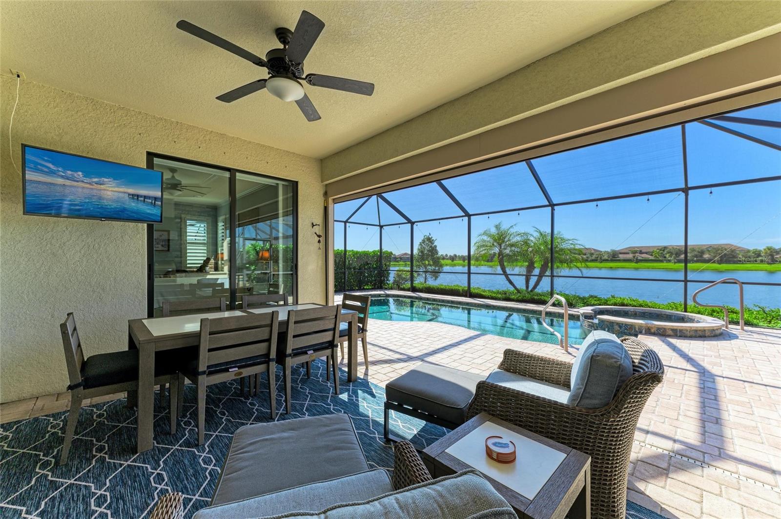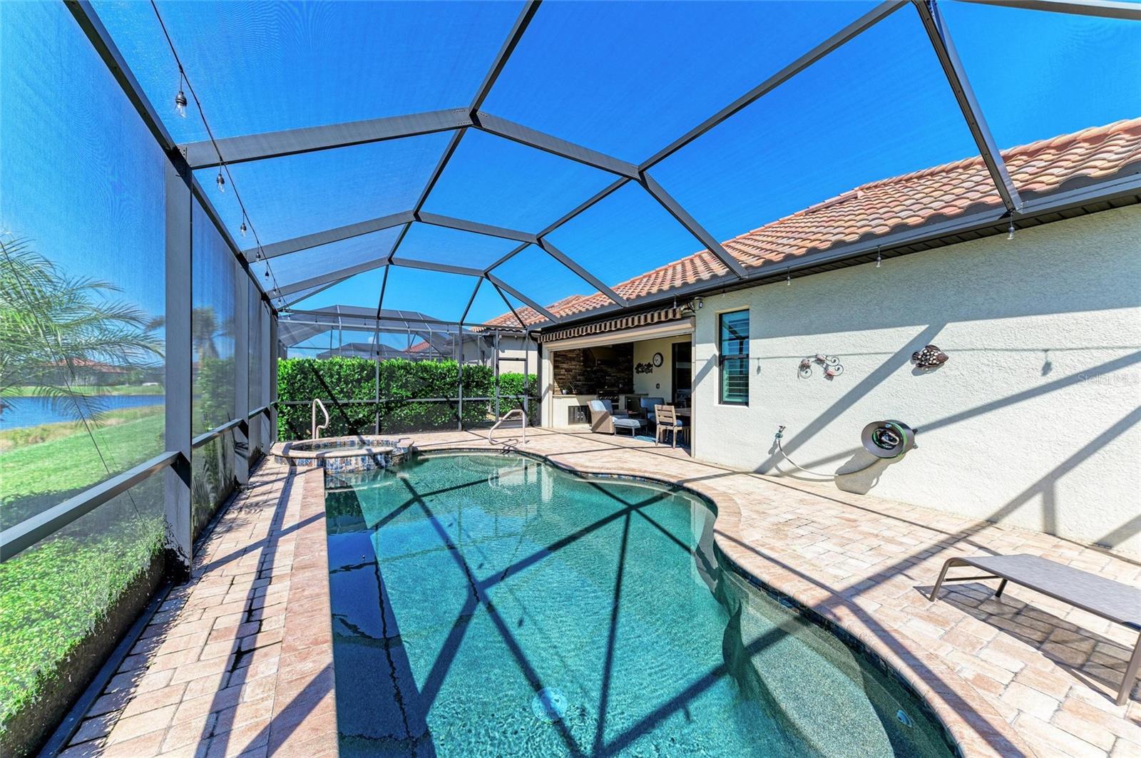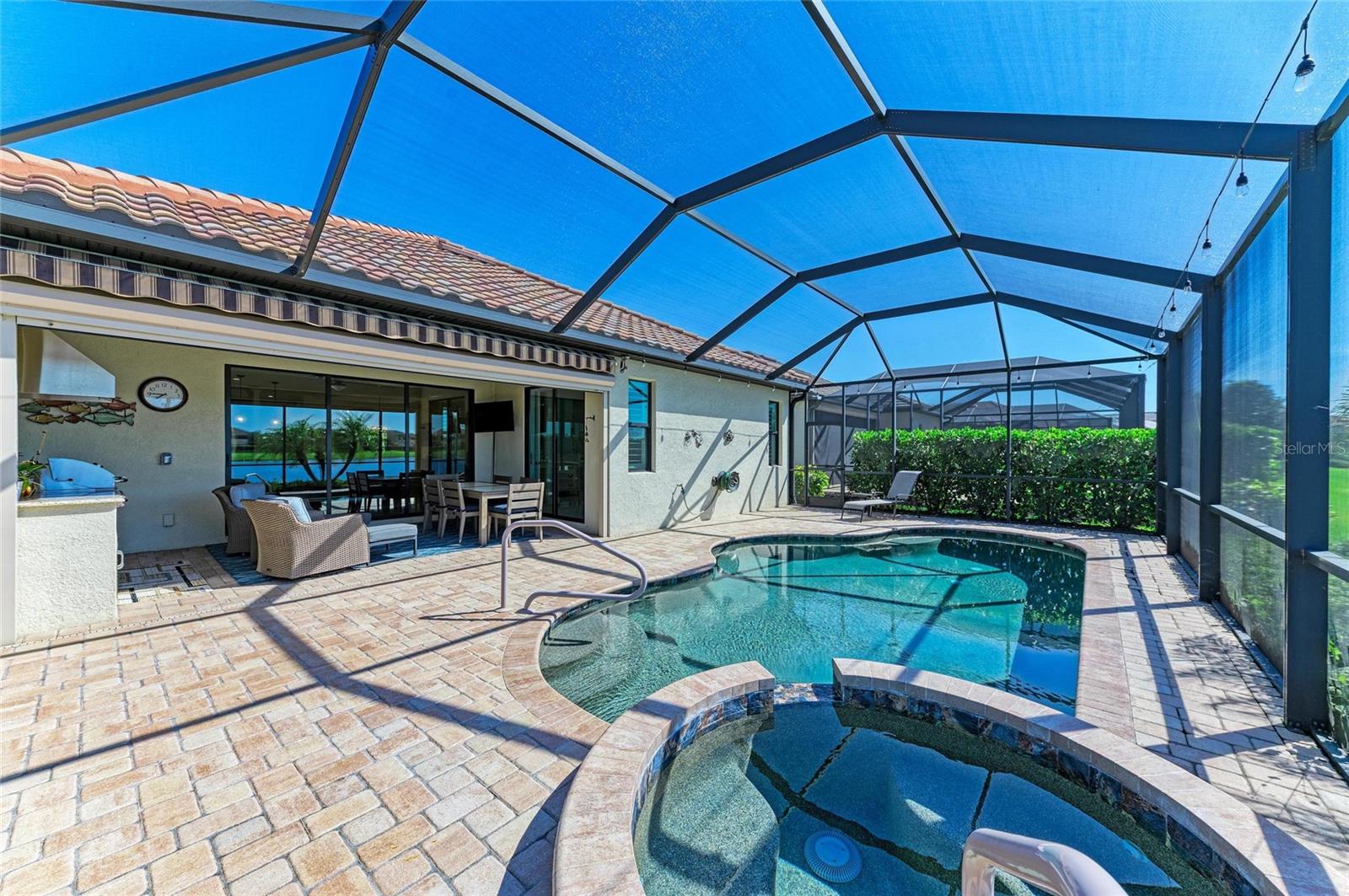 Located in the spectacular gated golf community of Lakewood National Golf Club in Lakewood Ranch, this four-bedroom, two-bath Isabella floor plan offers a seamless blend of comfort and elegance with lakefront views and resort-style amenities. Spanning 2,248 square feet of interior space, the residence presents an open concept layout where the great room, dining area, and kitchen flow naturally toward the south-facing lanai and private pool/spa. The primary bedroom features blackout blinds, a built-out closet, and an en-suite bath with a shower seat and glass enclosure. Additional highlights include built-in desks, bookcases, custom shelving, new LED lighting and upgraded ceiling fans throughout, and a two-car garage with an epoxy-coated garage floor and overhead storage. The outdoor living area is designed for entertaining with a summer kitchen, caf lighting, television, power sun awning, and a retractable hurricane screen. Enhanced exterior features include a screened front entry, new landscaping, and updated gutters. Lakewood National Golf Club enjoys deeded golf membership giving owners the ability to play 36 holes of championship golf year-round. The Commander course at Lakewood National Golf Club was named No. 1 Golfers' Choice and No. 1 Top Course in Florida by Golf Advisor. Enjoy maintenance-free living with extraordinary amenities that include a zero-entry heated pool with cascading waterfalls and lap lanes, poolside tiki bar and caf, fitness center with group exercise classes, an on-site full-service spa, eight lighted Har-Tru tennis courts, bocce, pickleball, several satellite pools, and a stunning 28,000-square-foot clubhouse which offers fine and casual dining, an expansive bar and lounge, men's and ladies lounges and locker rooms, conference and meeting space, a full-time lifestyle director who keeps residents' social life fun and active with trivia night, karaoke night, live concerts on the green, extravagant holiday parties, wine-tasting dinners and more. Lakewood National Golf Club hosts the annual Korn Ferry Tour's LECOM Suncoast Classic. Schedule your private showing today, move-in ready and flexible terms. and dining. A rare opportunity to own in one of Lakewood Ranch's premier golf communities.