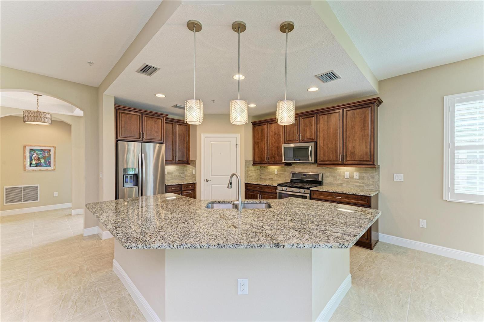 Welcome to refined living in the prestigious gated golf community of Country Club East at Lakewood Ranch, where timeless elegance meets modern convenience. This immaculate three-bedroom, two-bathroom end-unit condo offers a rare combination of privacy, upscale finishes, and effortless access to world-class amenities. Situated on the ground floor and framed by a tranquil pond view, this residence delivers the serene Florida lifestyle that discerning buyers seek.From the moment you step inside, the thoughtful upgrades and design details are evident. The kitchen is the true heart of the home, featuring upgraded cabinetry with crown molding, under-cabinet lighting, and convenient pullout drawers. Solid-surface countertops and stainless-steel appliances create a seamless balance of style and function, while the open layout connects effortlessly to the great room, breakfast nook, and dining area. Ceiling details in the kitchen, dining room, and primary suite add a touch of architectural sophistication that elevates every gathering.The primary suite is a private retreat, complete with a spa-inspired bathroom showcasing raised cabinetry with additional storage, luxury plumbing fixtures, upgraded lighting, a full-width mirror, and a spacious walk-in shower. Secondary bedrooms are well-sized for guests or a home office, ensuring flexibility for today's lifestyle. A large utility room with upgraded cabinetry, a laundry sink, and a premium washer and dryer adds everyday convenience.Perfect for year-round indoor-outdoor living, the expansive covered and screened lanai is ideal for morning coffee, quiet evenings, or entertaining friends while enjoying the pond's scenic backdrop. A two-car garage provides additional storage and peace of mind.Just a short walk from your front door, The Lodge serves as the community's social hub, complete with a full bar and restaurant and tennis courts. Residents can have access to state-of-the-art fitness center, and a resort-style swimming pool. Within minutes, residents enjoy everything Lakewood Ranch is celebrated for: vibrant downtown dining and entertainment, boutique shopping, medical facilities, top-rated schools, and convenient access to I-75. For those seeking culture and leisure, Downtown Sarasota is a short drive away, offering theaters, art galleries, and fine dining. And when it's time to unwind by the water, the world-renowned Gulf beaches--including Siesta Key, Lido Key, and Anna Maria Island--await less than 35 minutes from home.Whether as a full-time residence or a seasonal retreat, this condo provides the ideal blend of comfort, luxury, and location. Every detail has been carefully curated to create a residence that lives as beautifully as it looks.Discover the best of Lakewood Ranch living in this exceptional Country Club East condo--where elegance, amenities, and lifestyle come together in perfect harmony.