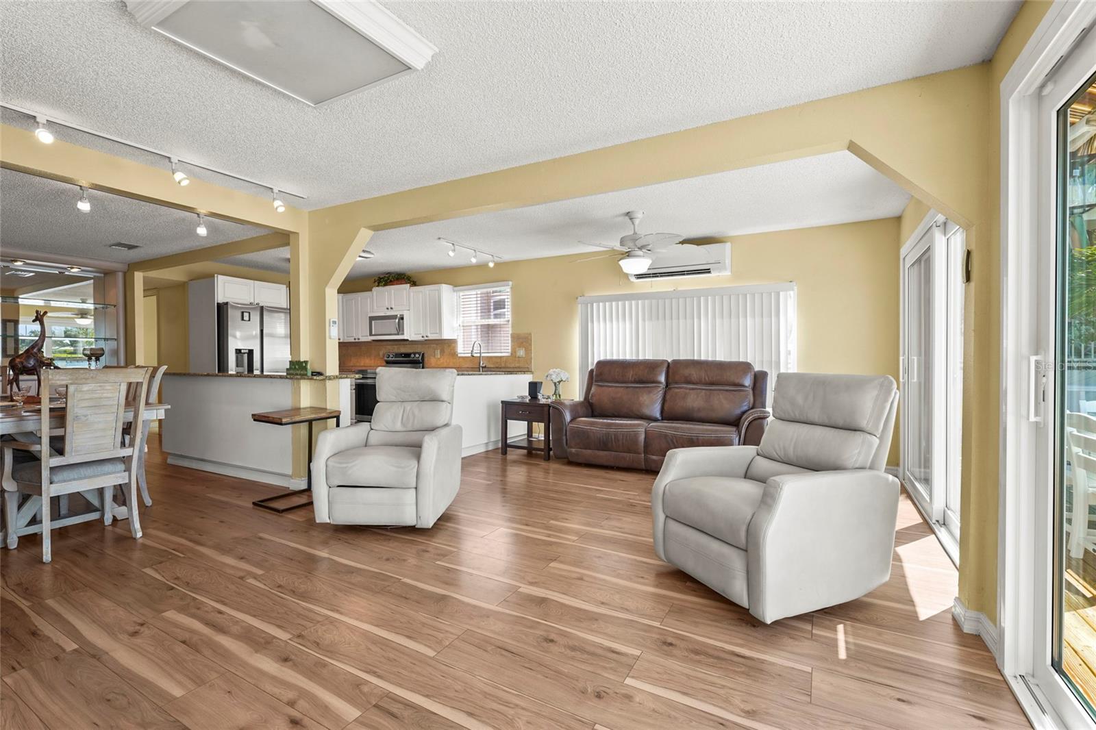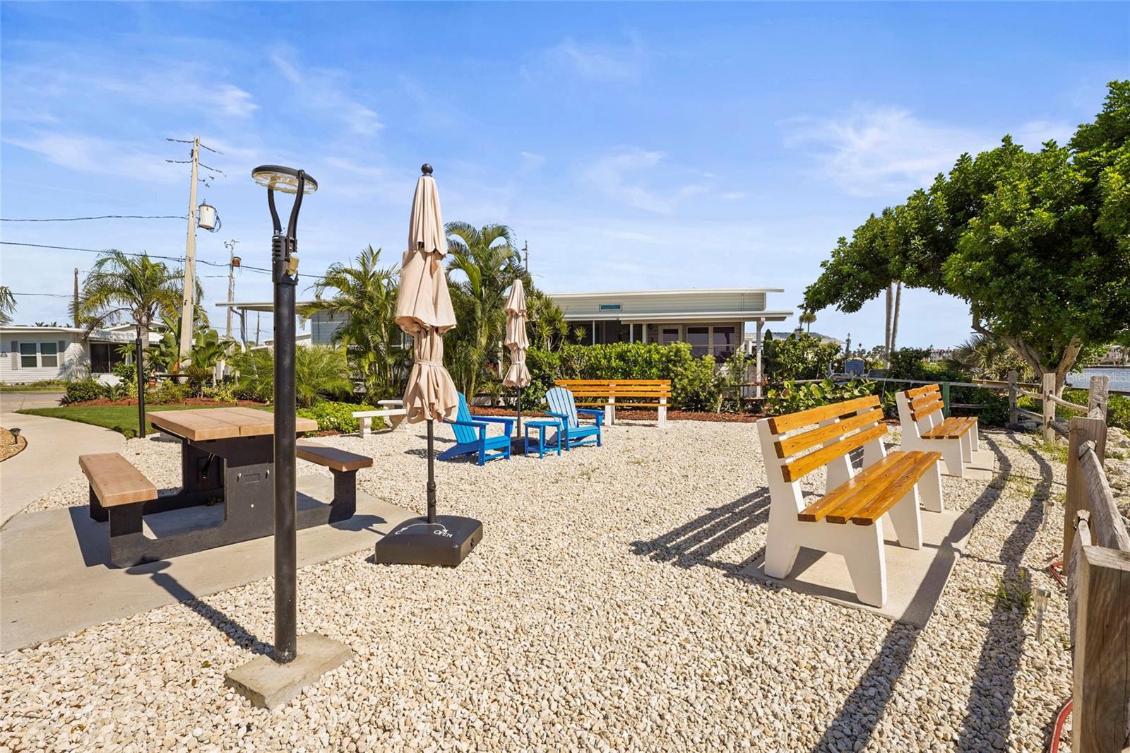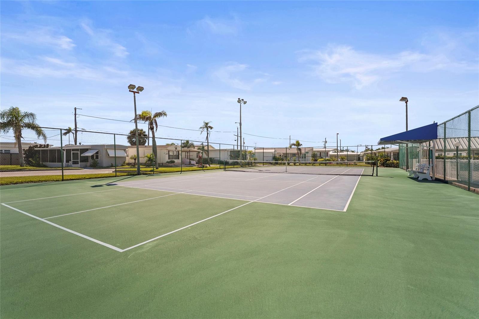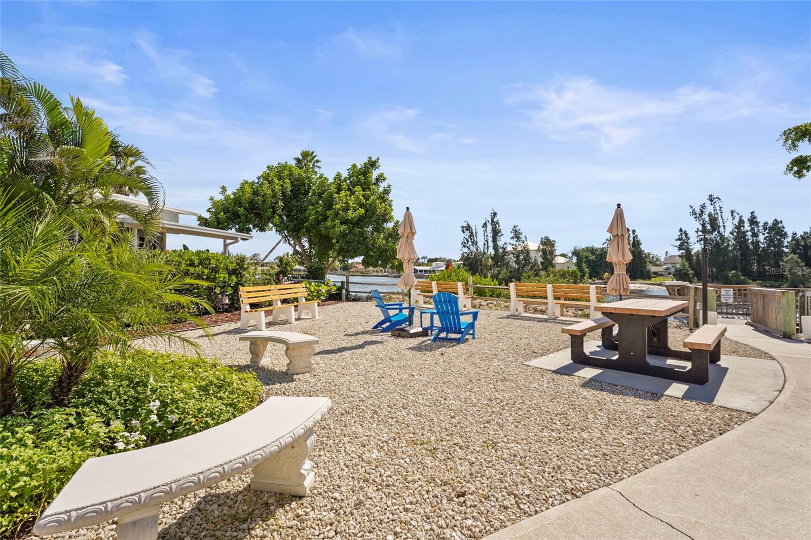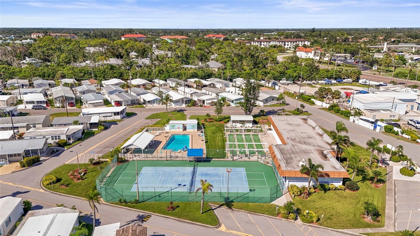Enjoy stunning panoramic views of Roberts Bay from three hurricane-rated sliding doors. Watch dolphins, manatees, and seabirds from your own backyard! Opportunity to add a boat lift or dock in this sailboat water access and take a 5-minute ride to the Gulf of Mexico -- no bridges!This home features a large deck for dining, entertaining, and relaxing while overlooking the bay. Electric retractable Sunbrella awnings provide shade, and the sunsets are nothing short of spectacular.Inside you'll find 1,400 sq. ft. of open living space, 2 bedrooms, 2 full baths, and brand-new porcelain tile. The kitchen boasts granite countertops, newer appliances, and a great flow into the dining and living room. The guest room doubles as an office with a Murphy bed. The home also includes a full-size laundry room, mirrored walls to reflect water views, and a built-in wet bar.Additional upgrades include newer A/C, track lighting, and a large covered carport with paver driveway, tool/work room, and storage.Located in a vibrant 55+ waterfront community with low HOA fees, resort-style pool, tennis, clubhouse, and daily activities. Move-in ready, meticulously maintained, and perfect for entertaining -- watch fireworks from your deck. Enjoy and easy walk across the Venice Bridge and stroll through Downtown Venice Ave. Pets are welcome!