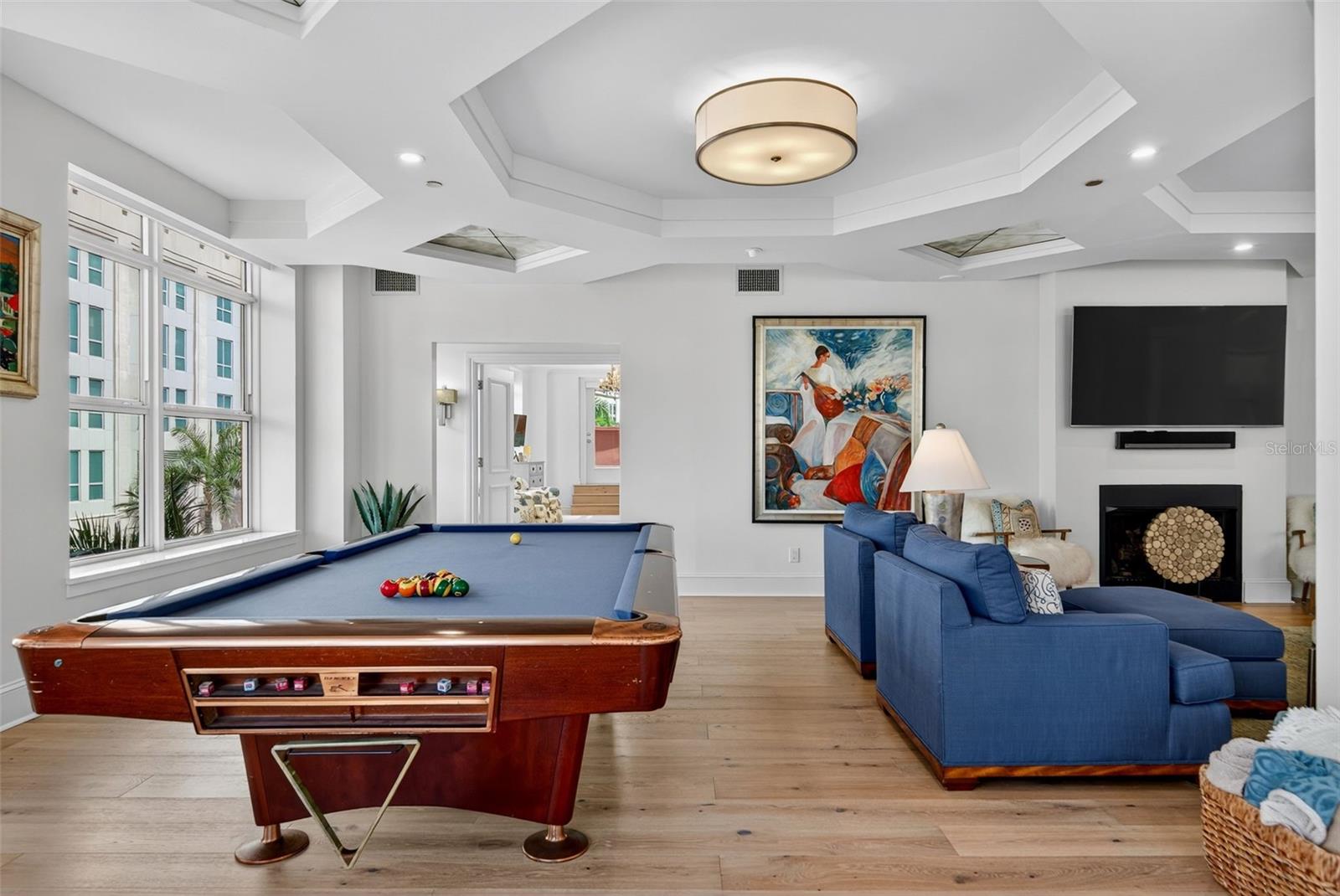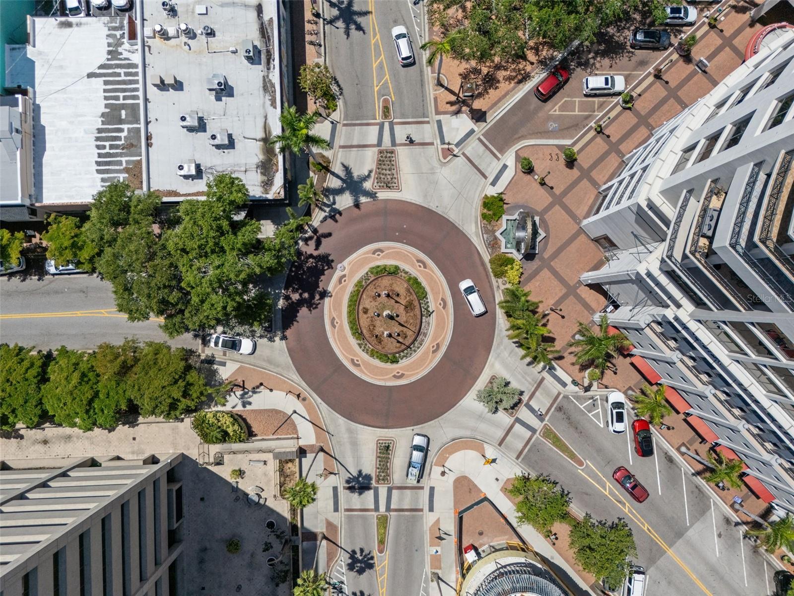 A luxurious piece of Sarasota's history, combining timeless architecture, generous space, and modern upgrades in the heart of downtown. This rarely available full-floor residence at the iconic Orange Blossom Tower built in 1926, one of downtown Sarasota's most prestigious addresses at Main Street and Palm Avenue. Occupying the entire third floor, this 3-bedroom, 3-bath, 3,974-square-foot home offers a vibrant urban lifestyle just steps from fine dining, art galleries, boutiques, Bayfront Park, the marina, and Sarasota's renowned theater district. From your private elevator, a grand foyer opens to a gallery hallway showcasing an antique brick wine cellar with a custom iron door, leading into expansive living and dining spaces adorned with bespoke millwork, a fireplace, octagonal ceiling detail, and oversized 7' windows that flood the interiors with natural light. Two private terraces, including an oversized 13' x 46' retreat, to extend your living space outdoors for al fresco dining, and relaxation.The professionally enhanced kitchen is a chef's dream, featuring quartz countertops, a Wolf 6-burner gas range, two Signature dishwashers, built-in refrigerator, beverage refrigerator, and a crystal chandelier over the center island. Condo features a water treatment system with reverse osmosis. Other recent updates include new AC units with infrared (2022 and 2023), new hot water heater (2024), new engineered wood flooring and carpet, a remodeled bath, new electrical outlets, electronic shades throughout, quartz window sills, and LED surface-mount fixtures and dimmers, The spacious owner's suite offers large windows, 17'7" x 18' antique-brick terrace overlooking tree-lined Palm Avenue, and an elegantly updated bath with dual vanities, walk-in shower, soaking tub, and custom closet system. Two guest suites are tucked into a private wing, each with a full bath and new custom closets--one opens directly to the expansive terrace--while a versatile large den makes an ideal office, reading room, or potential fourth bedroom with views of Sarasota Bay and stunning sunsets.Residents of Orange Blossom Tower enjoy concierge service, secure lobby entry, two deeded garage spaces, and use of the pool, spa, and fitness center at neighboring 1350 Main, along with additional storage room on the terrace and second floor. Importantly, the building's Structural Integrity Reserve Study (SIRS) and Financial Reserve Study (FRS) were both completed in 2024, ensuring full compliance with current Florida regulations and giving buyers added peace of mind.
