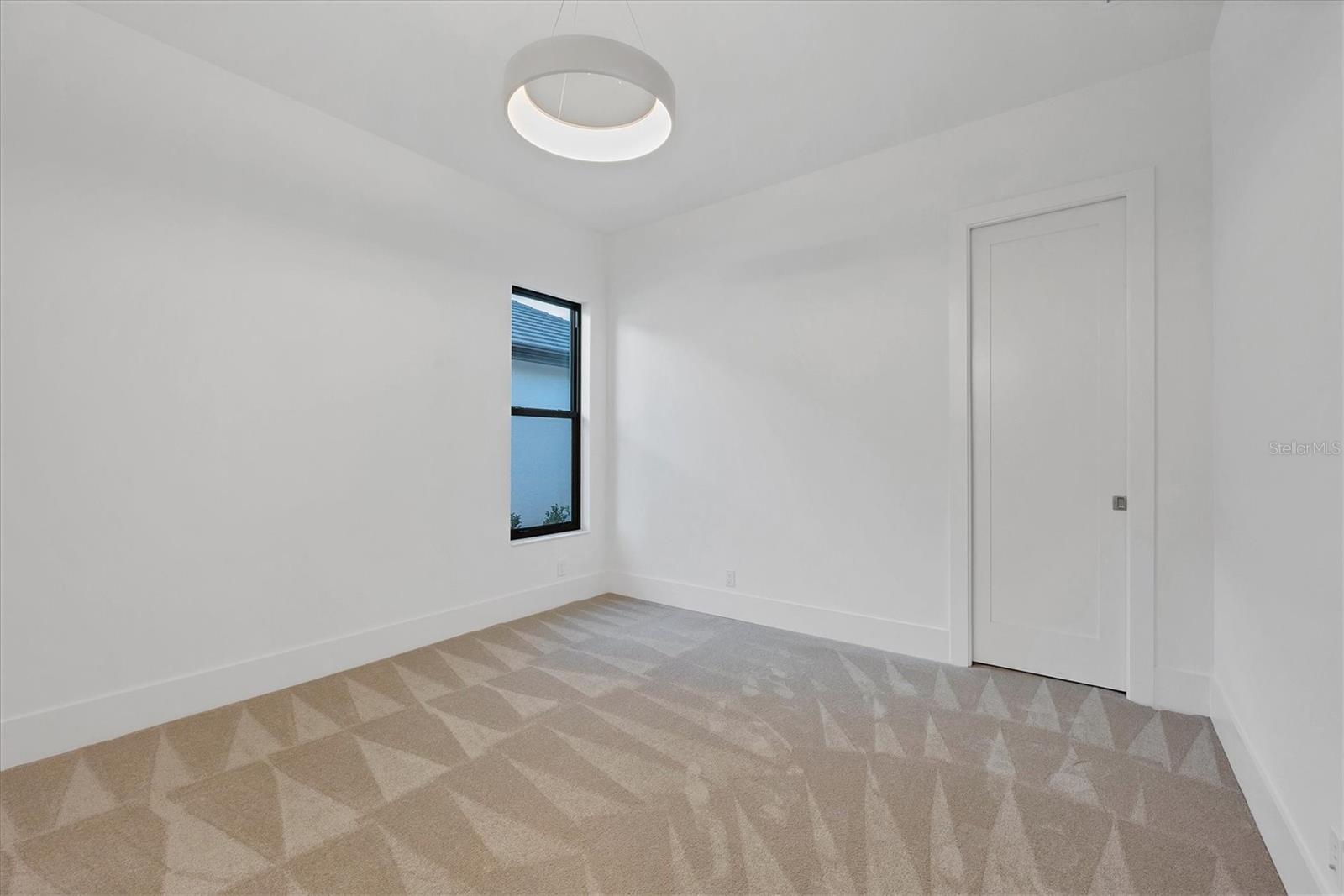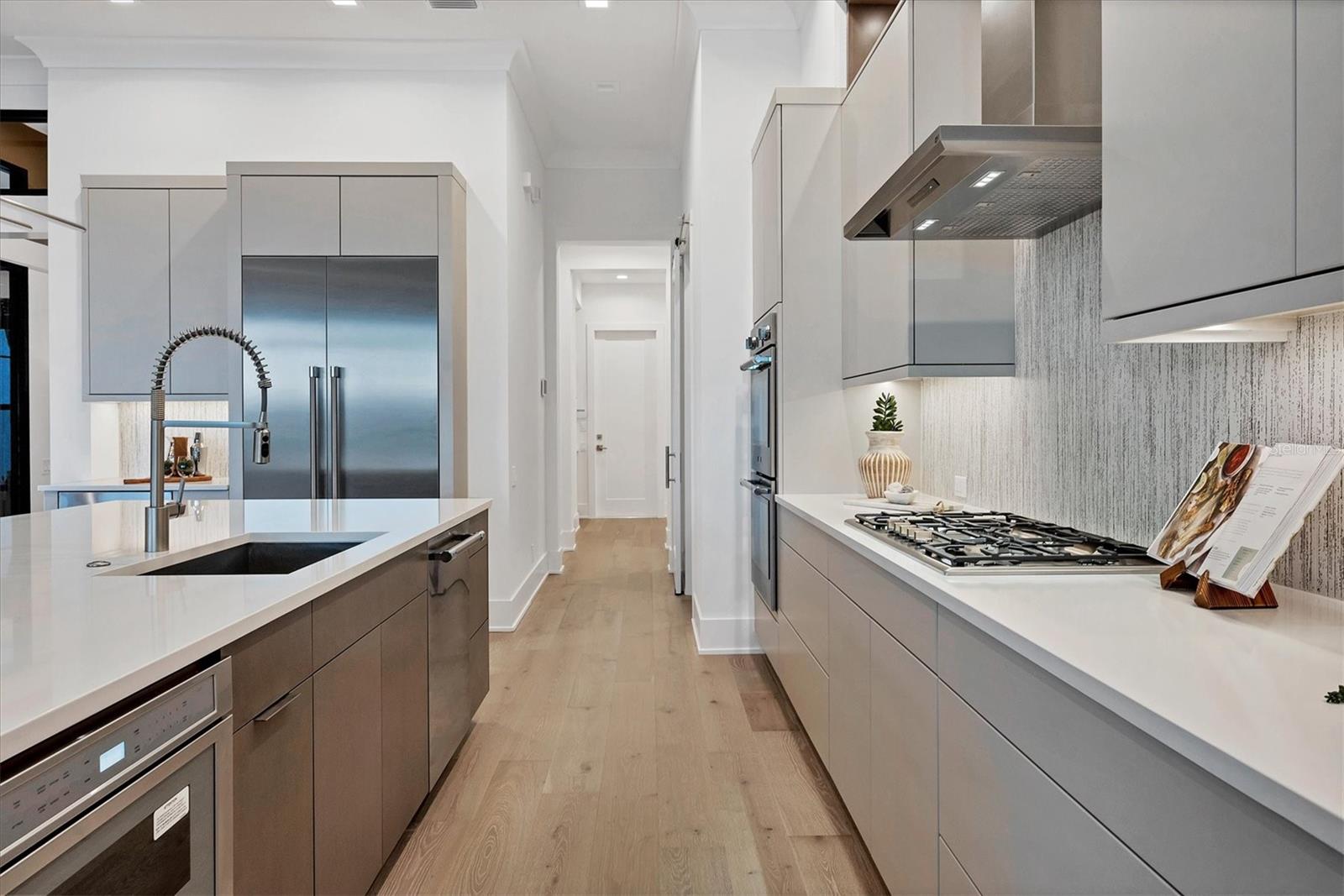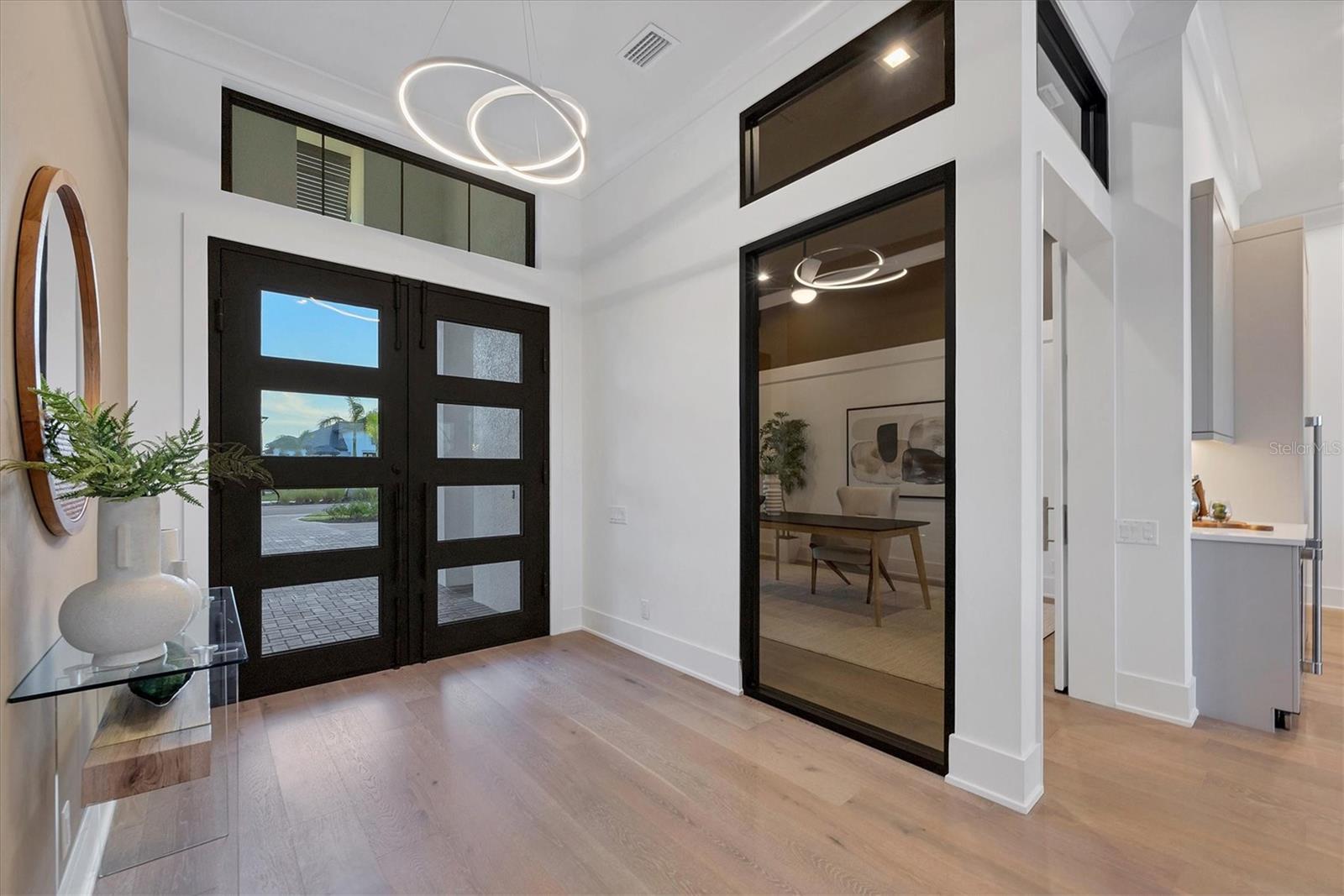 Welcome to this stunning, newly constructed 3,219-square-foot Rutenberg Talise model home, offering breathtaking water views in the Wild Blue at Waterside community. This luxurious residence features three spacious bedrooms, three and a half beautifully appointed baths, a den and a versatile bonus room. At the heart of the home is a breathtaking chef's kitchen, complete with Thermador appliances, sleek quartz countertops and beautiful wood cabinets. This space opens seamlessly to the great room and dining areas, creating an ideal setting for entertaining and everyday living in the home's open layout. Architectural details, including crown molding and tray ceilings, combined with beautiful wood floors enhance the warmth and elegance throughout the home. The professionally designed office boasts beautiful wood floors and is enclosed by elegant glass-insert sliding doors, offering both privacy and style. Whether you work from home or need a quiet space to focus, this office combines functionality with sophisticated design. The oversized bonus room is a flexible space that can be used as a second entertainment room, game room or additional living area. With 11-foot ceilings and plenty of natural light, it offers a spacious, airy feel. The bonus room is conveniently near a powder room, which also doubles as a pool bath, providing easy access from the outdoor living area. For the ultimate indoor-outdoor living experience, corner sliders open to the lanai, inviting you to step outside and enjoy Florida's year-round sunshine in your private outdoor oasis. The backyard features a pool, relaxing spa and a spacious lanai including an outdoor kitchen with a grill, making this outdoor area a perfect place for relaxing or hosting guests. The luxurious owner's suite offers a peaceful retreat with dual walk-in closets and a spa-like bath, complete with a soaking tub, walk-in shower and dual vanities. Two additional guest bedrooms, each with their own en-suite baths, provide comfort and privacy for family and visitors. A three-car garage offers ample storage and convenience. In the prestigious Lakewood Ranch area, Waterside is the pinnacle of luxury lakefront living. This planned community surrounds you with natural beauty, featuring sparkling lakes, lush landscapes and thoughtfully designed neighborhoods. With landscaping maintenance included, you'll have more time to enjoy the resort-style amenities, including parks, walking trails, a village spa, tennis and pickleball courts, dog parks, playgrounds, golf and clubhouses. The vibrant town center offers boutique shopping, dining and entertainment just minutes away. Don't miss the opportunity to make this extraordinary home yours and experience the best of luxury living at Wild Blue at Waterside.