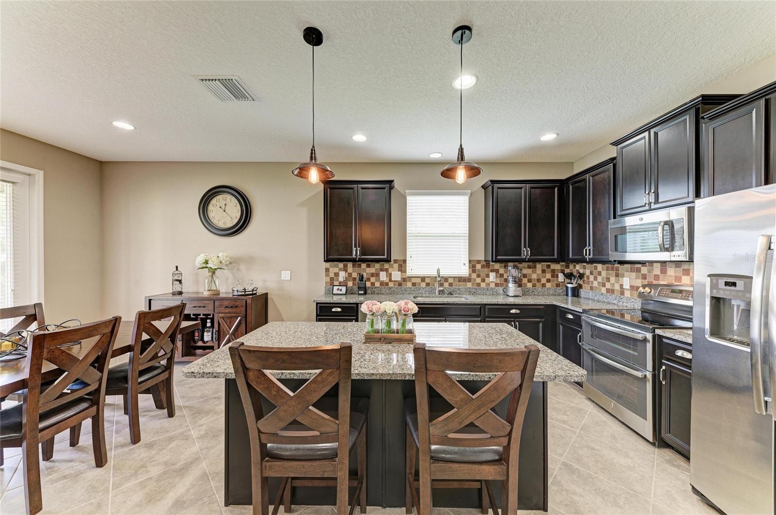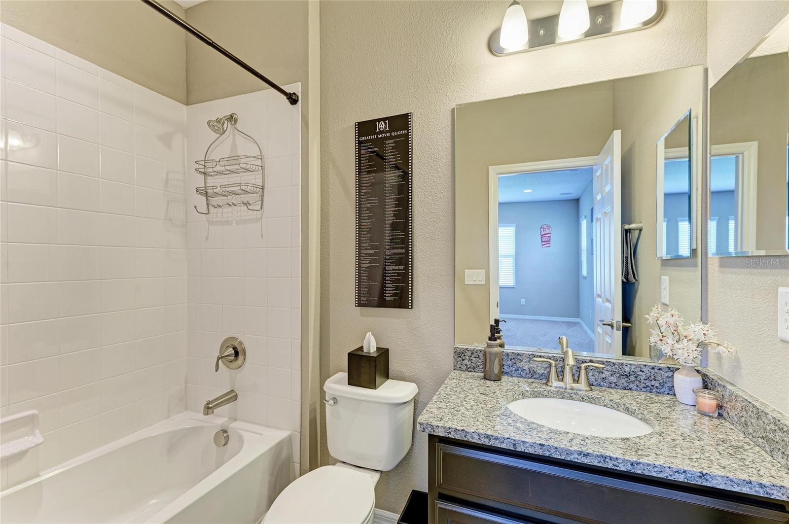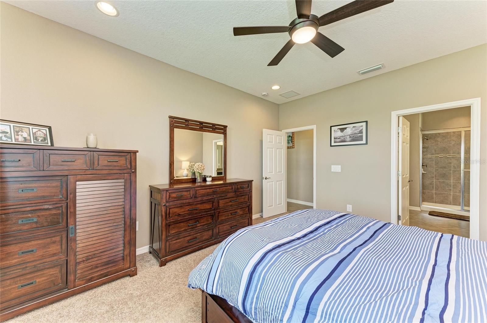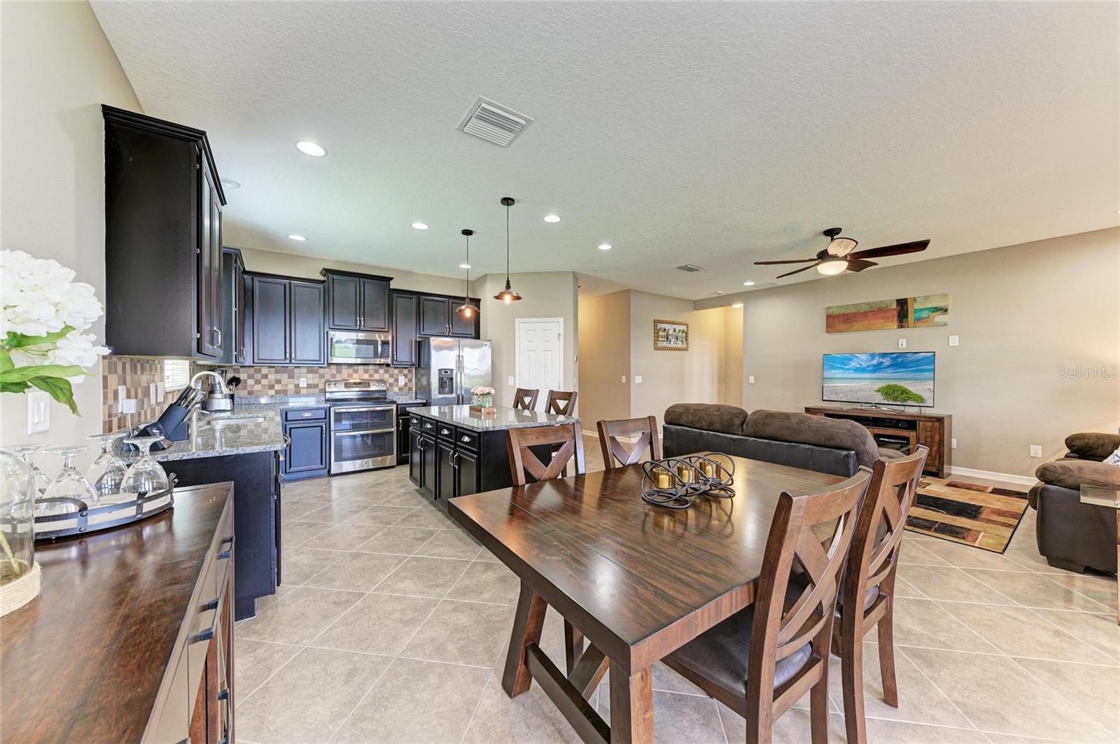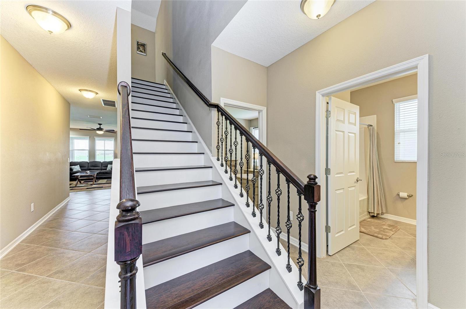 Welcome to this beautifully maintained 4-bedroom, 3-bathroom home with a 2-car garage and nearly 2,400 sq ft of living space, located in the highly desirable gated community of Copperstone. From the moment you arrive, you'll notice the professional landscape curbing, a decorative stained driveway, and a stunning glass front door. Inside, the home features a split floor plan with the master suite privately tucked away and offering peaceful water views, a spacious walk-in closet, and a spa-like bath with dual sinks, granite countertops, and a tiled walk-in shower. On the opposite end of the home, you'll find three additional bedrooms along with a full bathroom featuring dual sinks, granite counters, and a tiled shower/tub combo. The main living areas are finished with tile flooring throughout for easy care and style. The gourmet kitchen overlooks the family room, making it perfect for entertaining. The kitchen is equipped with granite countertops, pendant lighting, a tiled backsplash, stainless steel appliances, and tall espresso cabinets with crown molding. Just off the kitchen, enjoy easy access to the screened lanai, where you can relax and take in sunrises over the water. The oversized backyard has plenty of room for a pool and can be fenced for additional privacy. Upstairs, a large bonus area with a full bathroom offers endless possibilities--ideal for a home theater, playroom, or guest suite. Additional features include gutters, hurricane shutters, and an irrigation system. The home is ideally situated on a quiet dead-end street with minimal traffic for added peace of mind. Copperstone residents enjoy a wealth of community amenities including two resort-style pools, a playground, sport courts, a clubhouse, and secure gated access. Families will love being within walking distance to a new elementary school and high school. Perfectly located, Copperstone is just minutes from shopping, dining, Fort Hamer boat launch, and two new county parks. With quick access to I-75, you'll be at the beaches, Tampa, St. Pete, Sarasota, or two major airports within 45 minutes or less. This home offers the perfect balance of space, style, and community living. Don't miss your chance to call Copperstone home!