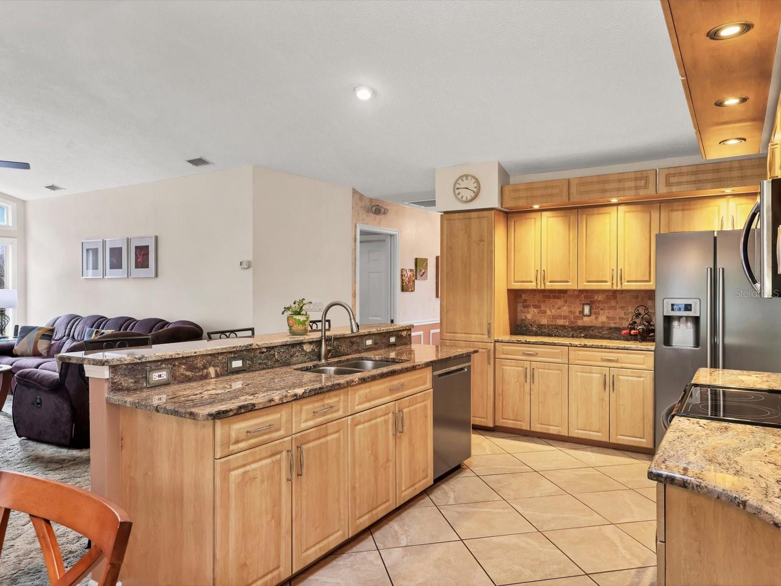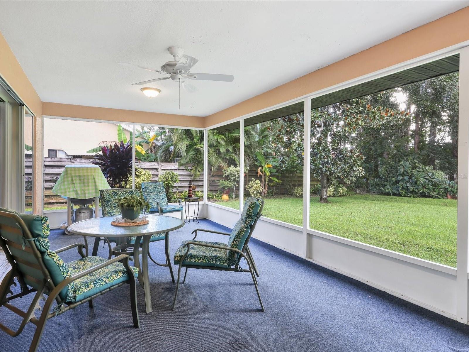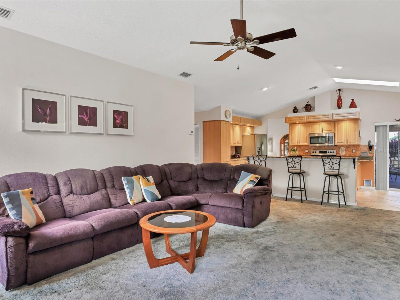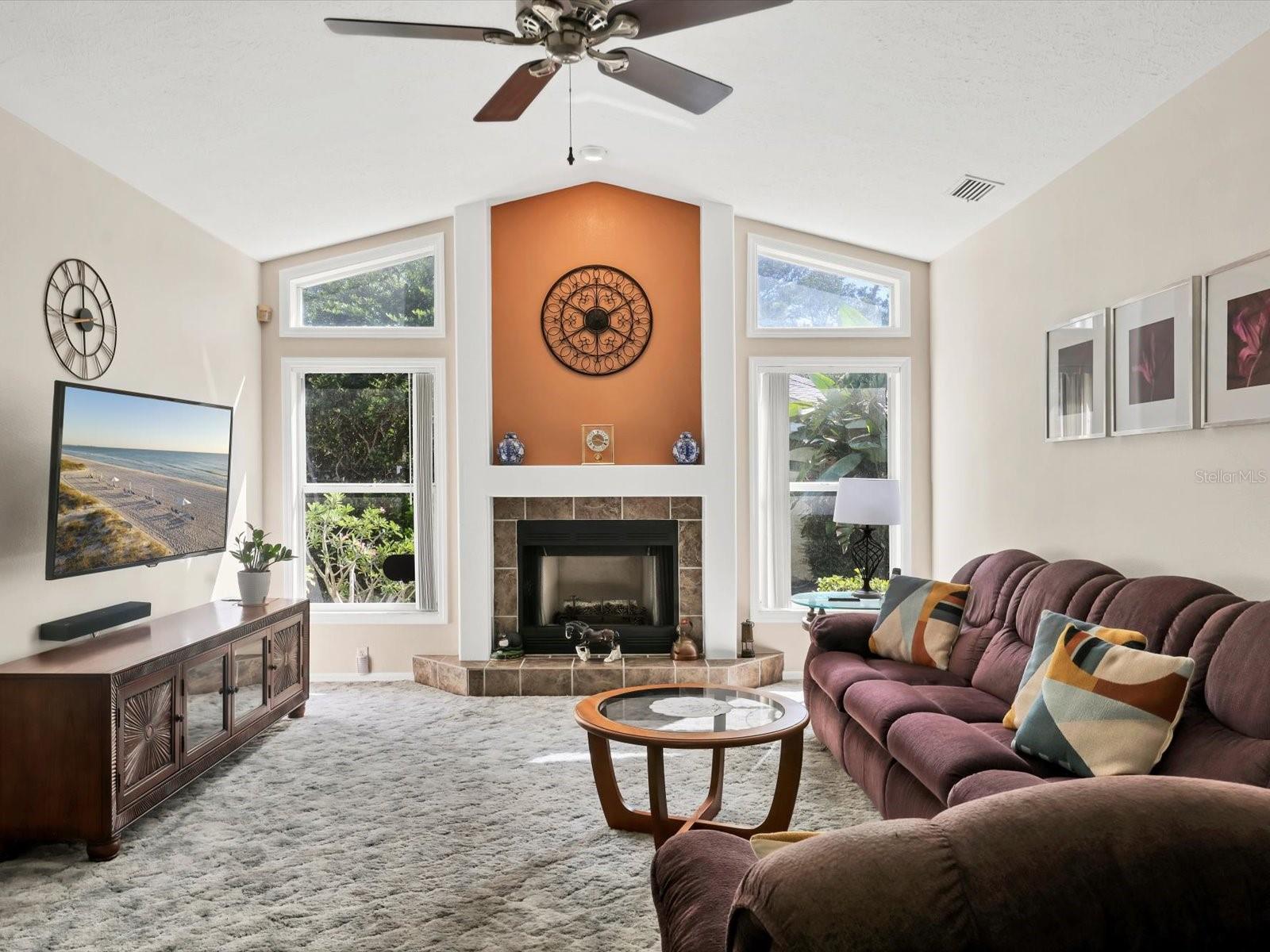 A LOVELY HOME IN A POPULAR & QUIET NEIGHBORHOOD...SO MUCH HOUSE FOR THE PRICE! This inviting home offers a thoughtful layout with comfortable spaces for everyday living. Upon entry, you are welcomed by the expansive living and dining room combo, highlighted by a large picture window that frames the landscaped outdoors. The dining area opens directly to the lanai, creating a natural extension for gatherings and entertaining. The updated kitchen features granite countertops, overhead lighting, and a skylight that fills the room with natural light. It seamlessly connects to the spacious great room, where a wood-burning fireplace and garden views set the scene for cozy family time. Designed with privacy in mind, the split floor plan includes three bedrooms and two bathrooms. Each bedroom has a walk-in closet, while the guest bath conveniently opens to the lanai. The primary suite also has lanai access and features a large walk-in closet, double sinks, and a garden tub. Every room in the home overlooks the peaceful, landscaped yard. The lanai offers serene views of the private backyard and water, with plenty of space to add a pool. An attached shed provides extra storage. With the roof replaced in 2014 and HVAC in 2019, this home is ready for easy updates to compliment your personal taste to make it your own. Conveniently located near beaches, shopping, and entertainment. See why this community has become so popular and why this is the one!