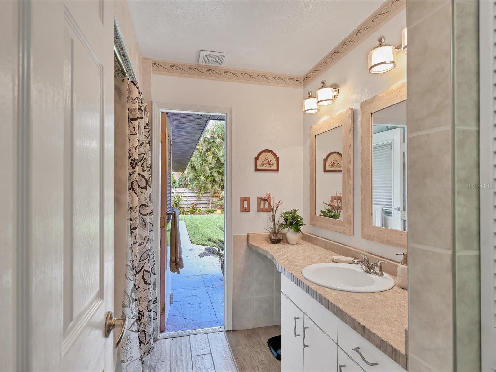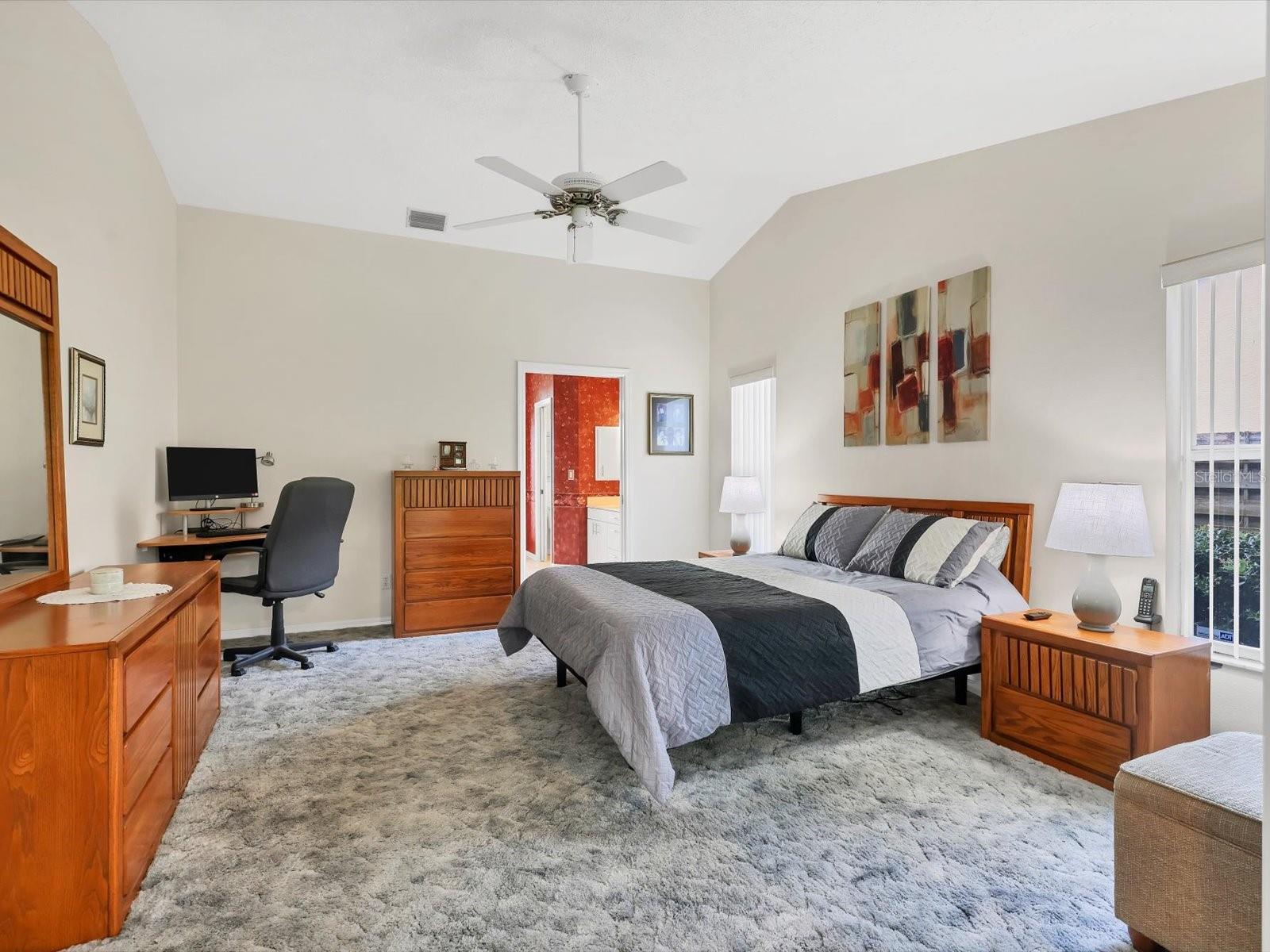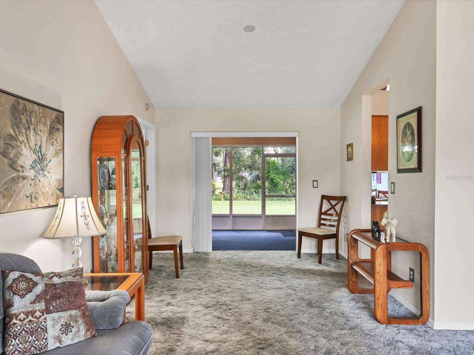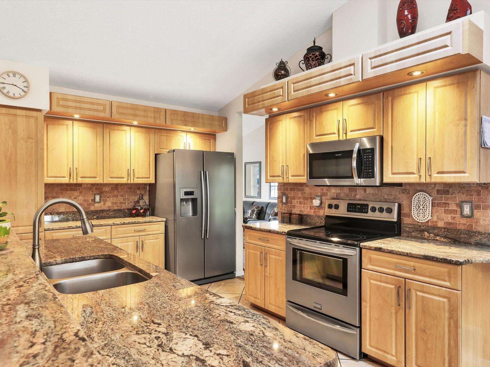 A LOVELY HOME IN A POPULAR & QUIET NEIGHBORHOOD...SO MUCH HOUSE FOR THE PRICE! This inviting home offers a thoughtful layout with comfortable spaces for everyday living. Upon entry, you are welcomed by the expansive living and dining room combo, highlighted by a large picture window that frames the landscaped outdoors. The dining area opens directly to the lanai, creating a natural extension for gatherings and entertaining. The updated kitchen features granite countertops, overhead lighting, and a skylight that fills the room with natural light. It seamlessly connects to the spacious great room, where a wood-burning fireplace and garden views set the scene for cozy family time. Designed with privacy in mind, the split floor plan includes three bedrooms and two bathrooms. Each bedroom has a walk-in closet, while the guest bath conveniently opens to the lanai. The primary suite also has lanai access and features a large walk-in closet, double sinks, and a garden tub. Every room in the home overlooks the peaceful, landscaped yard. The lanai offers serene views of the private backyard and water, with plenty of space to add a pool. An attached shed provides extra storage. With the roof replaced in 2014 and HVAC in 2019, this home is ready for easy updates to compliment your personal taste to make it your own. Conveniently located near beaches, shopping, and entertainment. See why this community has become so popular and why this is the one!