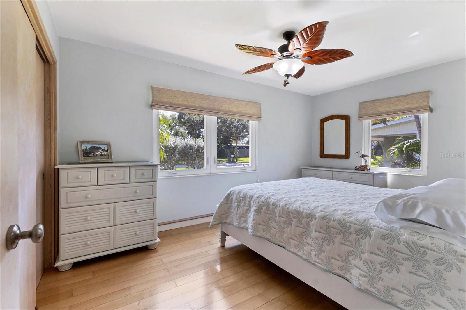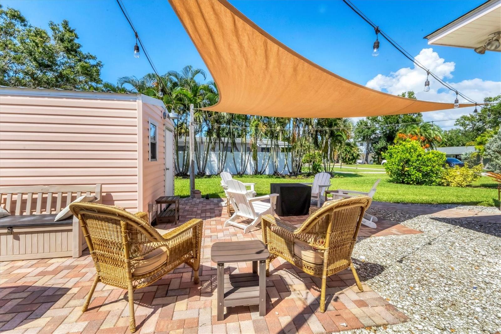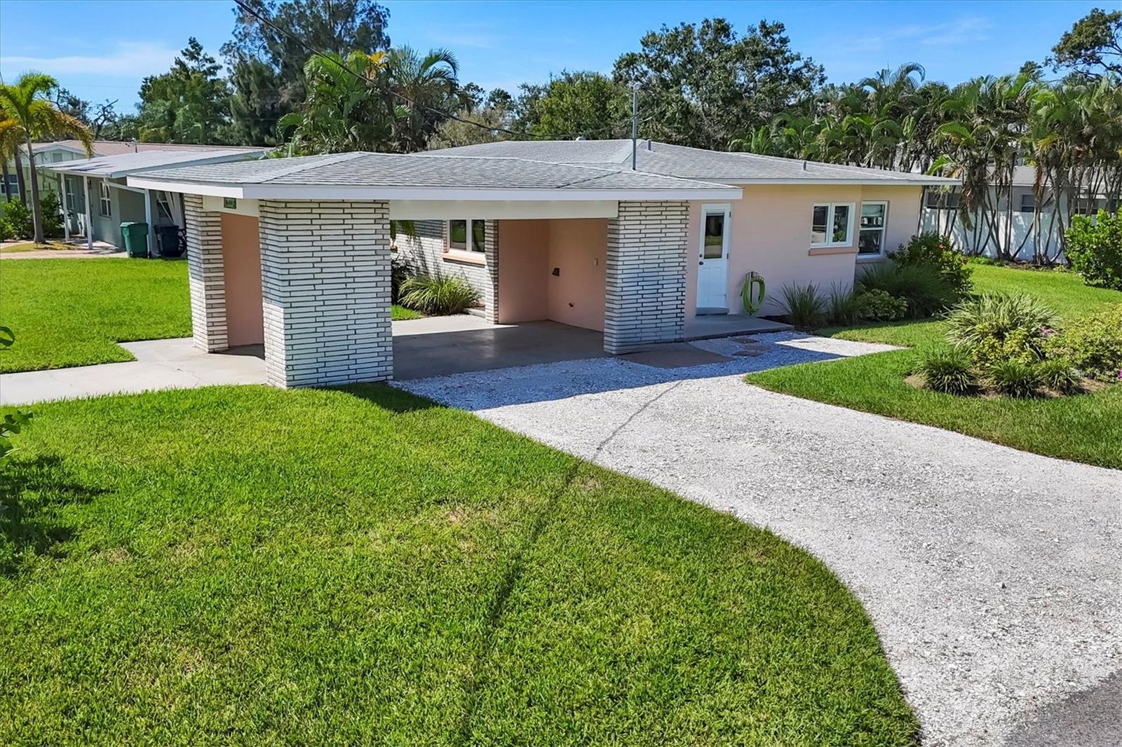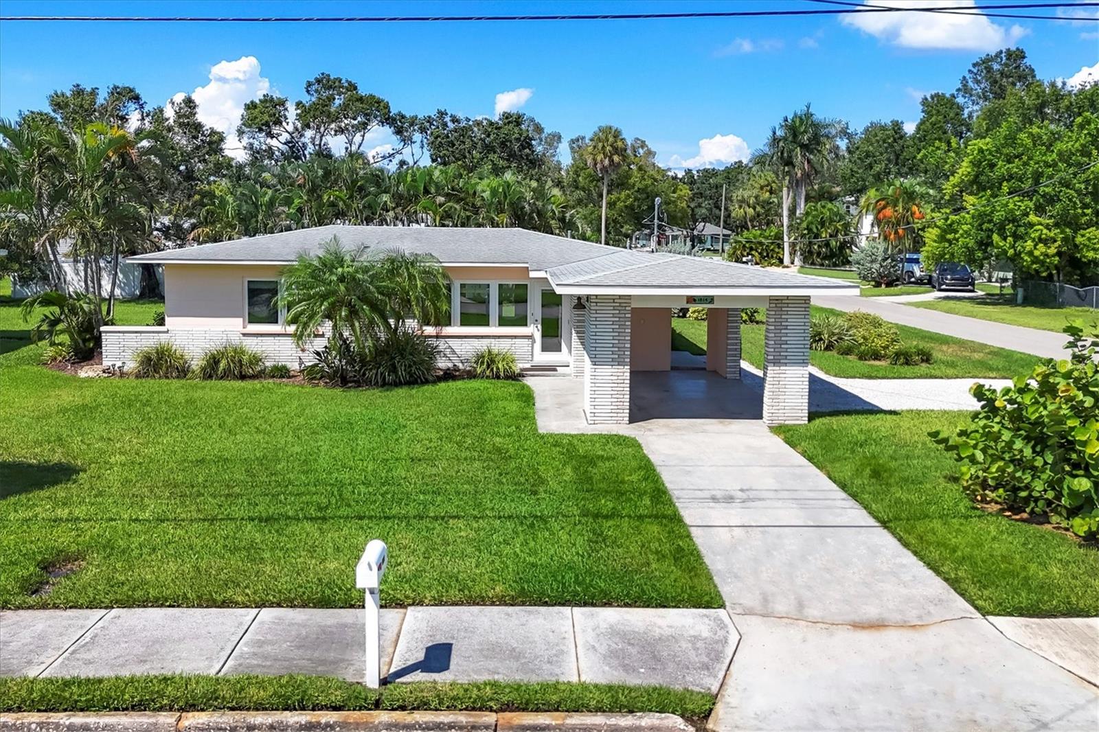 Charming, well-maintained and move-in ready. This two-bedroom, one-bath home is situated on a spacious corner lot in Palmetto's historic district and features two driveways. Designed in a mid-century modern style, it offers iconic boomerang-patterned kitchen counters, custom cypress wood accents, solid core doors and built-in closets. A versatile bonus room provides additional space for a second sitting area, guest room or flex use. The residence was not impacted by recent storms and includes impact-rated windows for added peace of mind. Recent updates include a three-year-old air-conditioning system, a two-year-old water heater and mostly new appliances (range not included). Additional highlights include a separate air conditioned laundry room, carport and a landscaped backyard with a sun-shaded seating area and powered shed for hobbies or storage. Located near downtown Palmetto and Bradenton, waterfront dining, marinas, Emerson Point Preserve and area parks--including one in development with planned pickleball courts. Enjoy easy access to Gulf beaches, Sarasota, St. Petersburg and Tampa. A rare blend of character, functionality and location.