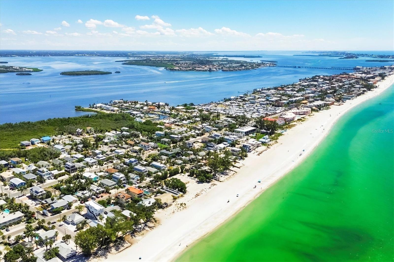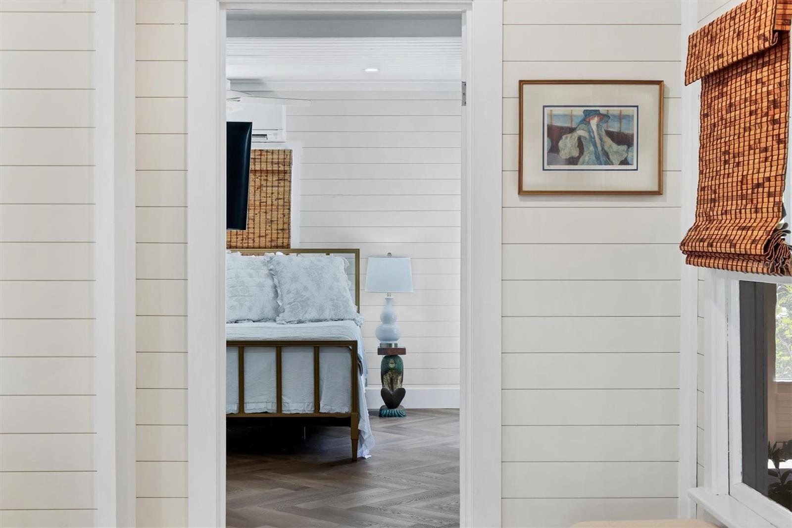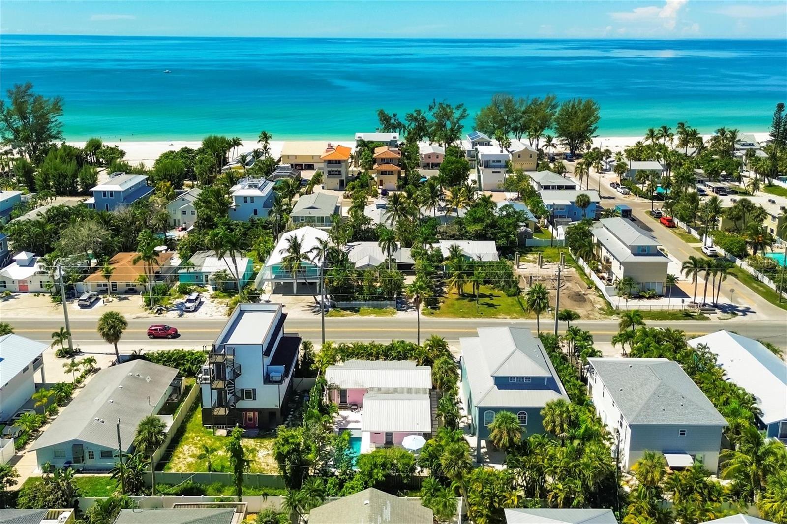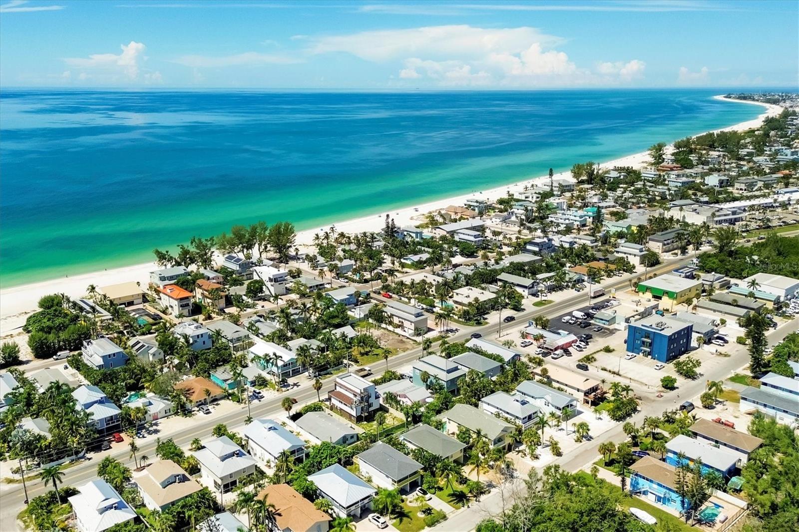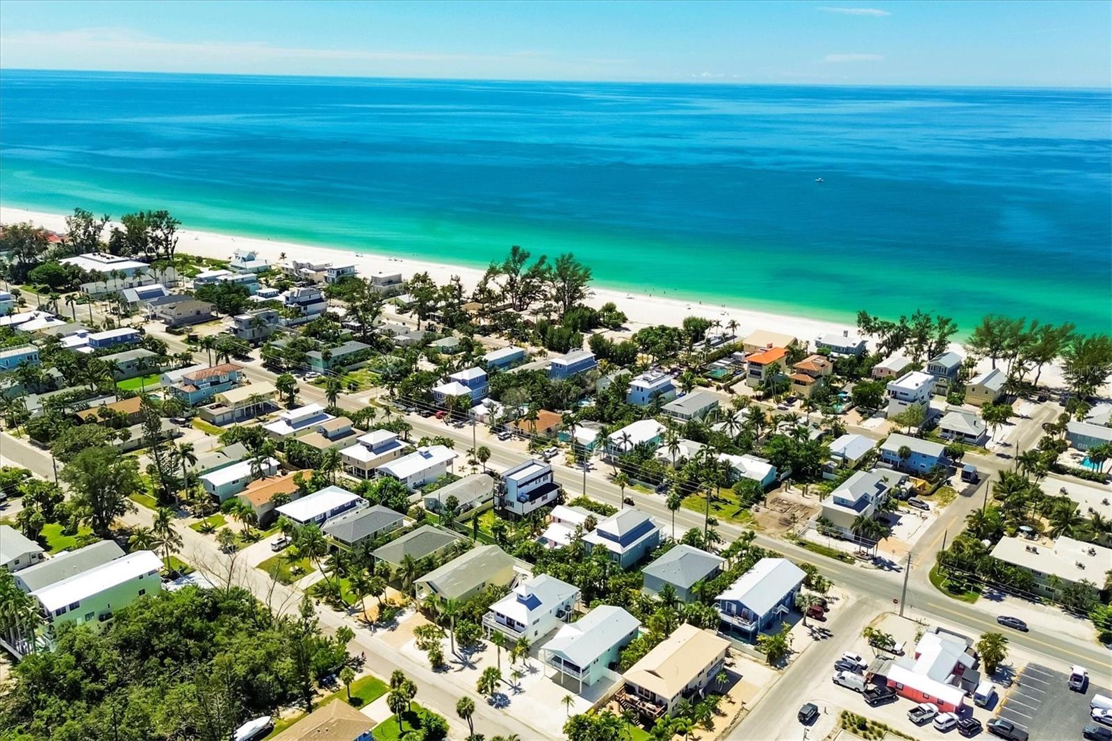 Step onto the spacious screened front porch, now featuring Timber Tech by Azek Porch Collection decking, framed by original Pecky Cypress siding, and enjoy the timeless charm of this lovingly restored 1940s 2 bed / 2 bath craftsman beach cottage just steps from the Gulf. This home blends Old Florida character with today's comfort. Inside, new shiplap walls pair with Daltile's Asher Bend luxury vinyl flooring in a herringbone pattern over a brand-new subfloor. This waterproof, scratch resistant surface combines the warmth of wood with the resilient vinyl, perfect for beachside living. The open kitchen boasts custom floor-to-ceiling cabinetry handcrafted in Pennsylvania, a built-in breakfast nook with matching benches, a Caf Series appliance package in matte white, brushed bronze hardware, and Carrara. Emporio acrylic solid surface countertops for beauty and practicality. Both bathrooms feature spa-inspired tilework, one with a custom glass shower enclosure. The primary suite opens directly to the pool, while the guest bedroom provides its own private layout. A newly designed laundry suite adds everyday convenience with an Electrolux washer and dryer plus a high built-in countertop for organization. Outdoors, enjoy a fenced backyard oasis with an Agnelli-installed, custom-designed saltwater pool completed in 2022, surrounded by palm-lined landscaping for a private retreat. Behind the scenes are new plumbing and light fixtures throughout, spray foam insulation under the floors, new batt insulation in the walls, and carefully sourced finishes, all completed in 2025. With proven rental income managed by the owner and even stronger potential under professional management, the Pink Palm is an iconic island cottage reimagined for today.