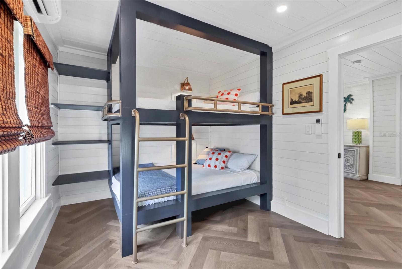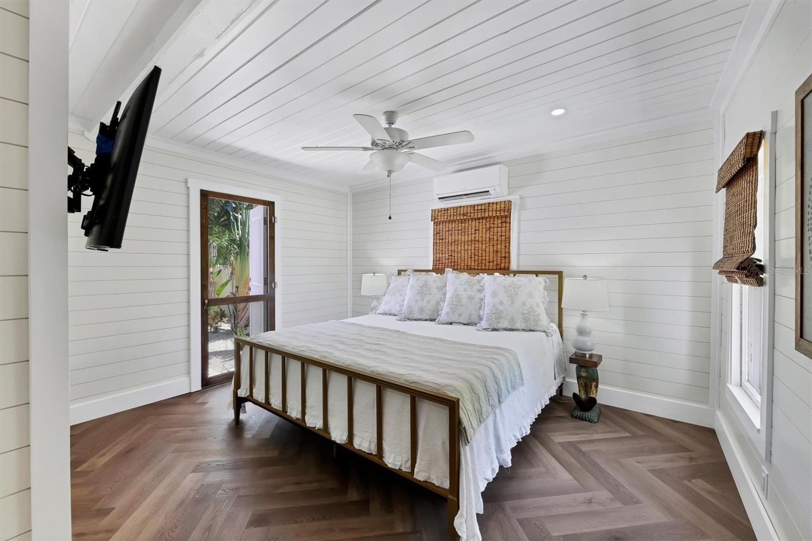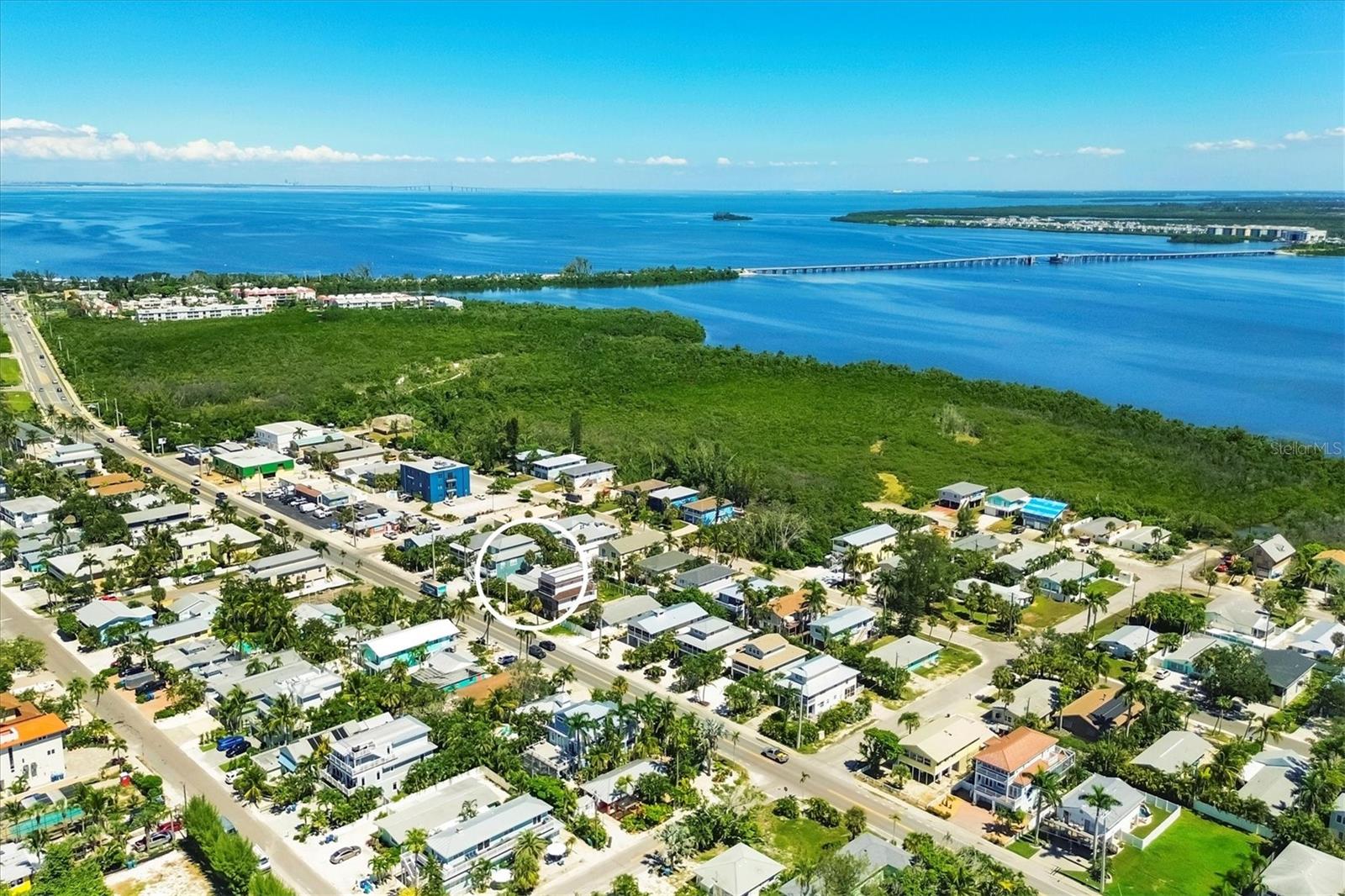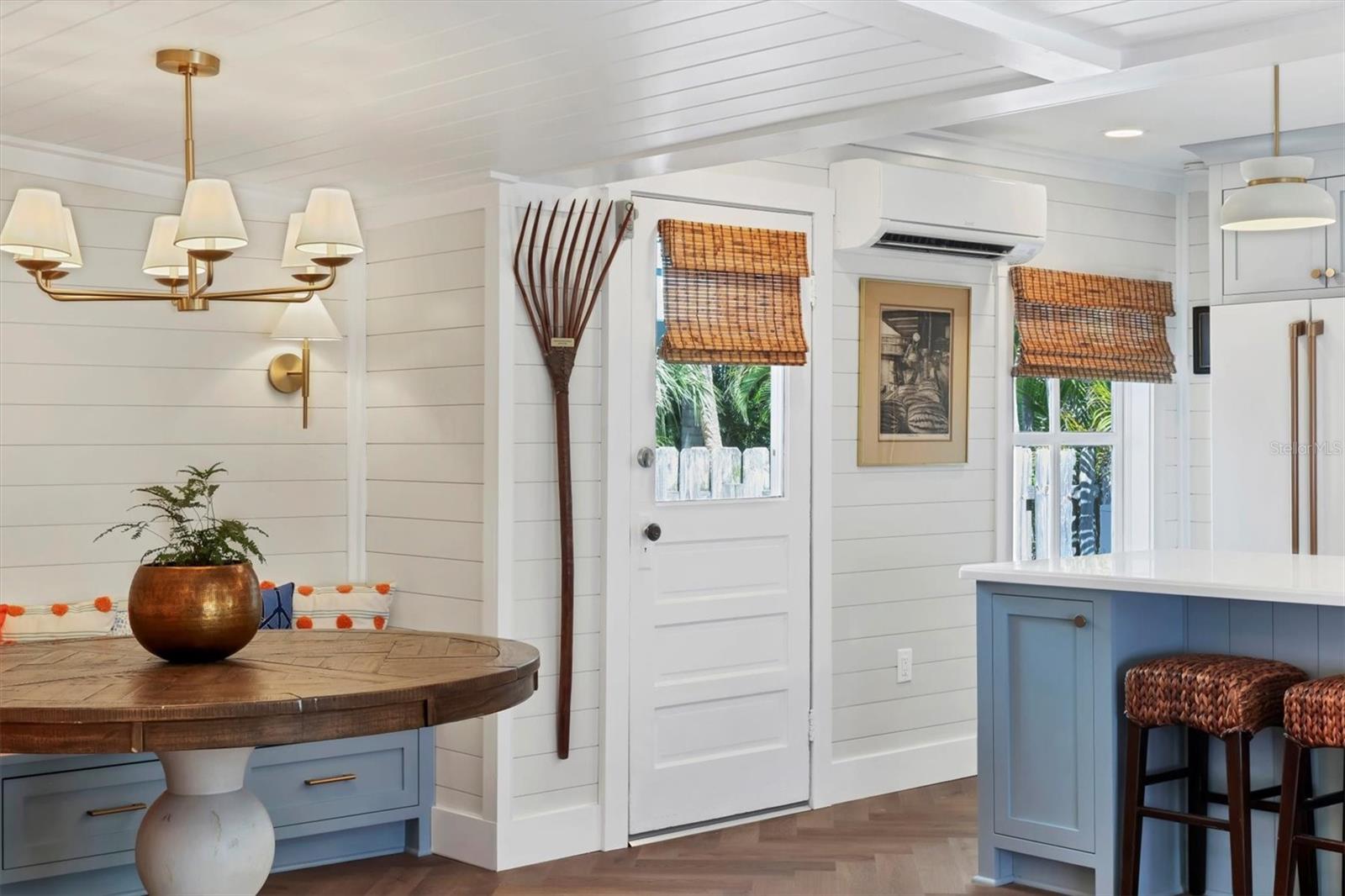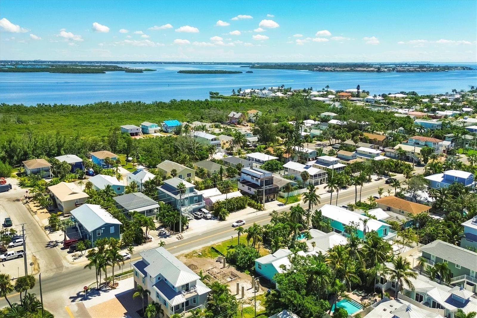 Step onto the spacious screened front porch, now featuring Timber Tech by Azek Porch Collection decking, framed by original Pecky Cypress siding, and enjoy the timeless charm of this lovingly restored 1940s 2 bed / 2 bath craftsman beach cottage just steps from the Gulf. This home blends Old Florida character with today's comfort. Inside, new shiplap walls pair with Daltile's Asher Bend luxury vinyl flooring in a herringbone pattern over a brand-new subfloor. This waterproof, scratch resistant surface combines the warmth of wood with the resilient vinyl, perfect for beachside living. The open kitchen boasts custom floor-to-ceiling cabinetry handcrafted in Pennsylvania, a built-in breakfast nook with matching benches, a Caf Series appliance package in matte white, brushed bronze hardware, and Carrara. Emporio acrylic solid surface countertops for beauty and practicality. Both bathrooms feature spa-inspired tilework, one with a custom glass shower enclosure. The primary suite opens directly to the pool, while the guest bedroom provides its own private layout. A newly designed laundry suite adds everyday convenience with an Electrolux washer and dryer plus a high built-in countertop for organization. Outdoors, enjoy a fenced backyard oasis with an Agnelli-installed, custom-designed saltwater pool completed in 2022, surrounded by palm-lined landscaping for a private retreat. Behind the scenes are new plumbing and light fixtures throughout, spray foam insulation under the floors, new batt insulation in the walls, and carefully sourced finishes, all completed in 2025. With proven rental income managed by the owner and even stronger potential under professional management, the Pink Palm is an iconic island cottage reimagined for today.